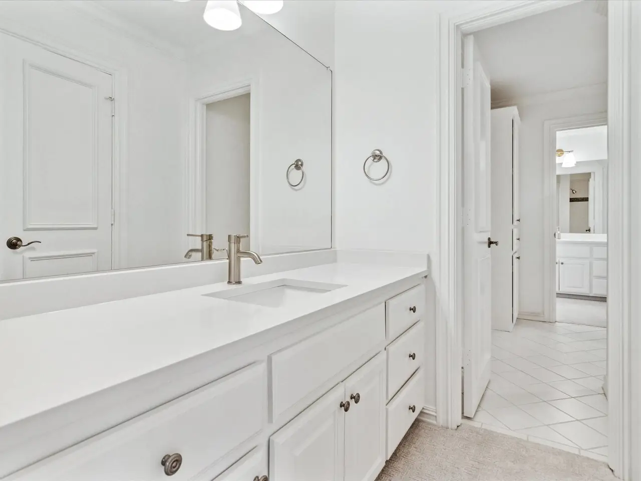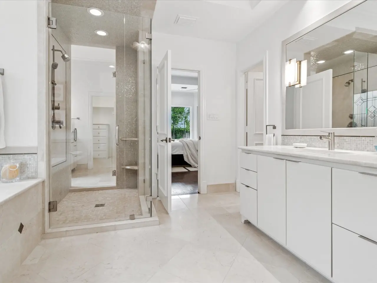 Serene primary suite with Hollywood shower