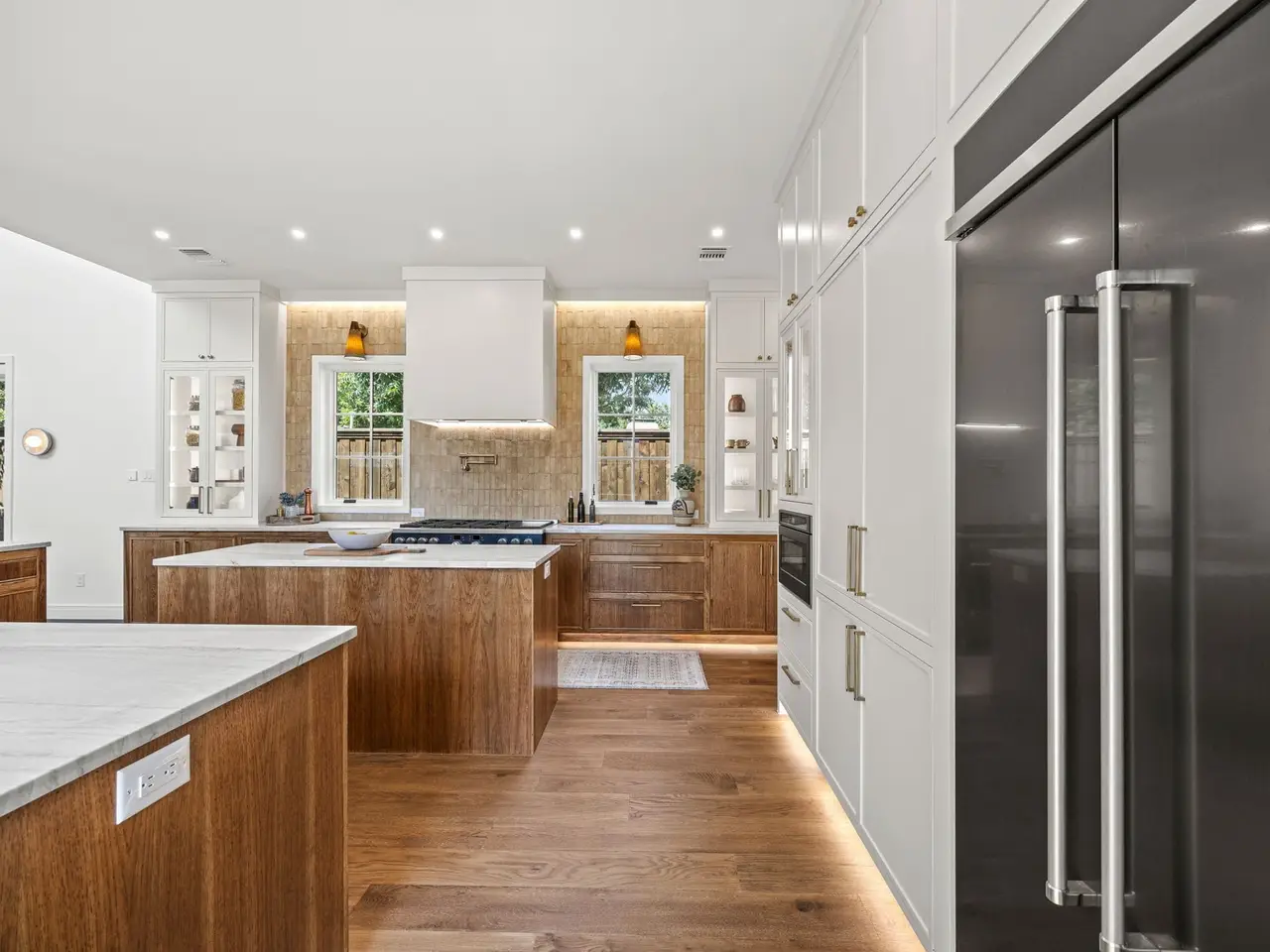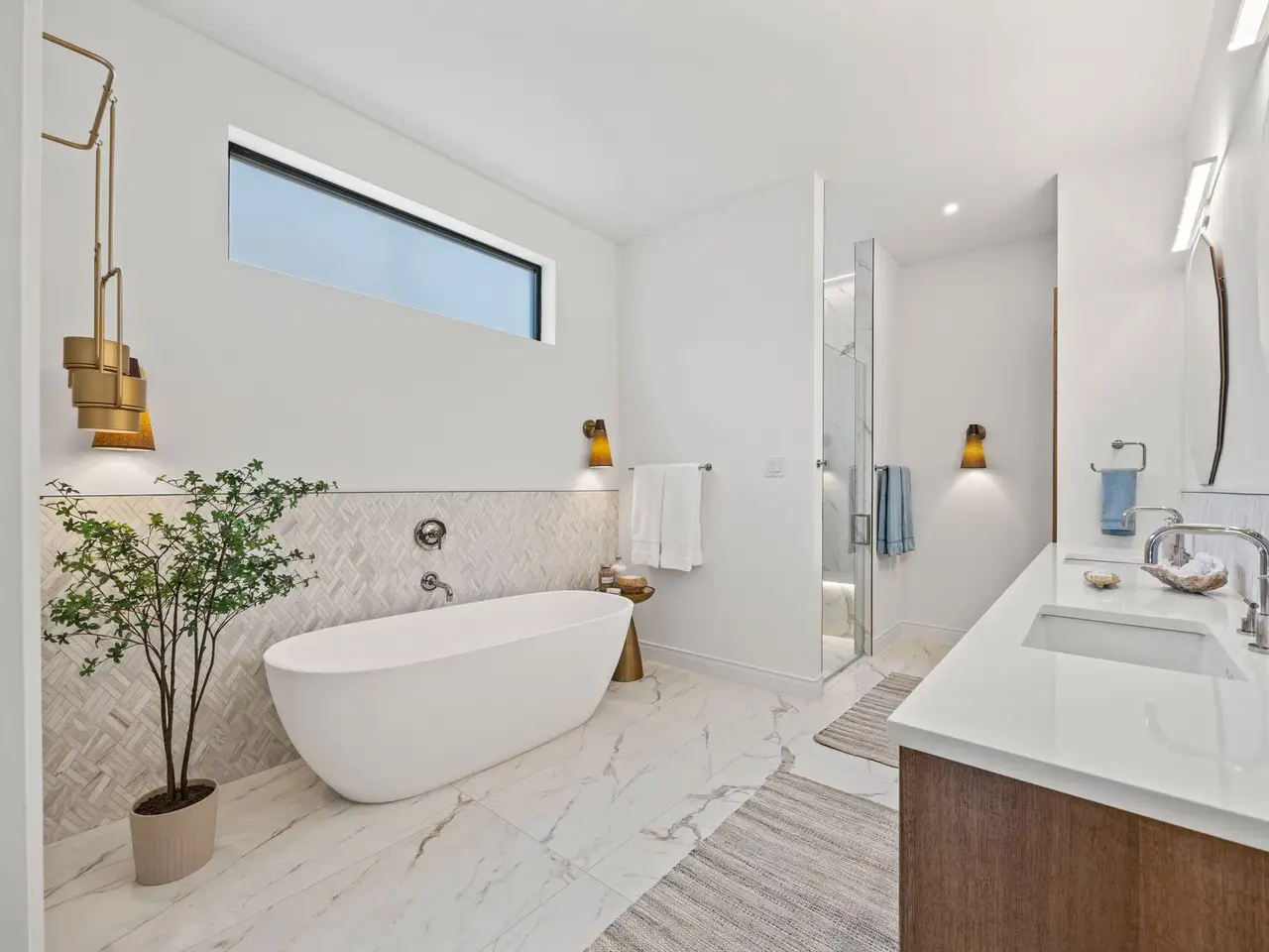 Located within a prestigious Preston Hollow pocket full of architecturally significant and newer homes. This home offers an extraordinary living experience where the floor plan offers a seamless flow from room to room with beautiful spaces to entertain. An outdoor experience awaits with a large pool + spa, expansive living + dining areas with patio screens, outdoor kitchen + outdoor shower + outdoor bath for all seasons enjoyment. The interior showcases warm, organic and earthy materials such as limestone, amber hues, handmade tiles, veined stone, plasters, and cast stone. Smooth walls, clean lines and an open layout enhance the sophistication of the design. Thoughtful lighting adds ambiance and draws attention to expansive art walls ideal for displaying a collection. A Remarkable kitchen features Mykonos stone, imported handmade tile, grass cloth accents, sophisticated cabinet design, bold yet subtle appliances, toe kick and cabinet lighting, prep island with fridge drawers, eat in main island and the kitchen has a working pantry + butler featuring a sonic ice maker, bar ice maker, glass front fridge, wine and bar accessory built ins and unique storage including a special water bottle drawer. The primary suite is located on the 1st floor with striking pool views + a spa experience bathroom + WI closet with cabinet built ins. Split away from the primary is 1 add'l downstairs bedroom and bath. Upstairs has 2 large bedrooms located on 1 wing each with en-suite baths + large closets with tremendous storage. 1 add'l guest bedroom and bath are on the other wing. Living areas downstairs and up offer flexibility for individual needs. Other features include a spacious laundry, fully turfed backyard, epoxy garage floor and 3 spaces, lush landscaping, app controls, video cameras and window shades. Expansive glass walls allows for soothing visuals of beautiful landscaping and a calming pool as your own personal resort. This premier location offers easy access to the area.