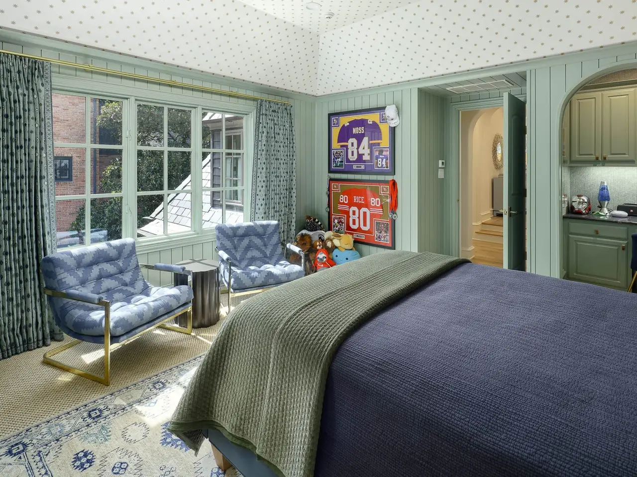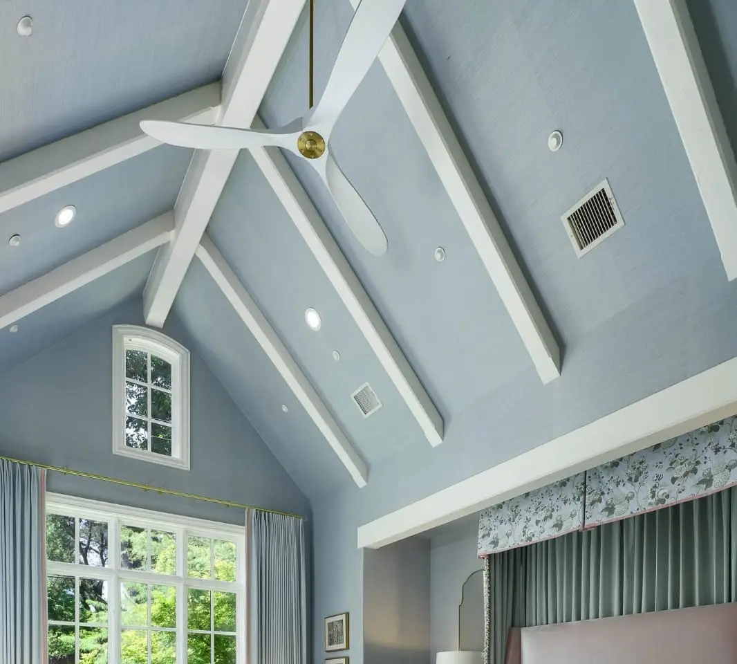 Vaulted primary suite with serene backyard views