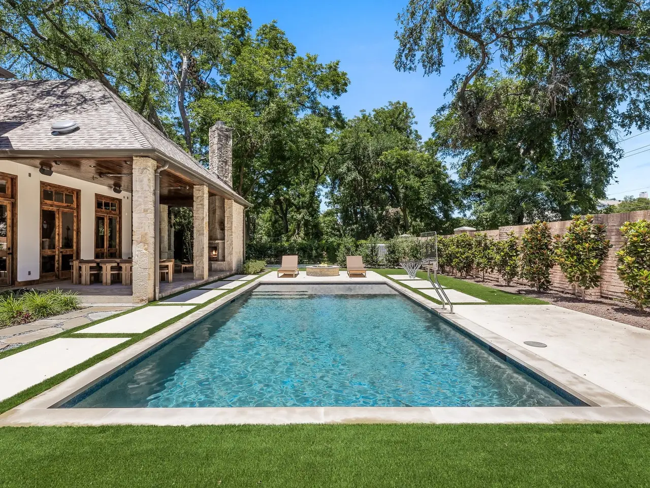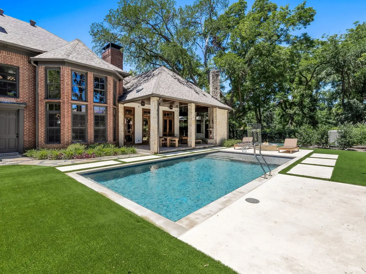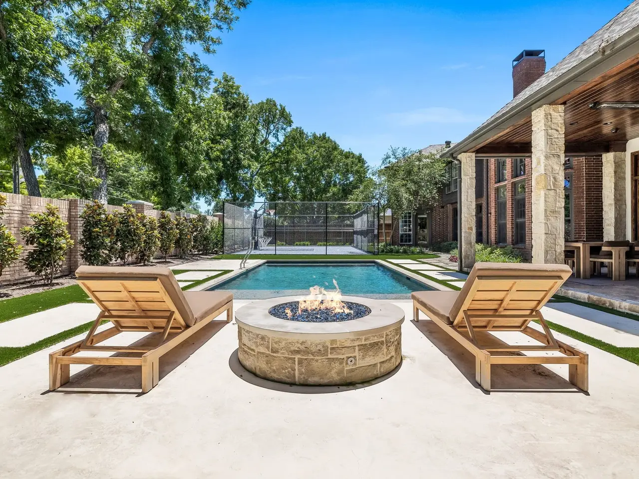 This home has been updated from head to toe. New hardwood floors throughout, paint, countertops, designer light fixtures. A brand new kitchen including Taj Mahal quartzite, custom copper hood, new appliances, and new cabinets. Primary bath completely updated into spa like bath including steam shower and infrared sauna. 1 study or lounge downstairs and second study or library upstairs. Even with all the amazing updates inside, the backyard is the show stopper! New pool, firepit, fireplace, spool, outdoor grill, in-ground trampoline, AND sport court. There is no other property like this!