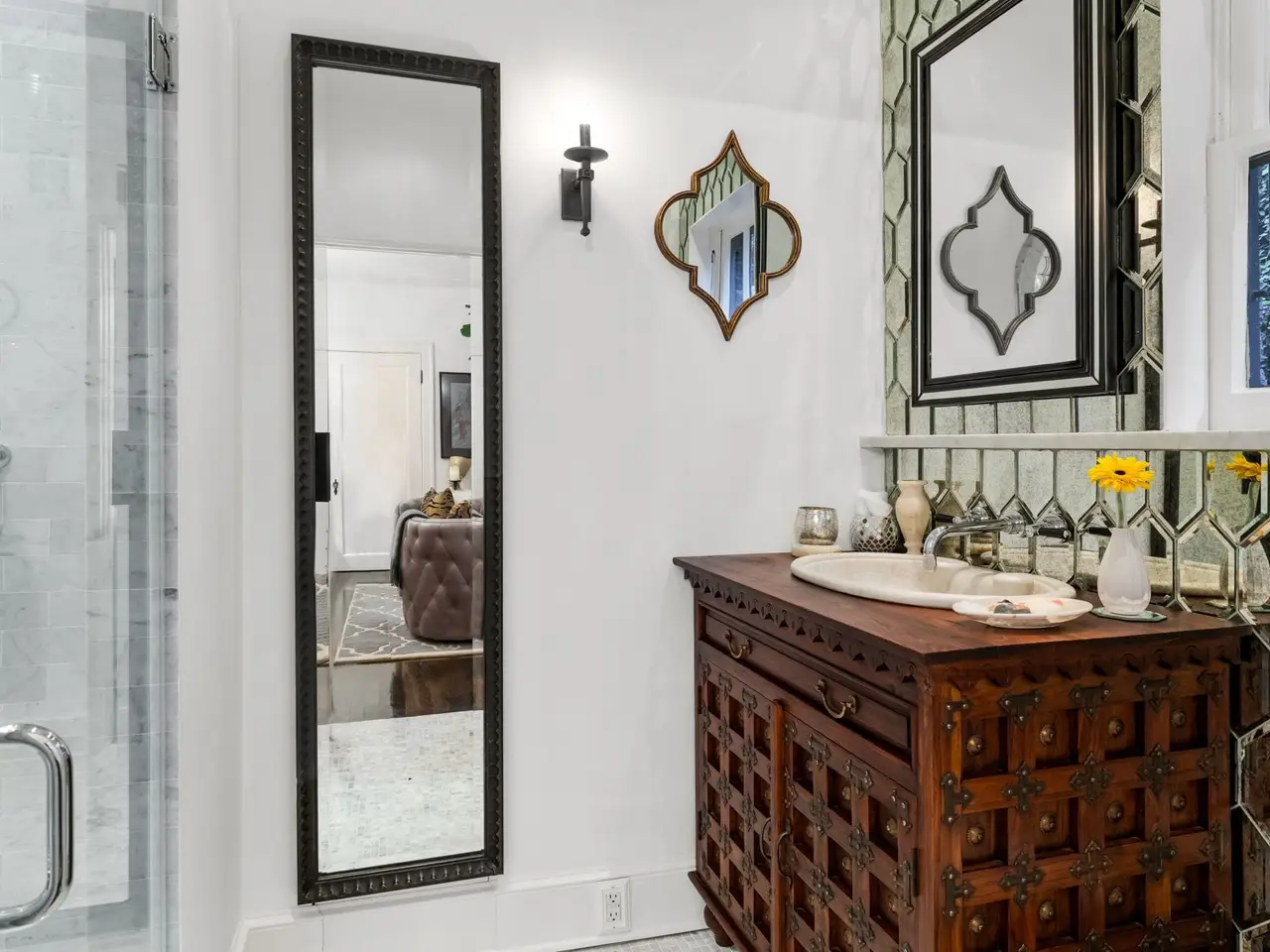 Oversized shower with steam unit