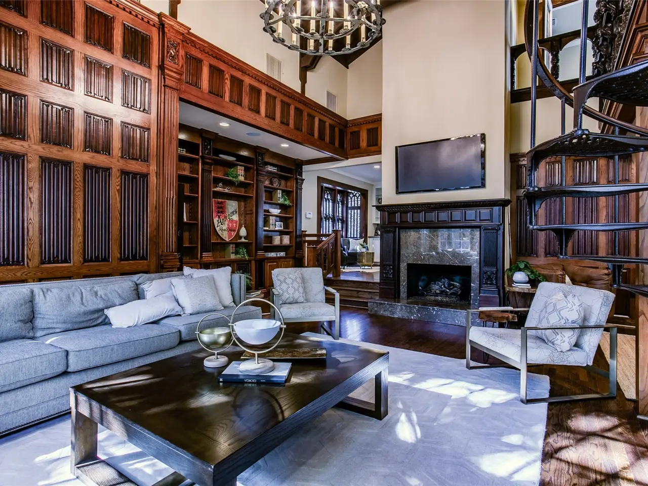 Built in 1930 and thoughtfully renovated in 2014, this rare property blends timeless craftsmanship with updated systems and finishes throughout. Offering approximately 4,200 sq. ft. of total living space, the home includes a 3,361 sq. ft. main residence and an 960 sq. ft. detached guest house.Once home to Rose Drivers Antiques from the 1940s to 1985, the residence retains touches of its rich past. The original store sign remains proudly displayed in the Great Room, which features 19th-century hand-carved linenfold paneling imported from England and a dramatic spiral staircase leading to a lofted bookcase.Renovations in 2014 included new plumbing, electrical, mechanicals, windows, roof, and appliances, ensuring modern comfort while preserving the homes unique character. The guest bath showcases floor-to-ceiling hand-cut glass tile and a restored cast-iron sink and tub in their original mint green finish.The backyard evokes the charm of the French Quarter with brick courtyard walls and wrought iron gates, creating a serene and private outdoor setting. A detached three-car garage and guest suite add convenience and flexibility. The guest house includes ceramic tile floors currently topped with removable gym flooring, and its upper level offers a bedroom, living area, and full bath with plumbing in place for a future kitchenetteideal for guests, extended family, or a rental opportunity.A one-of-a-kind property that beautifully balances historic significance and modern functionality in one of Turtle Creeks most desirable locations.