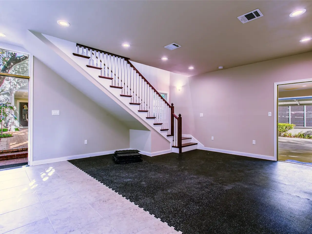 Removable gym flooring in guest house