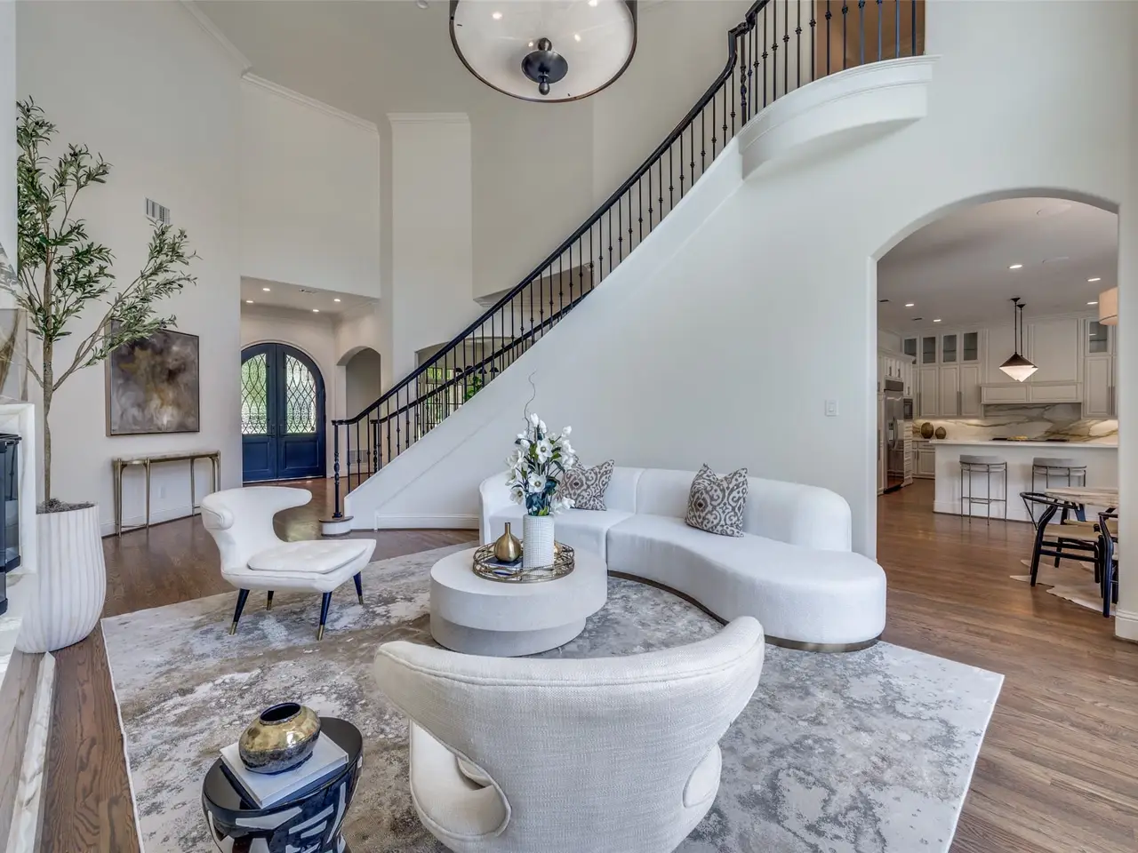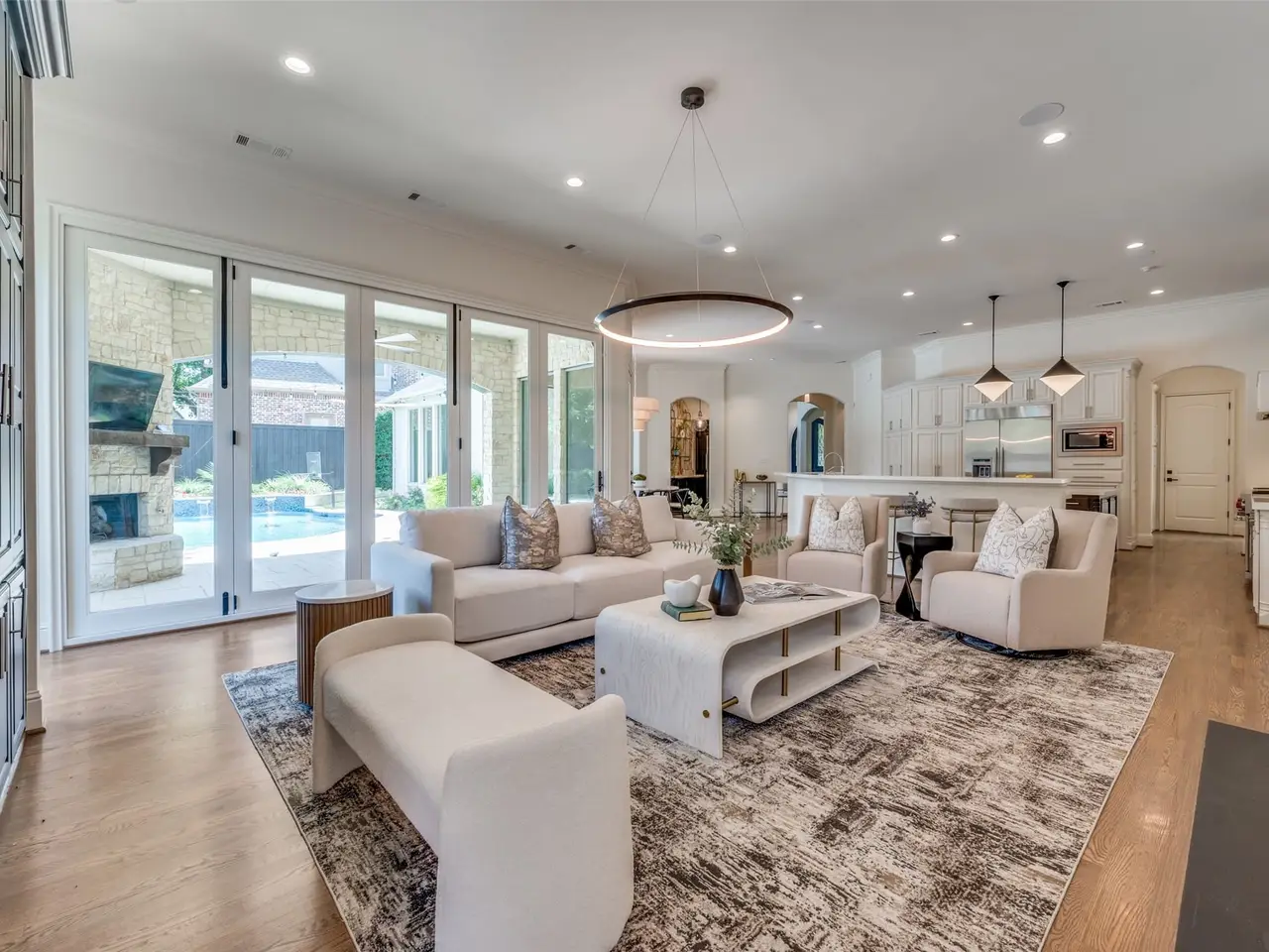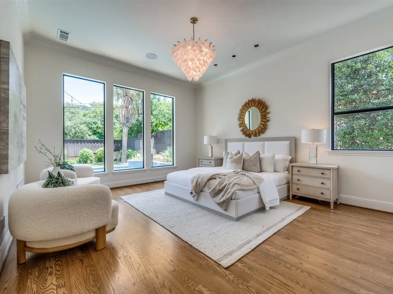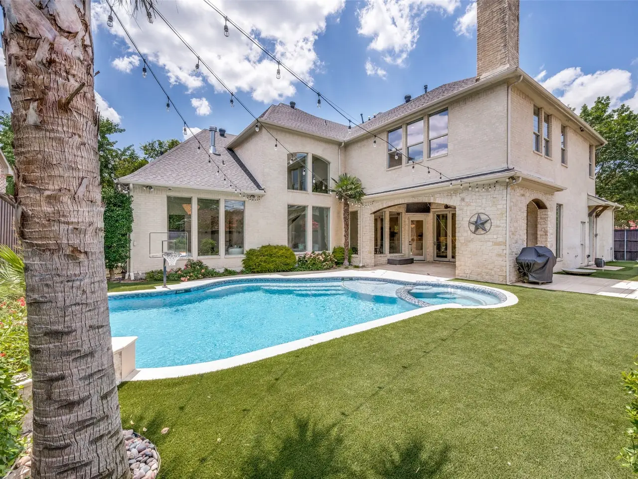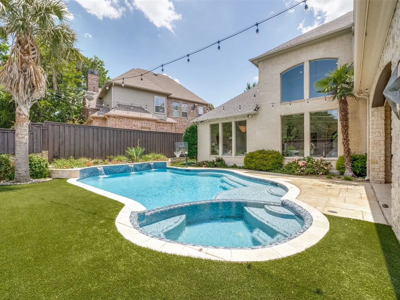 Stunning 6-bed, 5.1-bath transitional set on a prime lot with 5,696 SF of luxury living. Features include a first-floor primary suite and guest room, open-concept chefs kitchen, and spacious game and media rooms upstairs. Each bedroom offers an en-suite bath. Exceptional outdoor living with a covered verandah, pool, built-in grill, trampoline, and custom fortperfect for entertaining and family fun. Three-car garage and direct access to the Northaven Trail for biking and walks. A rare blend of elegance and lifestyle.
