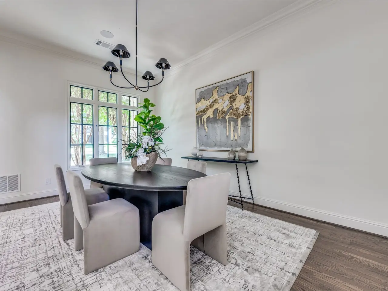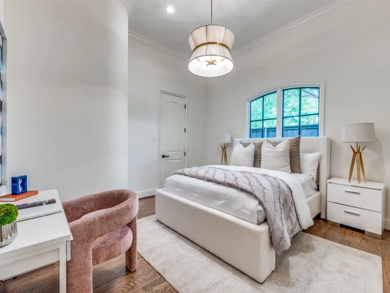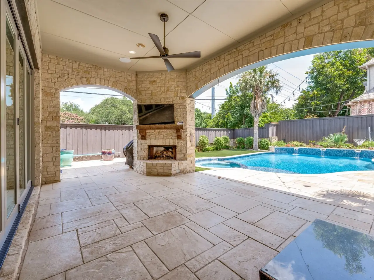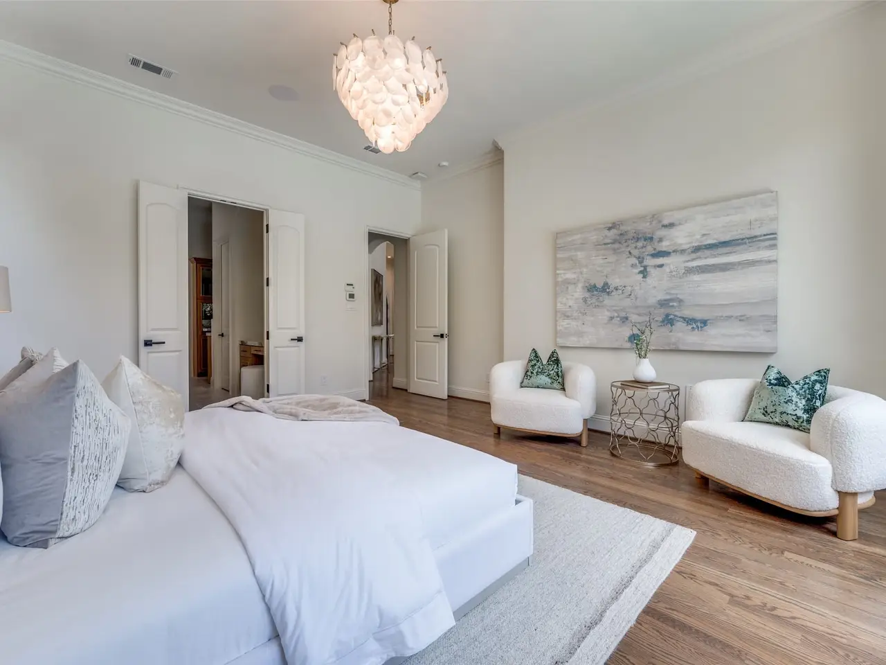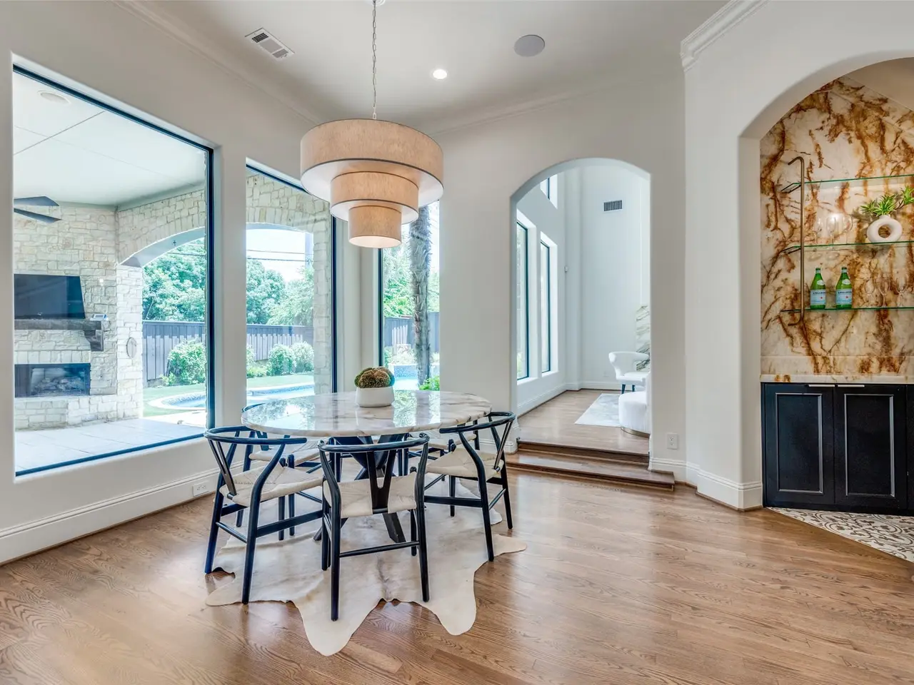 Stunning 6-bed, 5.1-bath transitional set on a prime lot with 5,696 SF of luxury living. Features include a first-floor primary suite and guest room, open-concept chefs kitchen, and spacious game and media rooms upstairs. Each bedroom offers an en-suite bath. Exceptional outdoor living with a covered verandah, pool, built-in grill, trampoline, and custom fortperfect for entertaining and family fun. Three-car garage and direct access to the Northaven Trail for biking and walks. A rare blend of elegance and lifestyle.