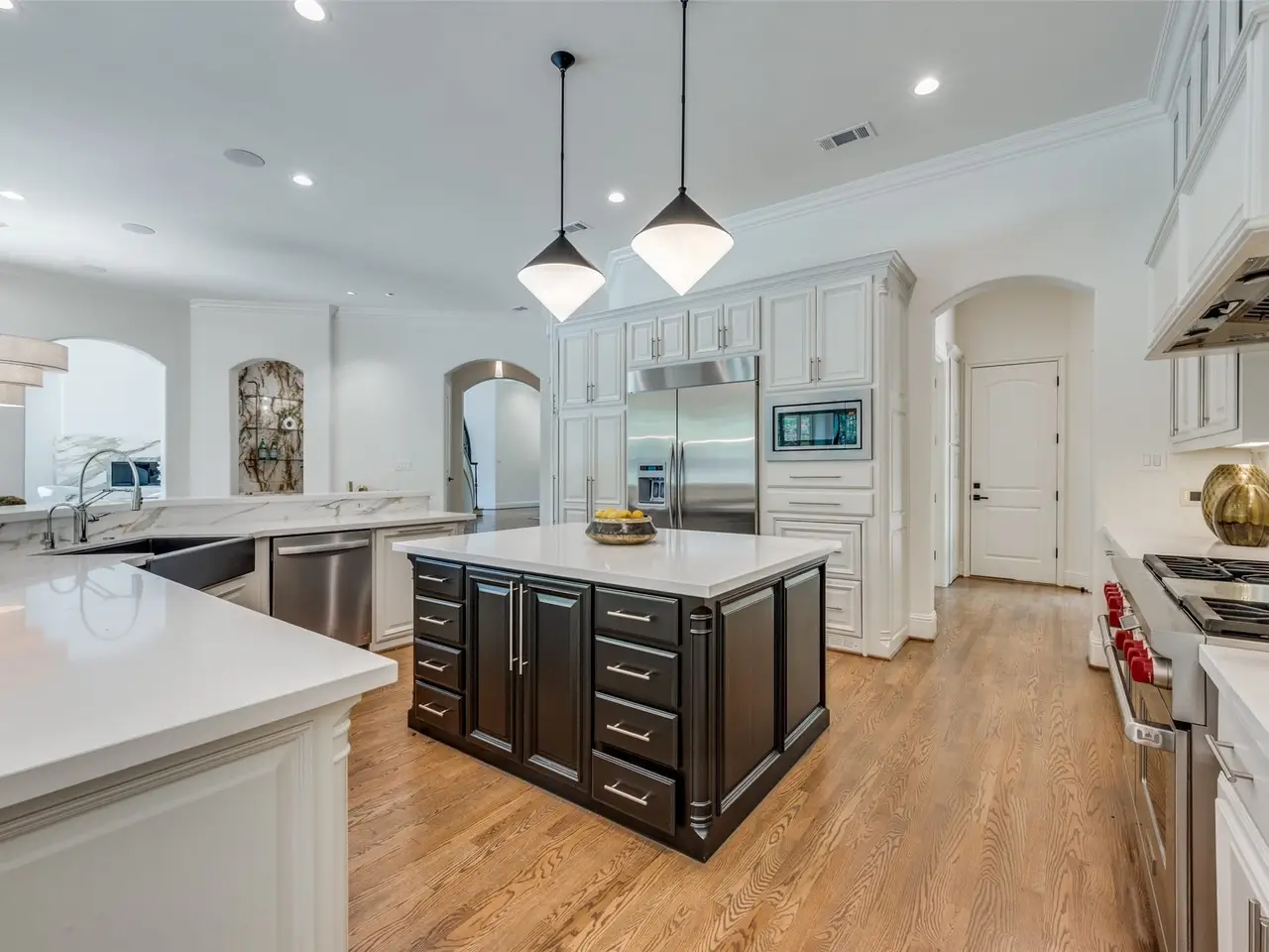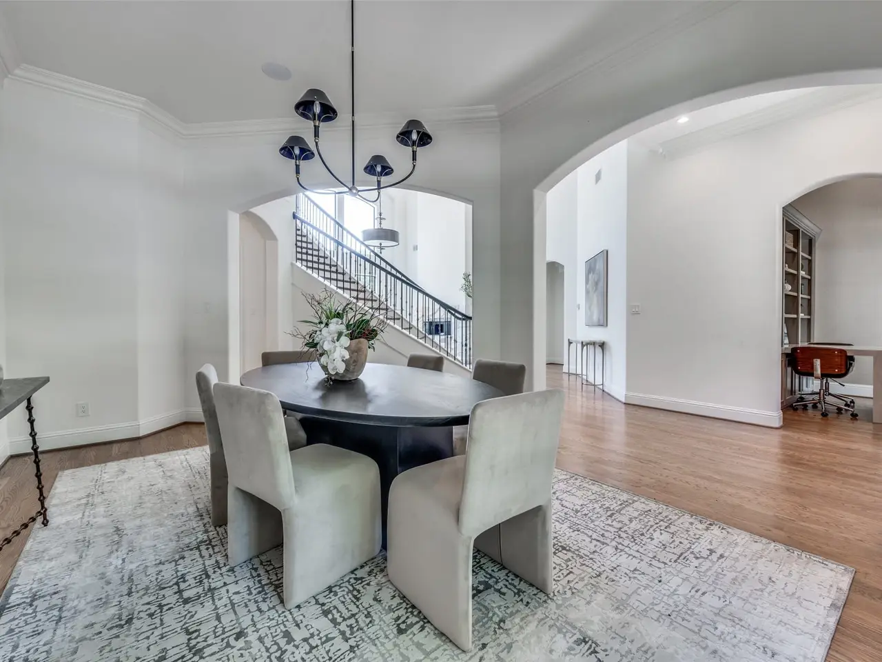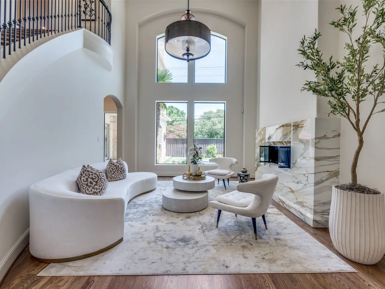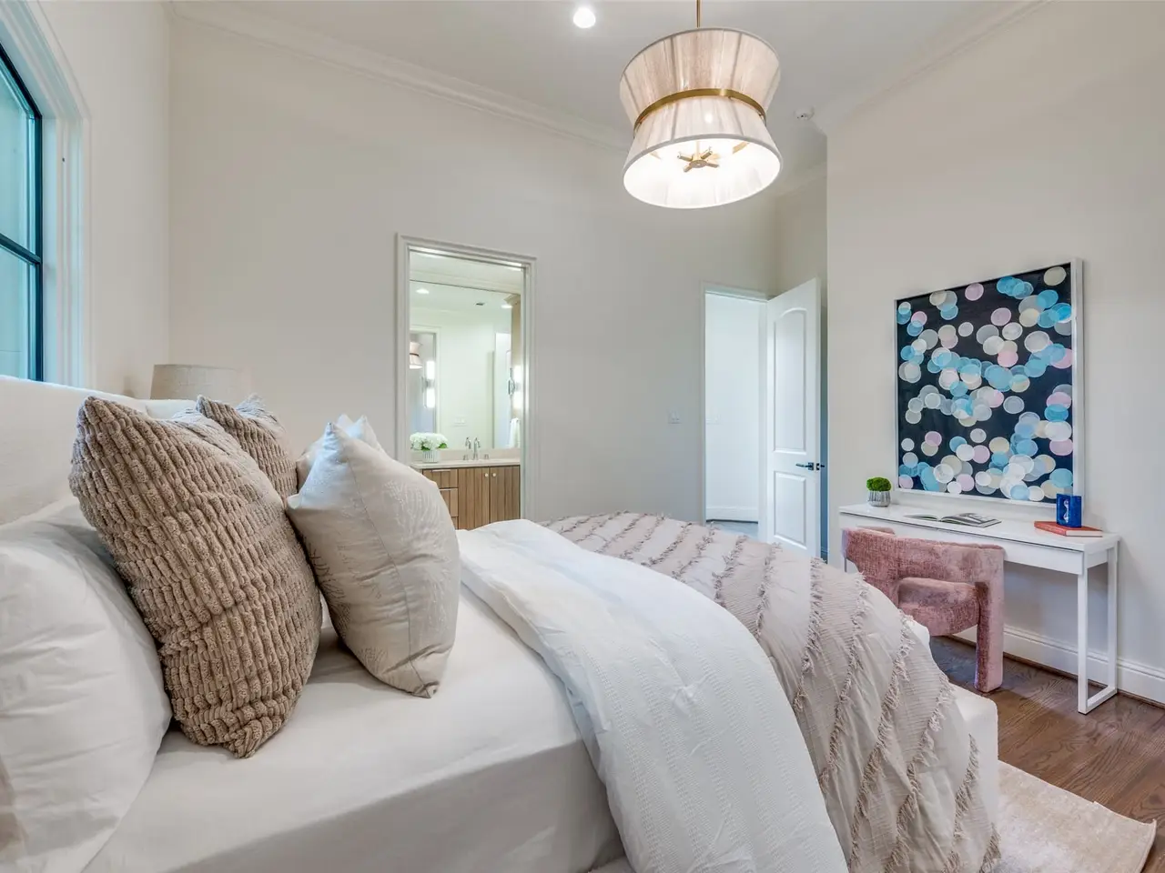 Stunning 6-bed, 5.1-bath transitional set on a prime lot with 5,696 SF of luxury living. Features include a first-floor primary suite and guest room, open-concept chefs kitchen, and spacious game and media rooms upstairs. Each bedroom offers an en-suite bath. Exceptional outdoor living with a covered verandah, pool, built-in grill, trampoline, and custom fortperfect for entertaining and family fun. Three-car garage and direct access to the Northaven Trail for biking and walks. A rare blend of elegance and lifestyle.