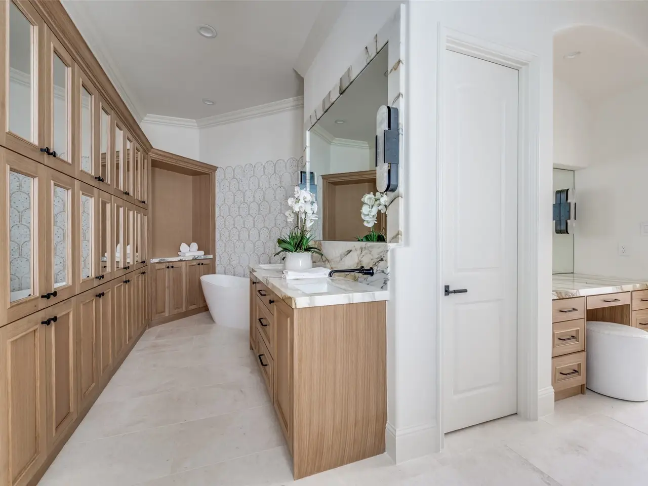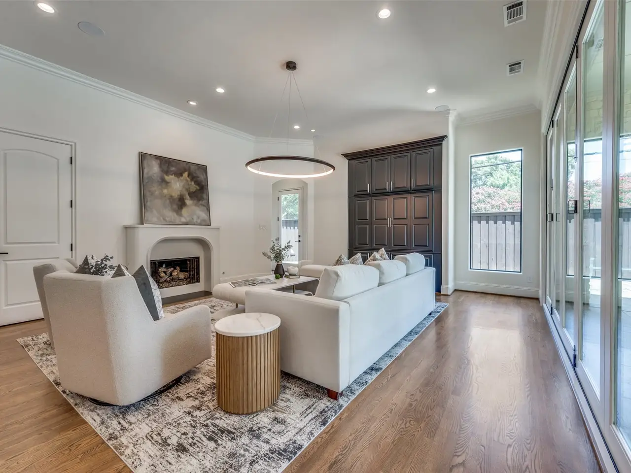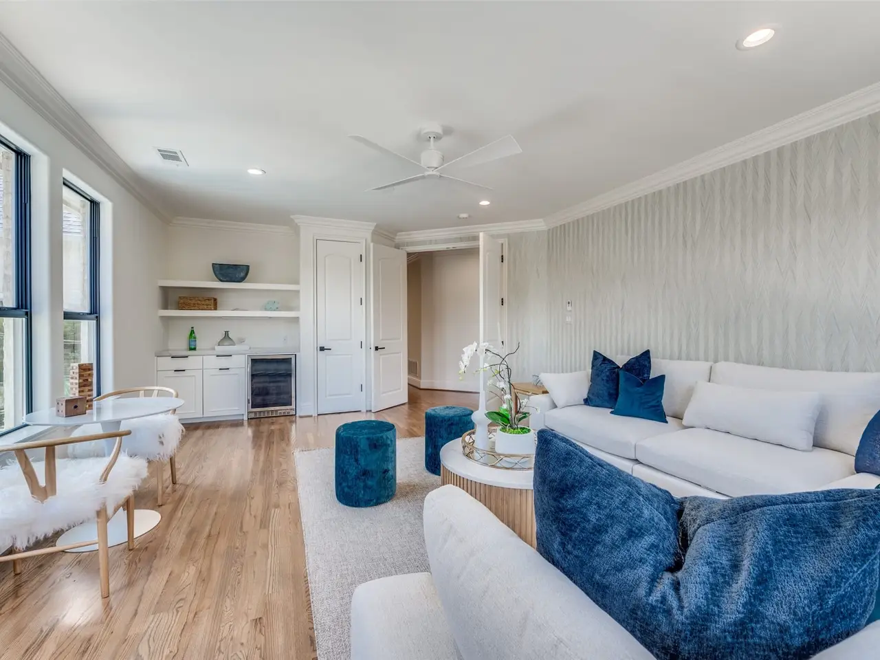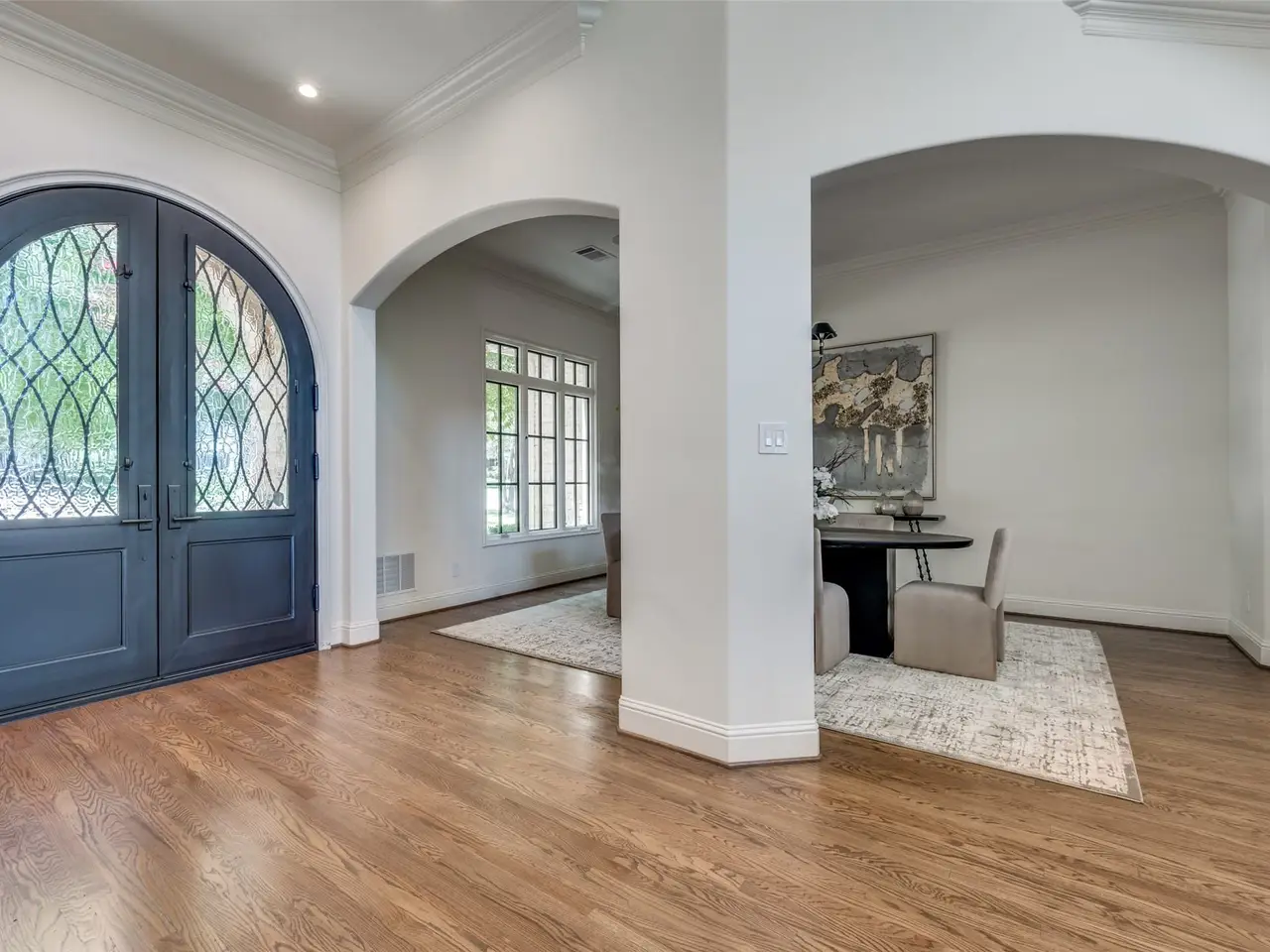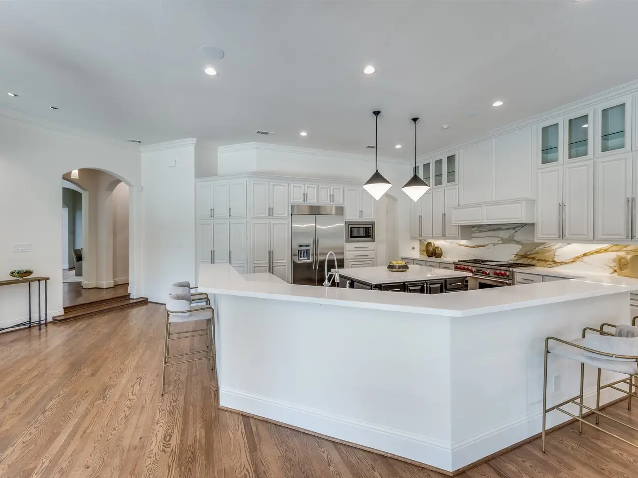 Stunning 6-bed, 5.1-bath transitional set on a prime lot with 5,696 SF of luxury living. Features include a first-floor primary suite and guest room, open-concept chefs kitchen, and spacious game and media rooms upstairs. Each bedroom offers an en-suite bath. Exceptional outdoor living with a covered verandah, pool, built-in grill, trampoline, and custom fortperfect for entertaining and family fun. Three-car garage and direct access to the Northaven Trail for biking and walks. A rare blend of elegance and lifestyle.