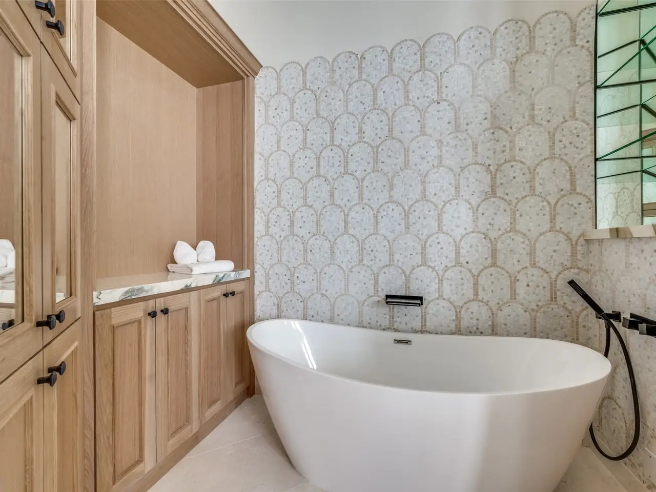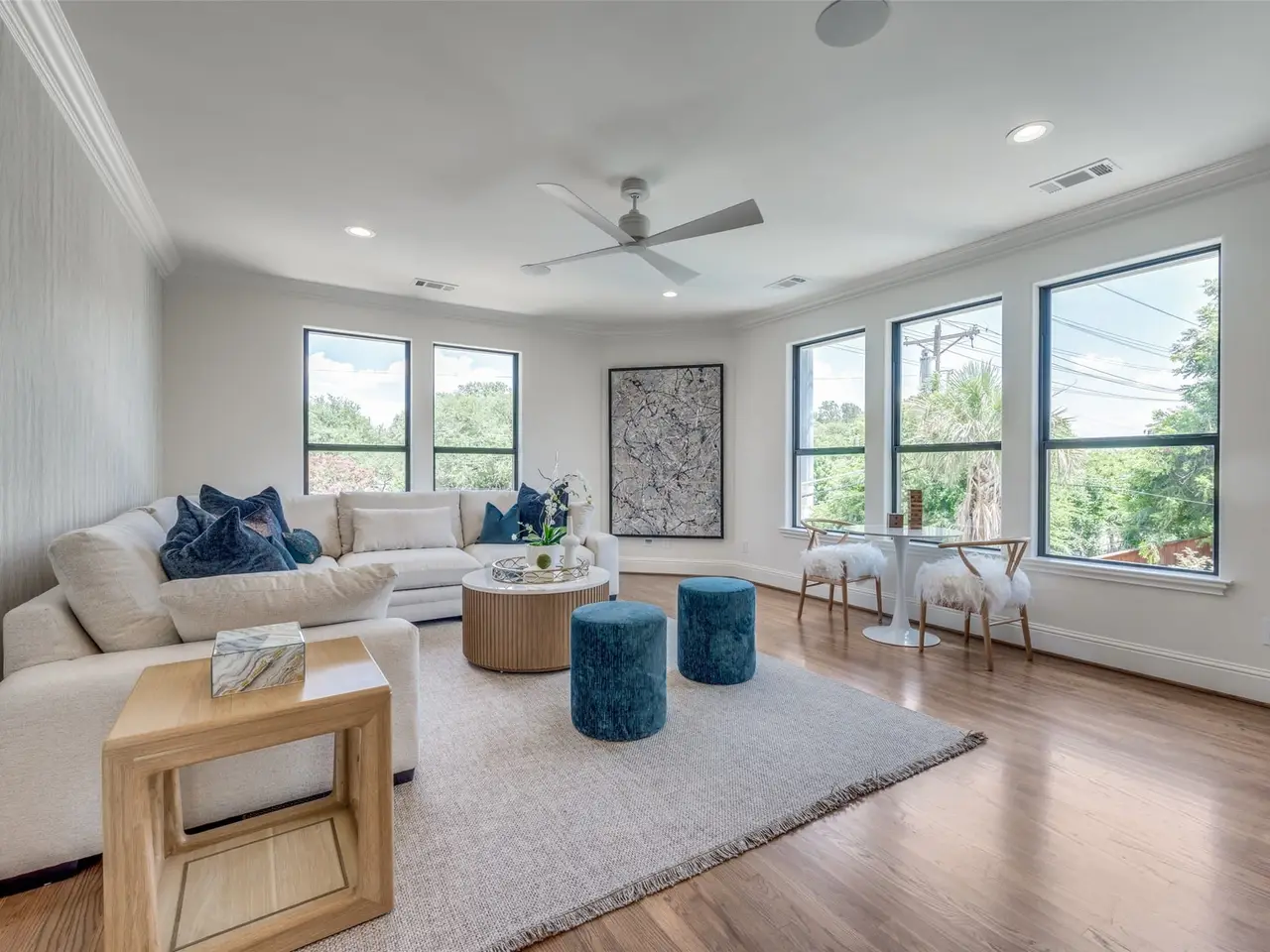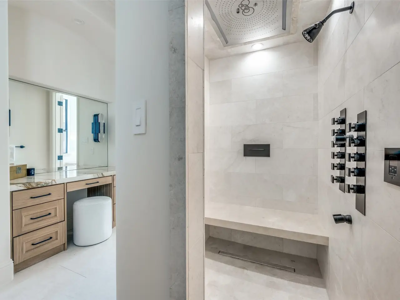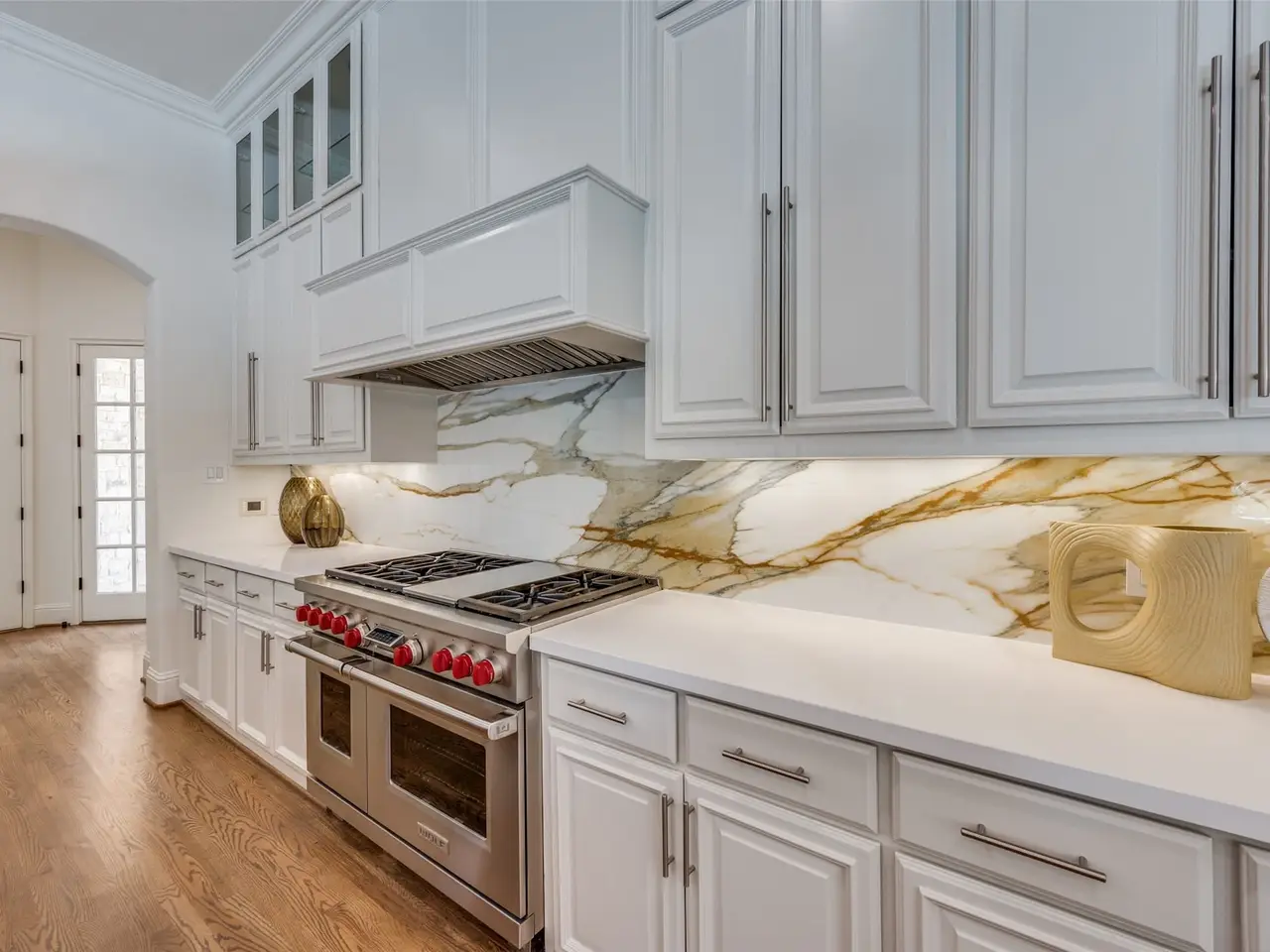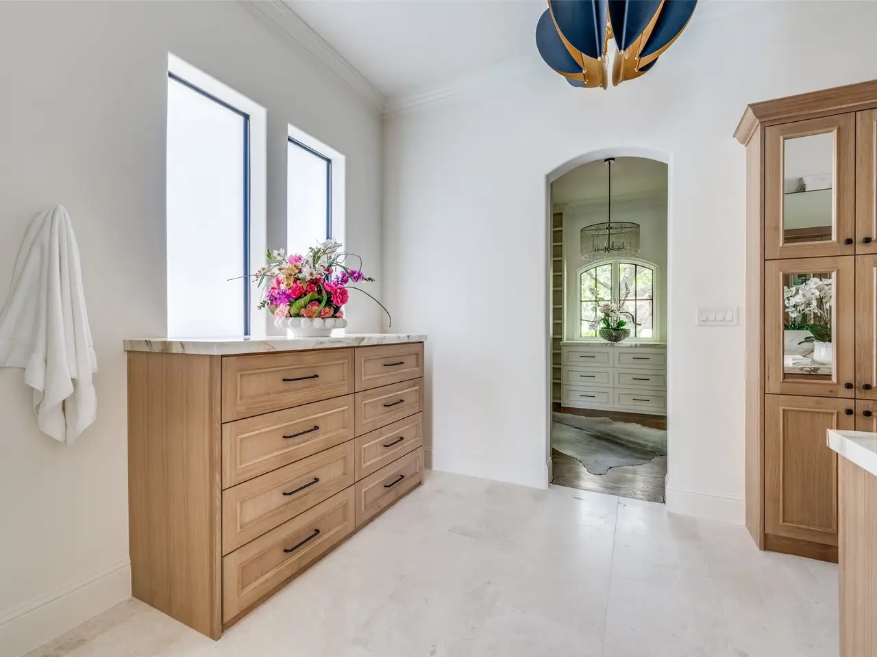 Stunning 6-bed, 5.1-bath transitional set on a prime lot with 5,696 SF of luxury living. Features include a first-floor primary suite and guest room, open-concept chefs kitchen, and spacious game and media rooms upstairs. Each bedroom offers an en-suite bath. Exceptional outdoor living with a covered verandah, pool, built-in grill, trampoline, and custom fortperfect for entertaining and family fun. Three-car garage and direct access to the Northaven Trail for biking and walks. A rare blend of elegance and lifestyle.