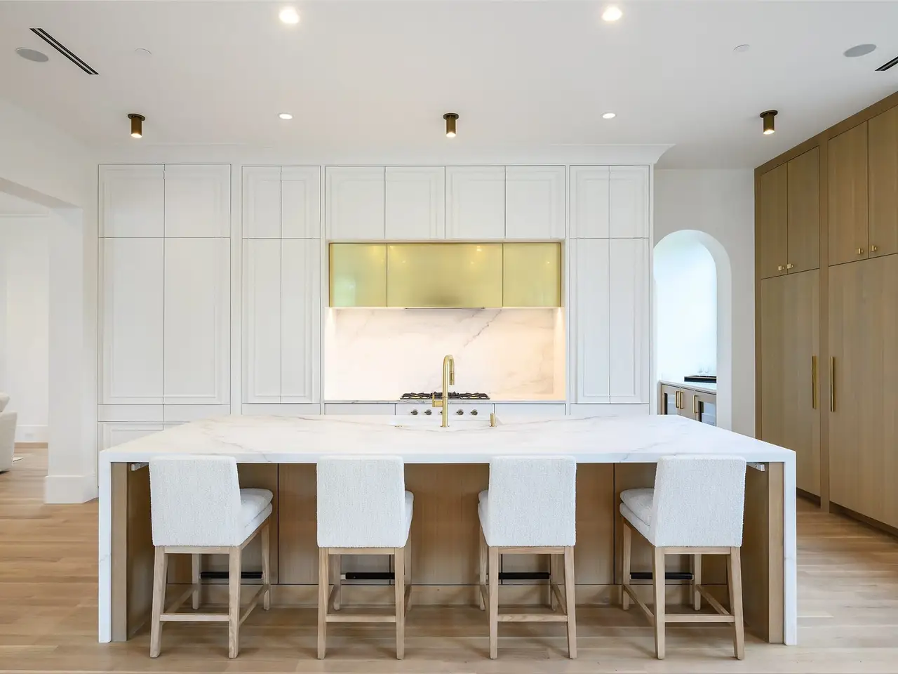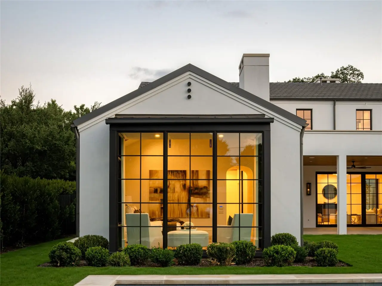 Situated on a prominent half-acre corner lot in one of Dallas' most coveted neighborhoods, 4407 San Gabriel Drive is a masterfully crafted custom home, completed in August 2025 by the esteemed SHM Architects. This architectural gem seamlessly blends clean, modern lines with warm, timeless materials to create a sophisticated yet inviting living environment tailored for today's discerning homeowner. Offering four spacious bedrooms, four full baths, and two elegant powder rooms, the home is designed with flexibility in mind - one upstairs bedroom can easily serve as a state-of-the-art media room. A private study provides the ideal space for working from home, while a dedicated gym promotes health and convenience. At the heart of the home lies an expansive great room, anchored by dramatic sliding glass doors that open to the outdoor living area, blurring the line between indoors and out. The dining room, wrapped in floor-to-ceiling windows, is filled with natural light - perfect for both intimate dinners and lively gatherings. The chef's kitchen is a showstopper, featuring Gaggenau appliances, sleek custom cabinetry, and a fully equipped butler's pantry with a built-in coffee machine - ideal for seamless entertaining. The primary suite, located on the main level for privacy, is a true retreat with a sunlit sitting area overlooking the backyard, dual walk-in closets, and a spa-inspired bath with dual vanities, soaking tub, and glass-enclosed shower. Step outside to a private oasis by Terrain Workshop, where curated landscaping surrounds a sparkling pool, and a covered patio with an outdoor kitchen invites year-round alfresco living. An attached two-car garage completes this thoughtfully designed home. Every inch of 4407 San Gabriel Drive reflects exceptional craftsmanship, timeless design, and architectural excellence in the heart of Dallas. Buyer and buyer's agent to confirm all measurements, lot size, and school info.