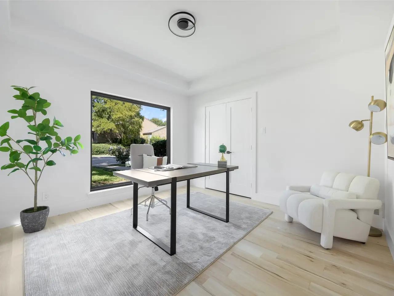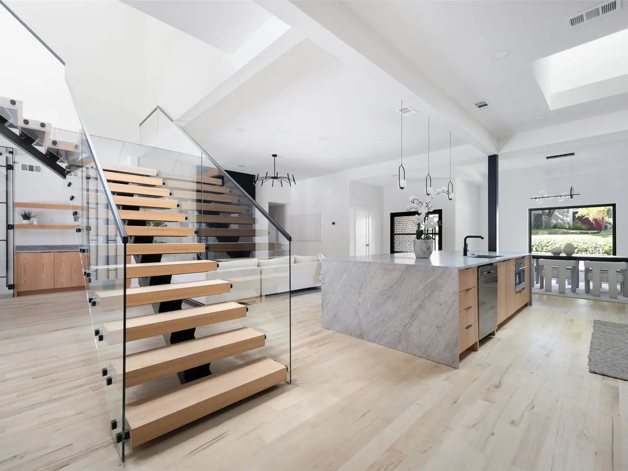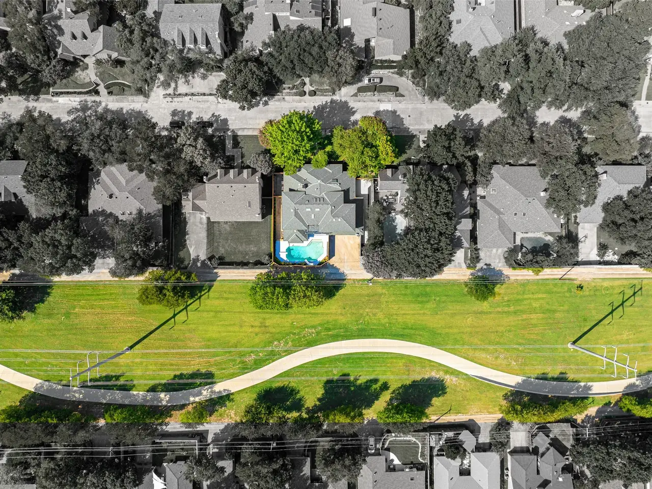 Rare chance to own a seven-bedroom home with a pool in Merriman Park, part of Lake Highlands. In addition, this home is completely updated to the nines. Has all the bells and whistles: real hardwood floors, vaulted ceilings, custom designer lighting, new drywall, new paint, custom steel and glass front door, custom steel and glass staircase—just to name a few. Gourmet kitchen with luxury stainless steel appliances, stone oversized island, floor-to-ceiling wood grain custom-built cabinets, gas range, breakfast nook, and large pantry. Large primary suite with a one-of-a-kind en suite bath: huge circle tub, custom built-ins, sauna, glass shower, Japanese bidet, and walls of glass. Step into the primary closet that is as big as a room in itself. Three other bedrooms downstairs. Then walk upstairs to see the huge game room with built-in coffee bar, bedroom or office, media room with patio walk-out, and two additional bedrooms around the upstairs corner. Views from the upstairs patio of the pool and greenbelt with running trail. This home has everything that you could ask for.
