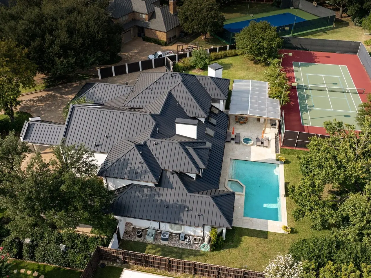Live a life of luxury and leisure in this modern masterpiece, set on nearly an acre of manicured grounds. This isnt just a home; its your own private resort, designed for both vibrant entertaining and serene relaxation. The outdoors is where the magic happens. Imagine a beautiful afternoon spent playing on your very own full-size private tennis courtcomplete with lighting for evening matcheswhich also features a dedicated pickleball court. The expansive yard offers a large green space surrounded by mature trees, perfect for quiet afternoons or a game of frisbee. When its time to unwind, gather around the firepit under the stars or take a refreshing dip in the sparkling pool. An expansive covered patio hosts a full outdoor kitchen, making it effortless to host unforgettable barbecues and poolside parties. A grand circular drive provides an elegant welcome for you and your guests. Inside, the home is a celebration of light and space. Walls of windows and sliding glass doors blur the line between the indoors and your private outdoor sanctuary. The formal dining room is perfect for hosting elegant dinner parties, featuring heated built-ins for serving, while the polished marble flooring adds a touch of timeless sophistication. The gourmet kitchen is the heart of the home, equipped with a Sub-Zero refrigerator, a 6-burner gas cooktop, double dishwashers, double ovens, and a warming drawer. With polished granite on the floors and countertops, Seimatic cabinetry, and artistic lighting, this space is both beautiful and functional. This home offers ultimate comfort for everyone. The primary suite is a true spa-like retreat with dual sinks, a luxurious walk-in shower with dual heads and body sprays, and two separate toilets. The secondary bedrooms have ensuite baths and walk-in closets, ensuring every guest or family member enjoys their own private sanctuary. Close to top-tier private schools and high-end retail and dining, with easy access to the Dallas North Tollway.