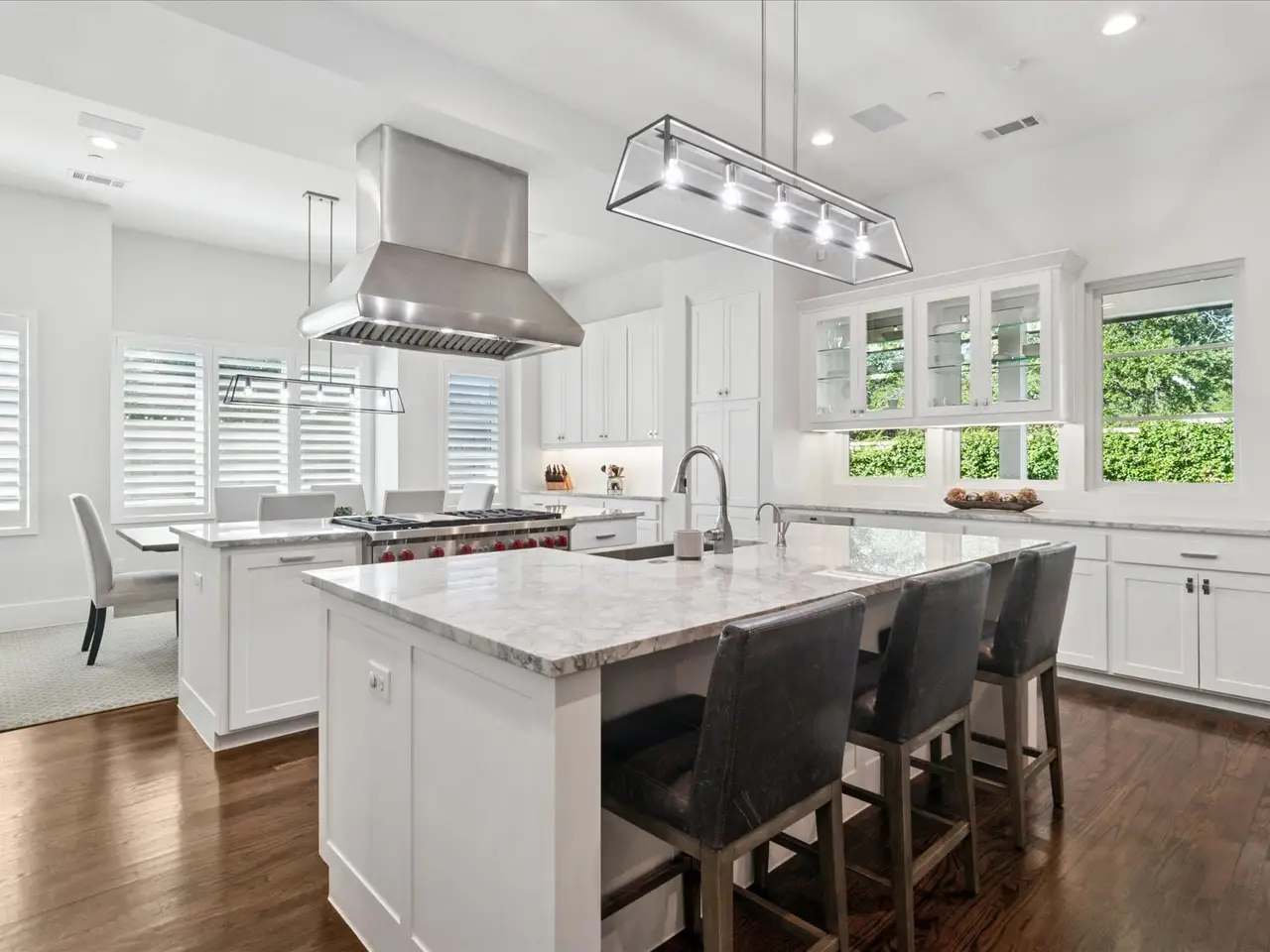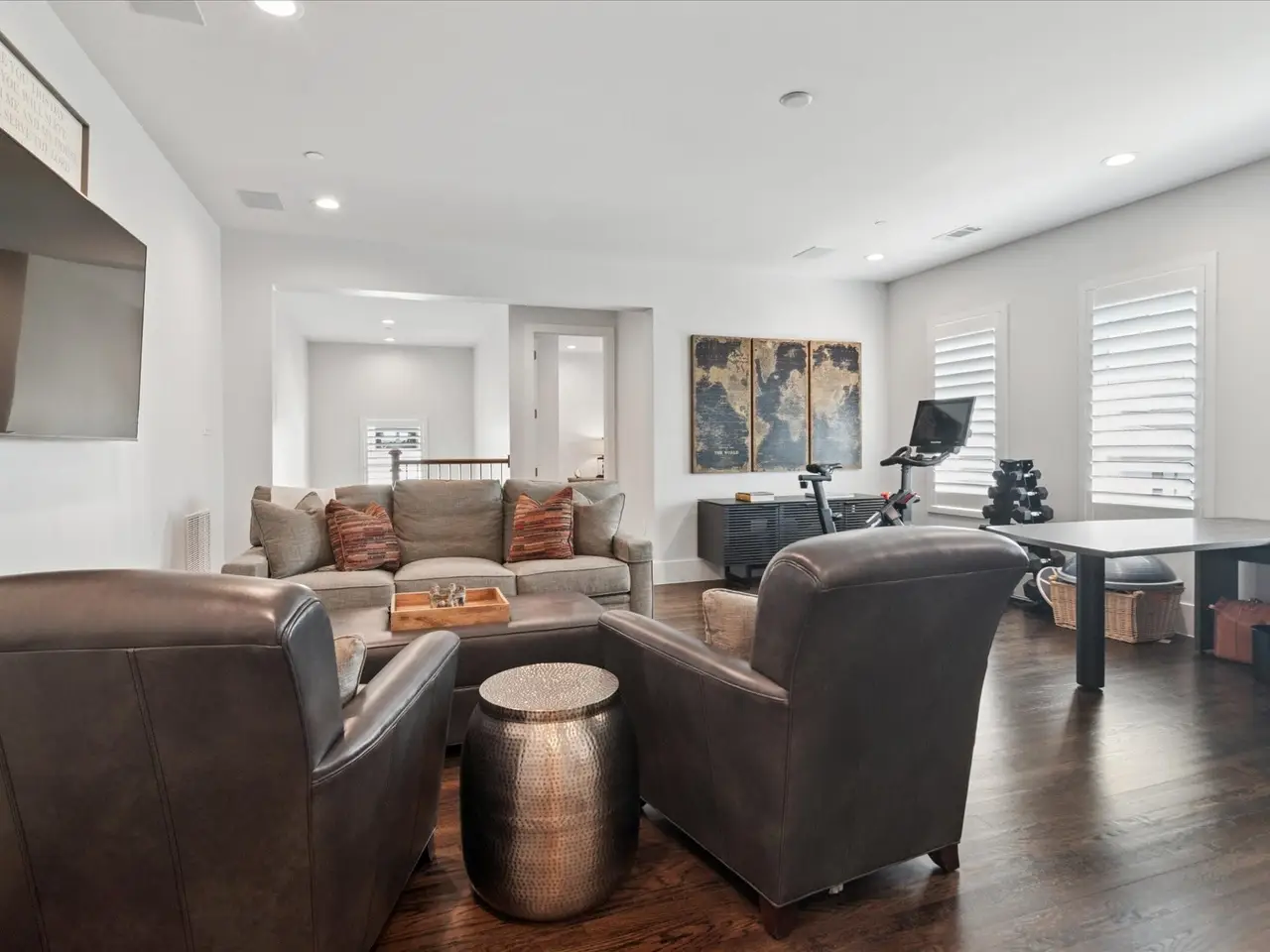 Experience modern living in this contemporary residence, tucked inside one of North Dallas' few private gated communities. Perfectly situated off Forest Lane between Hillcrest and Preston Road, 11825 Green Knoll Dr. offers sleek architectural lines, a timeless neutral palette, and a thoughtful floor plan that blends beauty with functionality. The inviting, low-maintenance outdoor space is designed for year-round enjoyment with a covered patio, fireplace, motorized retractable screens, and seamless indoor-outdoor flow. Inside, the gourmet chefs kitchen impresses with dual islands, a Wolf 6-burner gas cooktop, Sub-Zero built-in refrigerator, designer marble countertops, and abundant custom cabinetry. A spacious butler's pantry expands the possibilities with additional storage, serving space and room for a custom coffee bar. The open-concept living area features a wet bar, wine cooler, beverage fridge and a 2025 nugget ice machineperfect for entertaining. A flexible formal dining room or office, currently used as a music room, is enhanced with custom sliding privacy doors. The luxurious primary suite overlooks the backyard oasis and includes a spa-inspired bath with a soaking tub, expansive shower, and dual vanities. A second ensuite bedroom downstairs provides comfort for guests, while two additional upstairs bedrooms with ensuites flank a large game room for versatile living. Notable upgrades include: whole-home generator, plantation shutters and professionally designed $100,000 AV system with Sonos multi-zone audio, ceiling speakers, dual TV feeds, security cameras, backup time-controlled interior lights, and high-performance internet firewall. All just minutes from NorthPark Center, The Galleria, and Dallass top private schools, this residence delivers the perfect blend of lifestyle, location, and community.