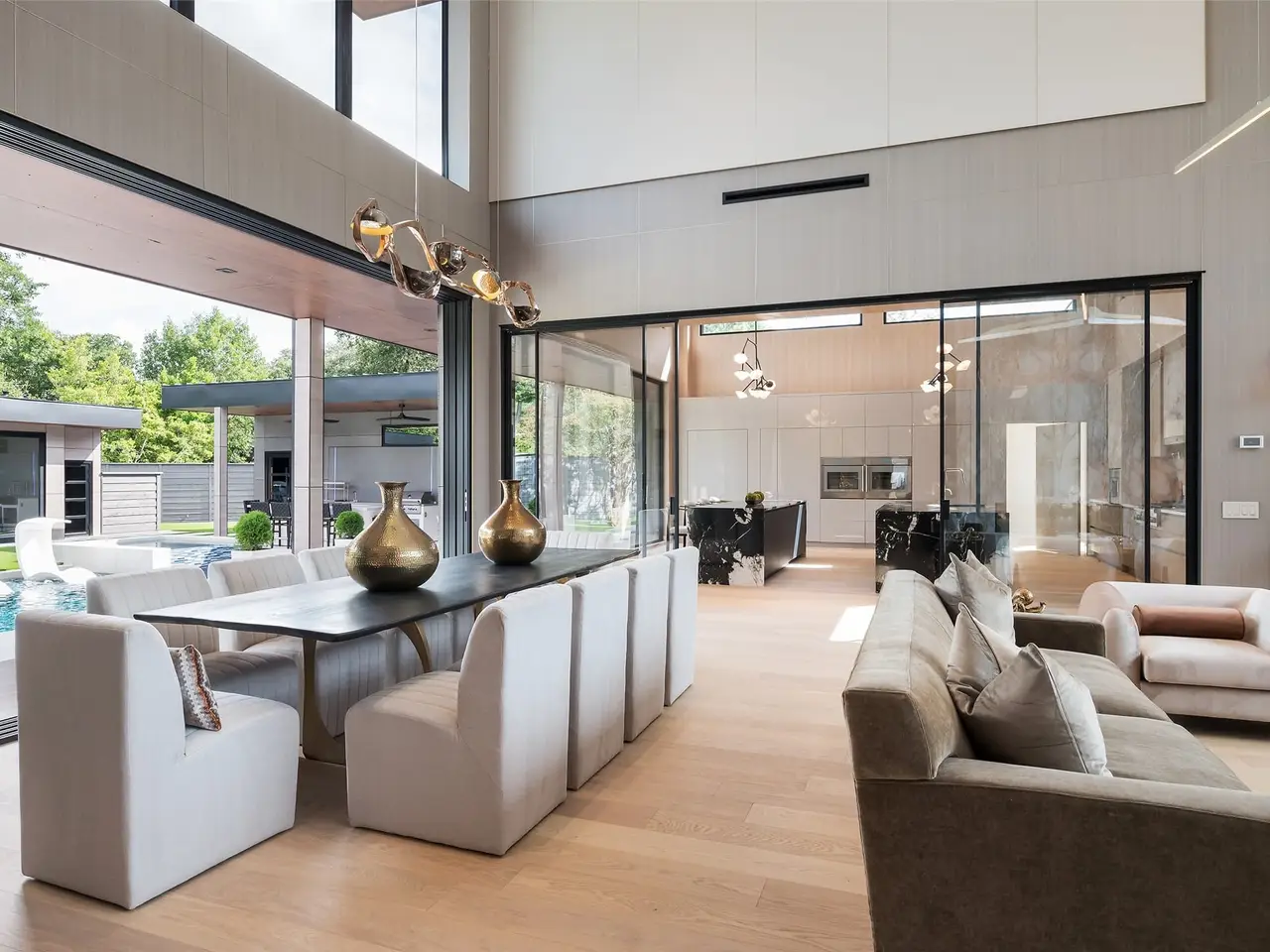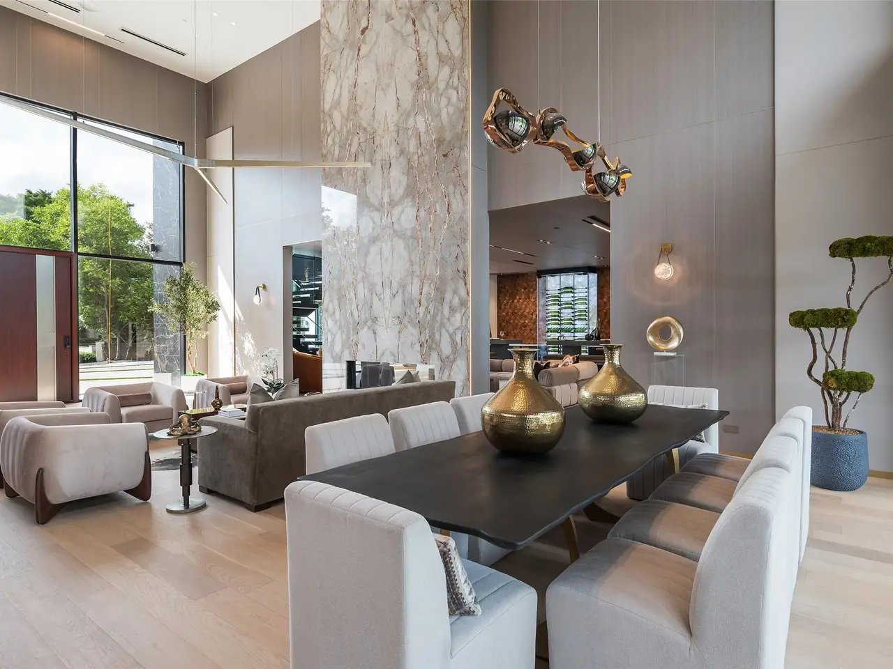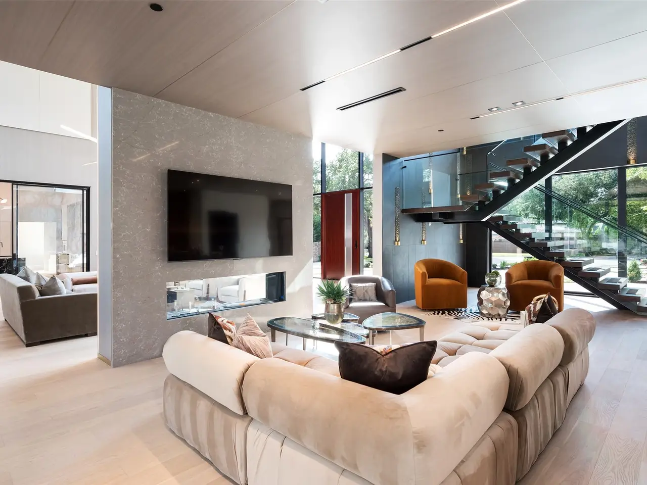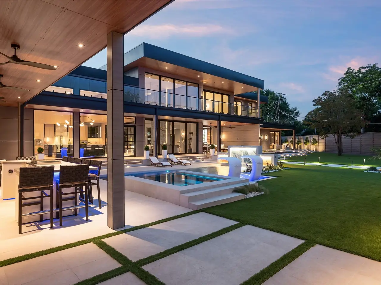 Nestled on an expansive .82-acre cul-de-sac lot in prestigious Preston Hollow, this newly constructed architectural marvel exudes unparalleled sophistication with 8500 SF in main house and a 600 SF casita. The marble slab cladding & circular driveway offers the WOW factor upon arriving at this masterpiece. Step inside & be greeted by soaring 20 ceilings and walls of glass that flood the home with natural light, creating an atmosphere of luminous refinement. The flawless first-floor design seamlessly integrates form and function, with formal living and dining areas adorned with a double-sided marble fireplace, luxurious wall paneling, & magnetic LED lighting. The stylish club room features high-top tables, a sleek bar, & a climate-controlled wine cellar. Sliding glass walls artfully separate the expansive gourmet kitchen, a culinary showpiece appointed with stone countertops, double islands, sleek Florense cabinetry, Thermador appliances, & designer lighting. A spacious pantry & separate back kitchen ensure flawless functionality. Just beyond, a media room invites guests to indulge in cinematic experiences or relax in casual luxury. The primary suite is a private sanctuary with a spa-like bathroom clad in porcelain onyx and marble, a dramatic black bathtub, impeccably appointed closets and built-in coffee bar. A secondary upstairs suite, an additional laundry room, and a stunning flamed Azure marble staircase with glass railing and walnut treads further elevate the home. Outdoor living is a symphony of luxury, boasting a heated pool with a mesmerizing Alex Turco water feature, a sunken firepit, an outdoor kitchen, and a turfed yard adorned with cherry trees and landscape lighting. A private casita with a kitchenette, full bath, and sauna offers impeccable guest accommodations or wellness retreat. Completing this modern marvel is a 4-car garage enhanced with designer lighting and bespoke wall coverings. This is the pinnacle of modern luxury living in Preston Hollow.
