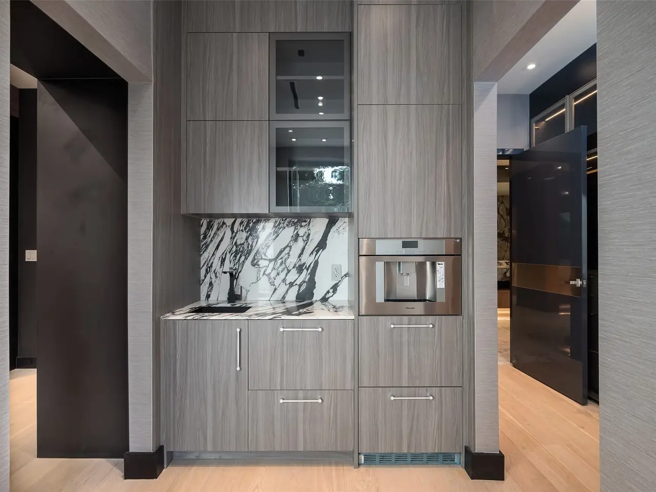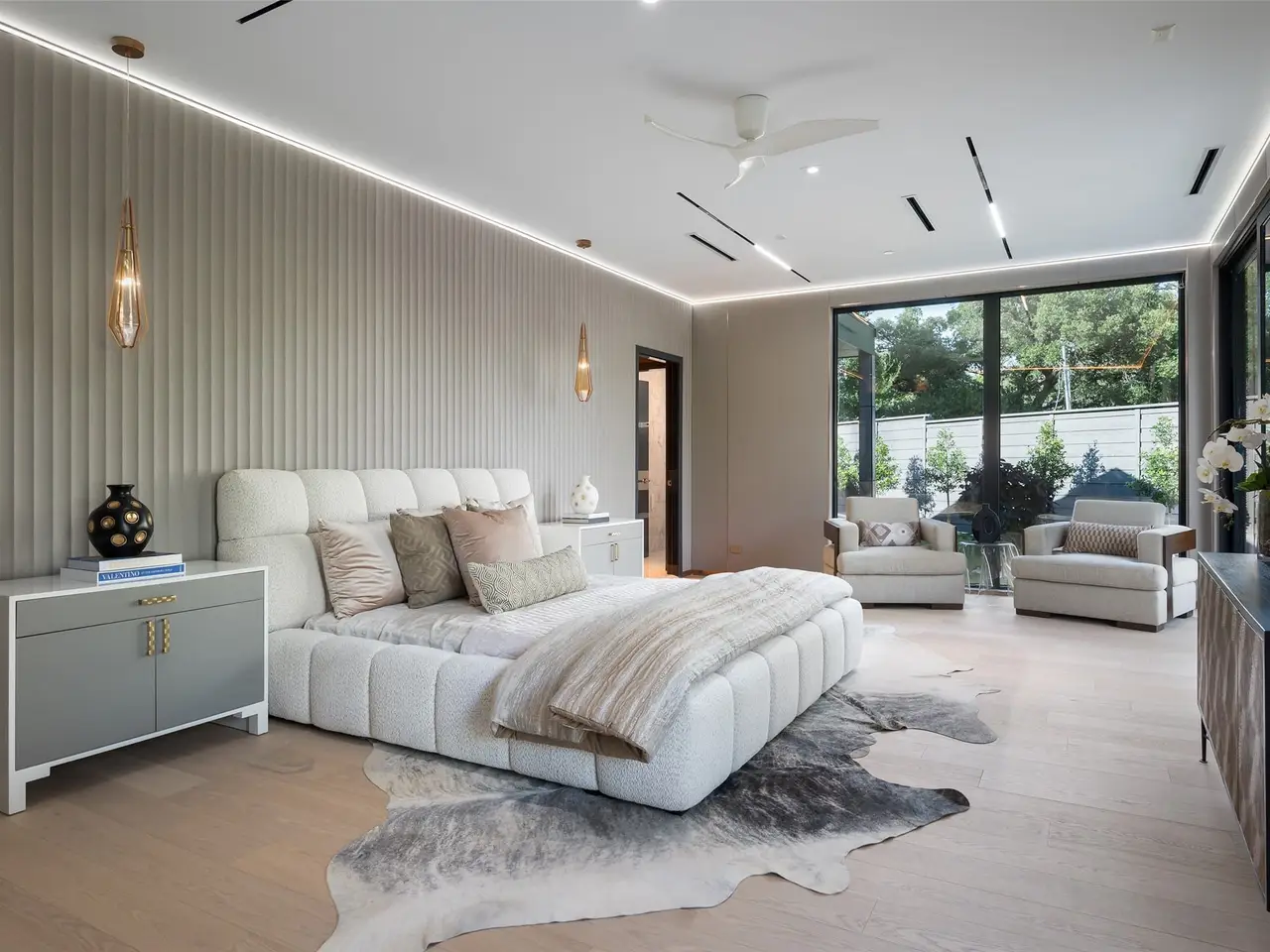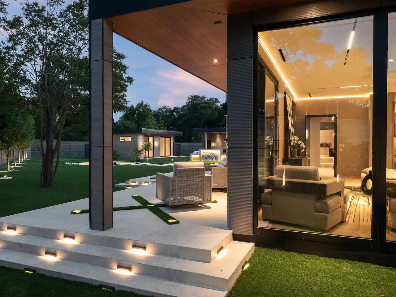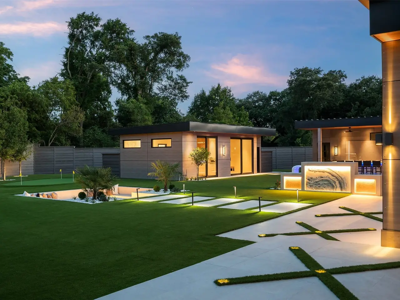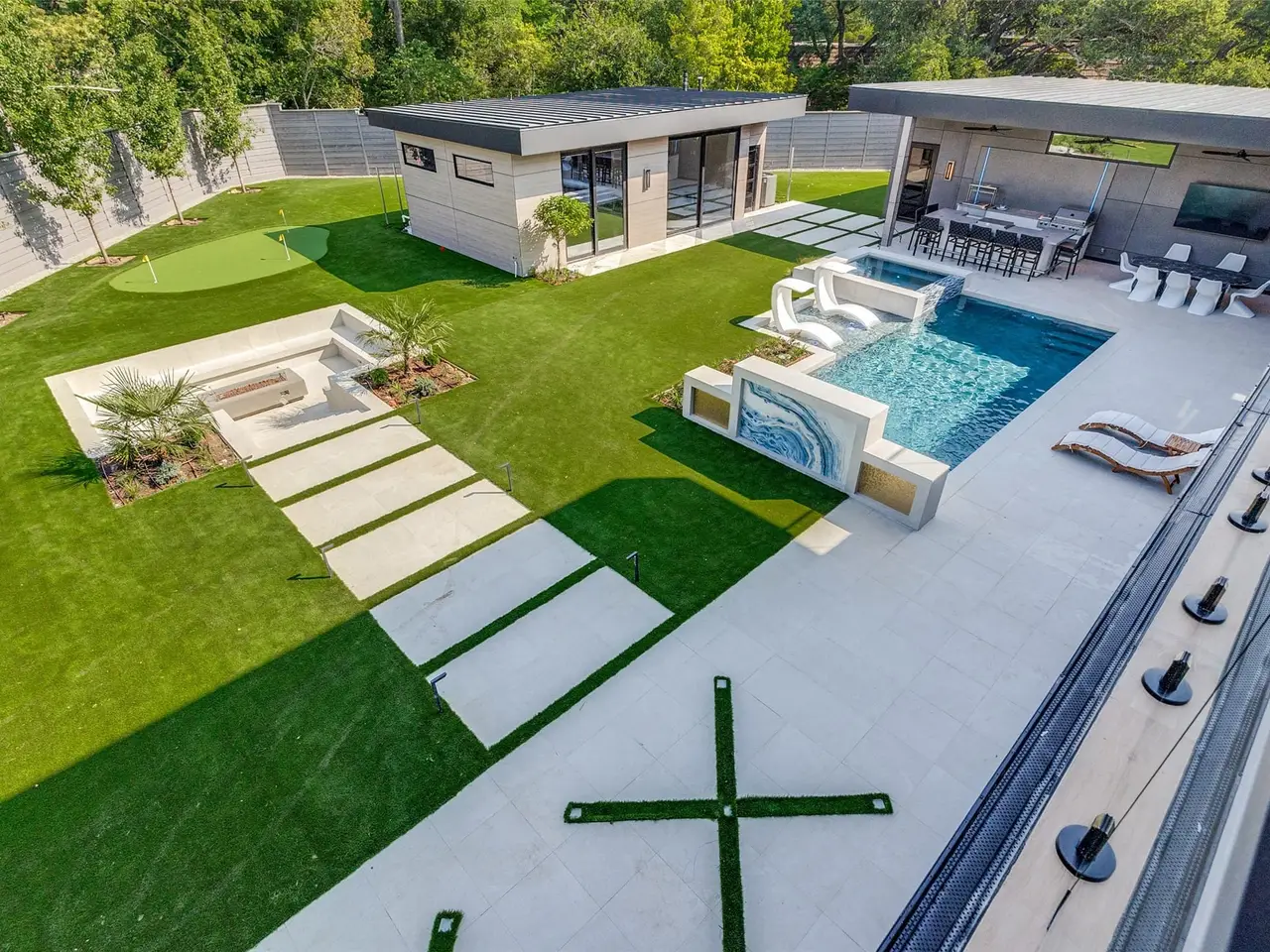 Nestled on an expansive .82-acre cul-de-sac lot in prestigious Preston Hollow, this newly constructed architectural marvel exudes unparalleled sophistication with 8500 SF in main house and a 600 SF casita. The marble slab cladding & circular driveway offers the WOW factor upon arriving at this masterpiece. Step inside & be greeted by soaring 20 ceilings and walls of glass that flood the home with natural light, creating an atmosphere of luminous refinement. The flawless first-floor design seamlessly integrates form and function, with formal living and dining areas adorned with a double-sided marble fireplace, luxurious wall paneling, & magnetic LED lighting. The stylish club room features high-top tables, a sleek bar, & a climate-controlled wine cellar. Sliding glass walls artfully separate the expansive gourmet kitchen, a culinary showpiece appointed with stone countertops, double islands, sleek Florense cabinetry, Thermador appliances, & designer lighting. A spacious pantry & separate back kitchen ensure flawless functionality. Just beyond, a media room invites guests to indulge in cinematic experiences or relax in casual luxury. The primary suite is a private sanctuary with a spa-like bathroom clad in porcelain onyx and marble, a dramatic black bathtub, impeccably appointed closets and built-in coffee bar. A secondary upstairs suite, an additional laundry room, and a stunning flamed Azure marble staircase with glass railing and walnut treads further elevate the home. Outdoor living is a symphony of luxury, boasting a heated pool with a mesmerizing Alex Turco water feature, a sunken firepit, an outdoor kitchen, and a turfed yard adorned with cherry trees and landscape lighting. A private casita with a kitchenette, full bath, and sauna offers impeccable guest accommodations or wellness retreat. Completing this modern marvel is a 4-car garage enhanced with designer lighting and bespoke wall coverings. This is the pinnacle of modern luxury living in Preston Hollow.