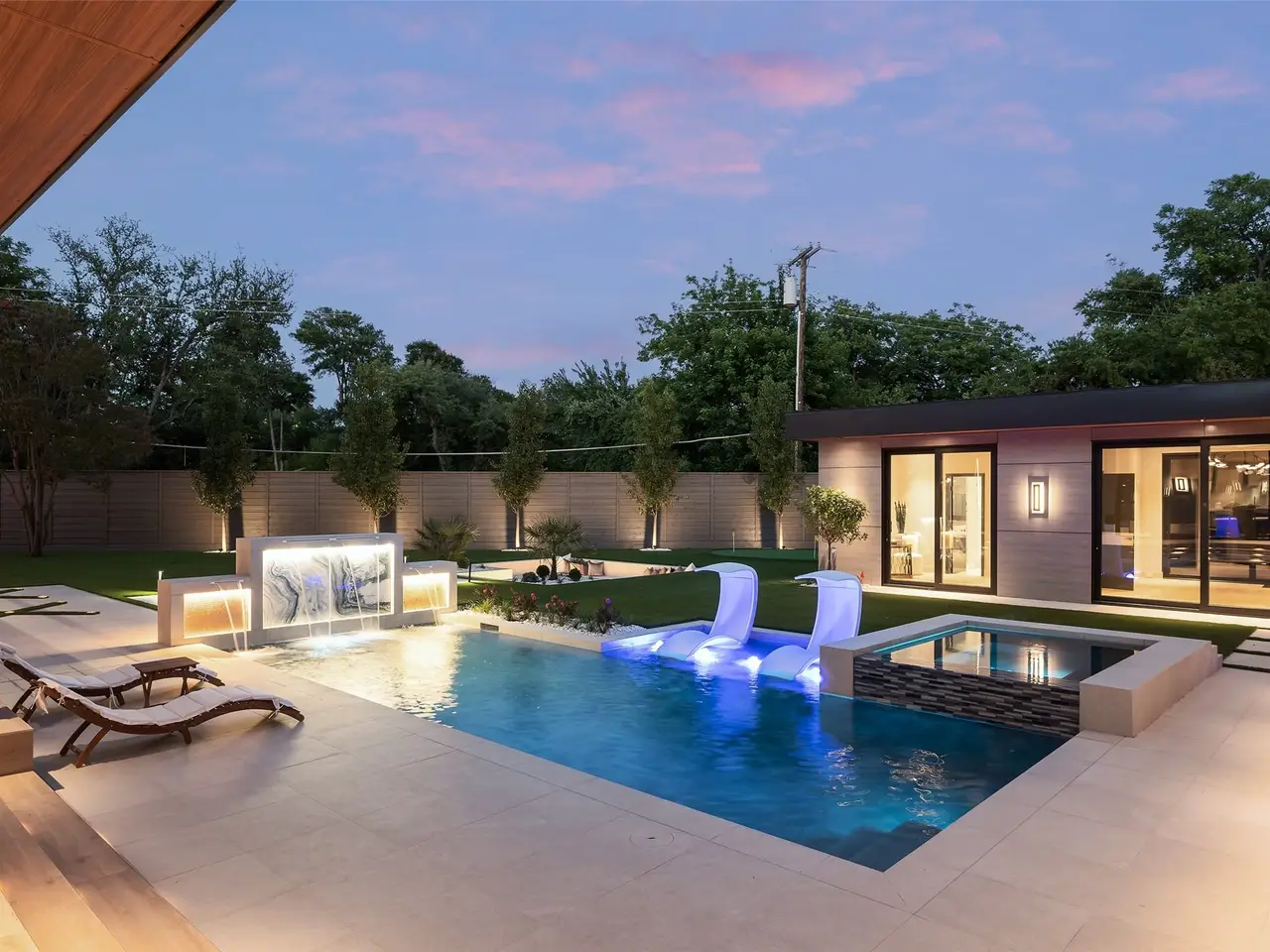 Heated pool with Alex Turco water feature