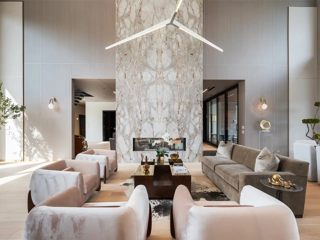 Soaring 20' ceilings with walls of glass