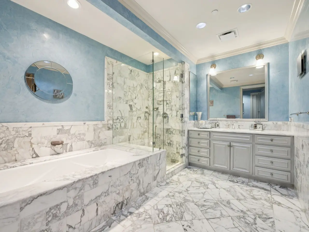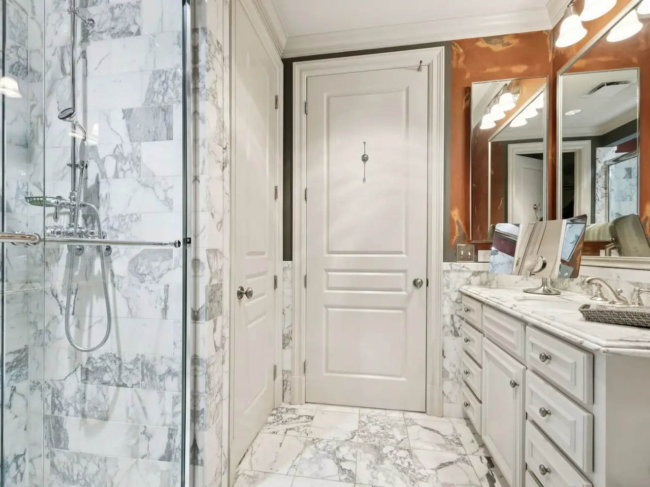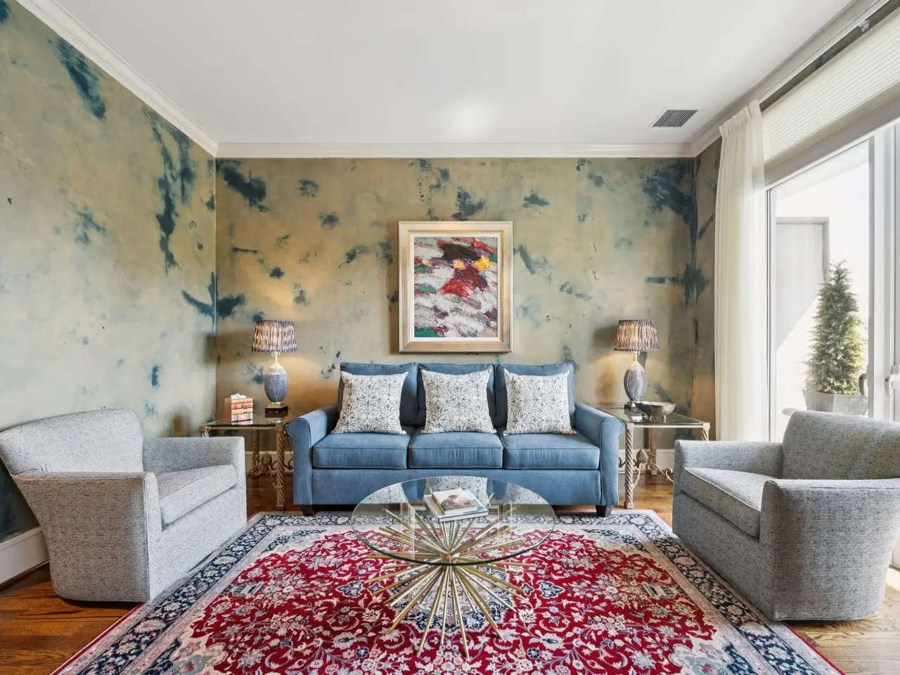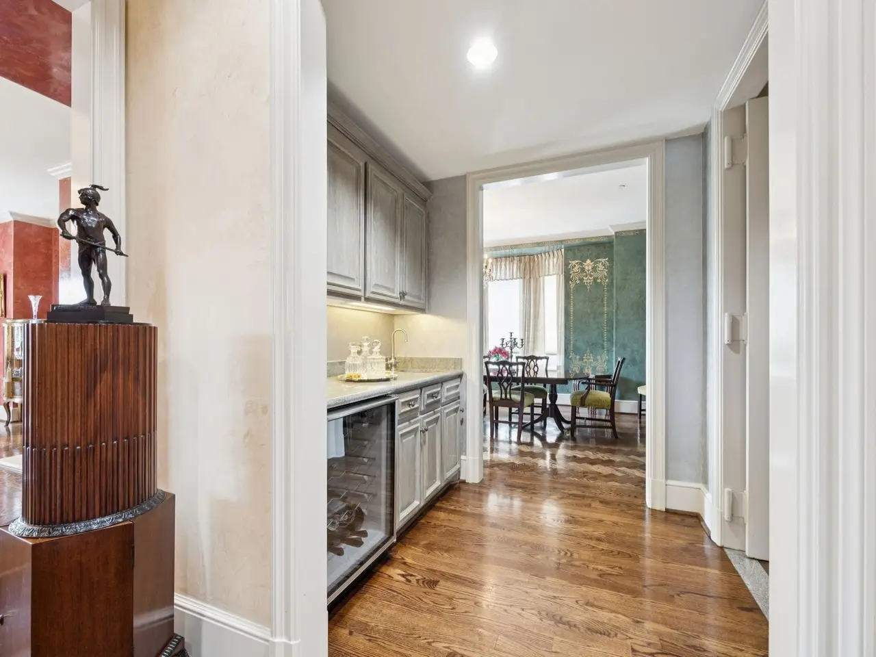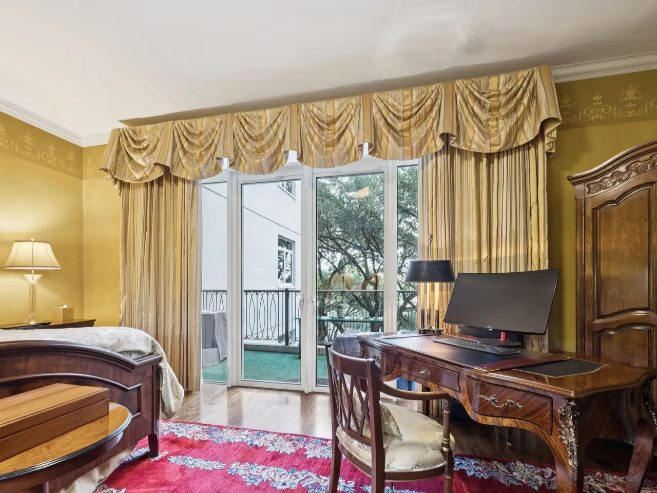 Rarely available and much sought-after, the Vendome’s prized B floor plan is now offered for purchase. This elegant three-bedroom residence combines timeless architecture with refined finishes, creating a true pied--terre in the sky. A private elevator opens to an entry vestibule, where Venetian plaster walls and carved front door introduce the artistry and sophistication found throughout. The formal living room, with floor-to-ceiling windows, fireplace, and access to a sweeping terrace, frames breathtaking treetop views of Turtle Creek and the Downtown Dallas skyline. A versatile third bedroom with private bath also functions handily as a second cozy living area and enjoys the skyline vistas. The expansive primary suite is a private sanctuary, complete with sitting area, a generous private balcony perfect for reading and enjoying these fall days, dual spa-inspired baths finished in white Carrera marble and generous walk-in closets. A third private bedroom with ensuite bath offers versatility for guests, study, or home office. The grand formal dining room with Venetian plaster walls shares downtown views and an additional cocktail terrace for the ultimate in sophisticated dining. A wet bar, enhancing the homes exceptional entertaining potential, and well-equipped butlers pantry lead from the dining room to the luminous white chefs kitchen, outfitted with commercial-grade gas cooking, double ovens, custom cabinetry, center island and cozy breakfast area. Looking for quality in finish and the best high rise living has to offer? This is it! Venetian plaster walls, wood floors throughout, extensive art lighting, abundance of natural light and 3 balconies are just the highlights. The unit also comes with 3 designated parking spaces and all the amenities The Vendome offers including heated pool and cabanas, an entertainment room with catering kitchen, fitness center, three guest suites, 24 hour valet and concierge services, and a private dog park.