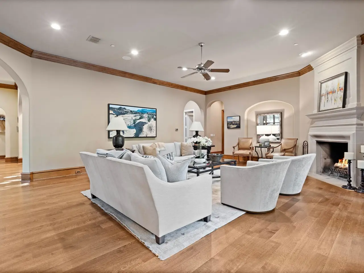 On a prominent corner in one of Dallas’s most prestigious enclaves, this 6,650 square foot architectural masterpiece delivers the pinnacle of refined living. Behind its stately facade, a dramatic foyer is flanked by formal living and dining rooms, setting an elegant stage for both grand entertaining and intimate gatherings. Beyond, the light-filled family room anchors the homes main living space, seamlessly flowing to a charming breakfast area warmed by its own fireplace and enhanced by a custom coffee bar. The gourmet kitchen is a culinary showpiece: dual sinks, a Wolf commercial-grade range, built-in refrigerator, generous island, and exceptional storage, crafted for both the serious chef and gracious host. The grandeur primary suite is a true sanctuary, offering vaulted ceilings, a spa-like bath with soaking tub and walk-in shower, and a custom-designed closet worthy of a boutique. A richly paneled executive office, serene guest suite, and sophisticated powder bath complete the first level. Upstairs, a sprawling game room with a wet bar, a fully equipped media room, and three additional bedrooms, each with an ensuite bath and a walk-in closet, offer unmatched comfort for family and guests. Outdoors, lush landscaping frames a sparkling pool and spa, while a covered patio with a fireplace and a full summer kitchen invites year-round al fresco living. A porte-cochre leads to the car court, and the garages are fit for three cars, completing this rare offering. Positioned within Preston Hollow Elementary, and minutes from Dallas’s most elite private schools, luxury shopping, fine dining, and the Dallas North Tollway, this home defines Preston Hollow living at its finest.
