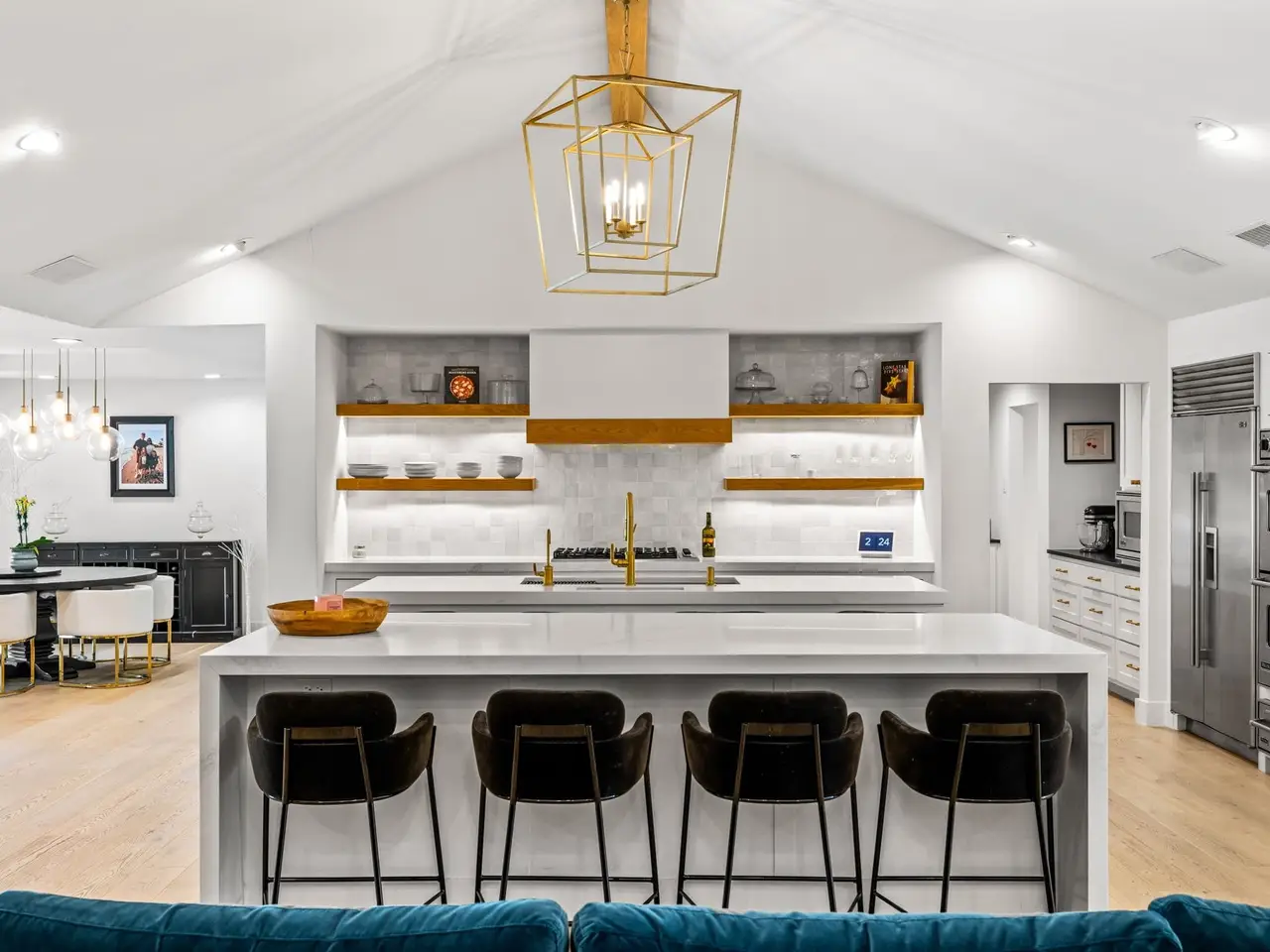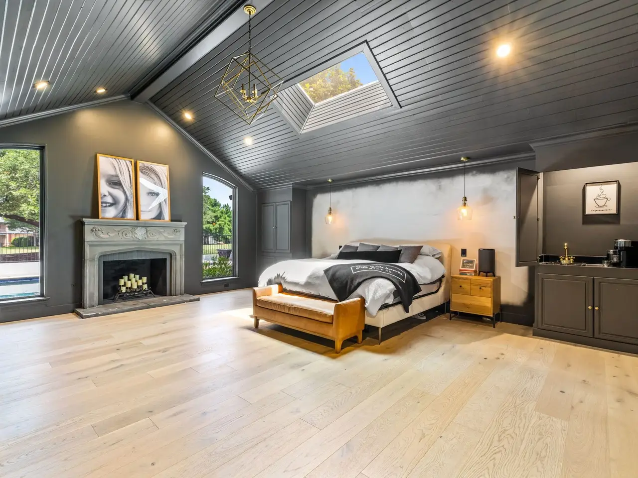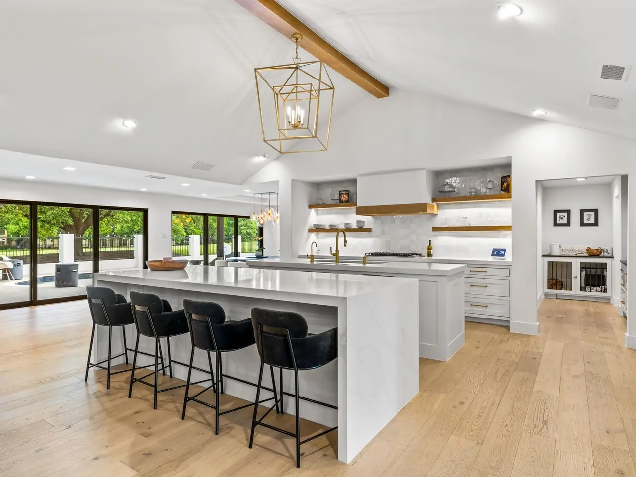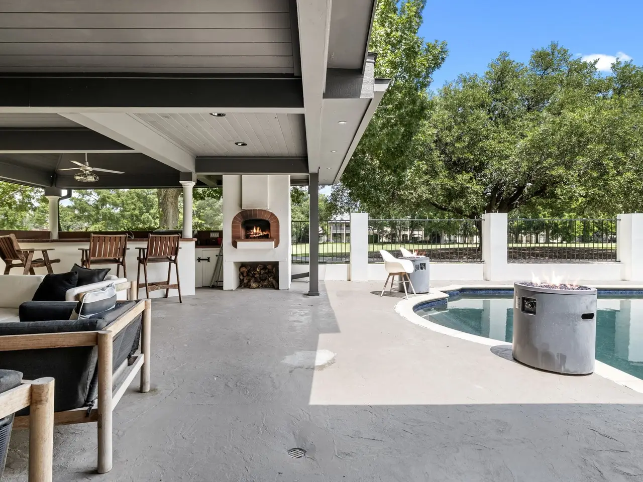 Stunning views on hole #3 of the prestigious Bent Tree Country Club course, this custom home was reimagined and gutted to the studs fusing modern luxury and functional design to offer unmatched elegance and flexibility in the heart of coveted Bent Tree. Designer finishes and a thoughtful floorplan cater to both everyday living and upscale entertaining. Soaring ceilings, large windows and slider doors flood the home with natural light. The oversized living room features a sleek entertainers bar with wine storage that overlooks the shimmering pool. The chef’s kitchen is a showstopper, featuring high-end appliances, an enormous walk-in pantry with appliance station, and double islands that offer extra seating and serving space. Retreat to the luxurious primary suite overlooking the pool and course, with its gorgeous stone fireplace and coffee station, or take the party outdoors to the expansive covered patio complete with a built-in pizza oven, full bar, and tranquil pool & spa that overlook the golf course fairway. A flexible third living area with a full bath and hidden murphy bed offers the potential for a second primary suite, while the oversized game room provides even more space to unwind or entertain. Additional large bedrooms with ensuite baths and sitting areas. Luxurious home office and additional exercise room can easily convert to additional bedrooms. Close proximity to the Tollway, high-end retail and restaurants, and top-tier private schools place this home in an ideal location for the best Dallas has to offer. This home blends timeless style with modern function - your private sanctuary on the greens awaits.