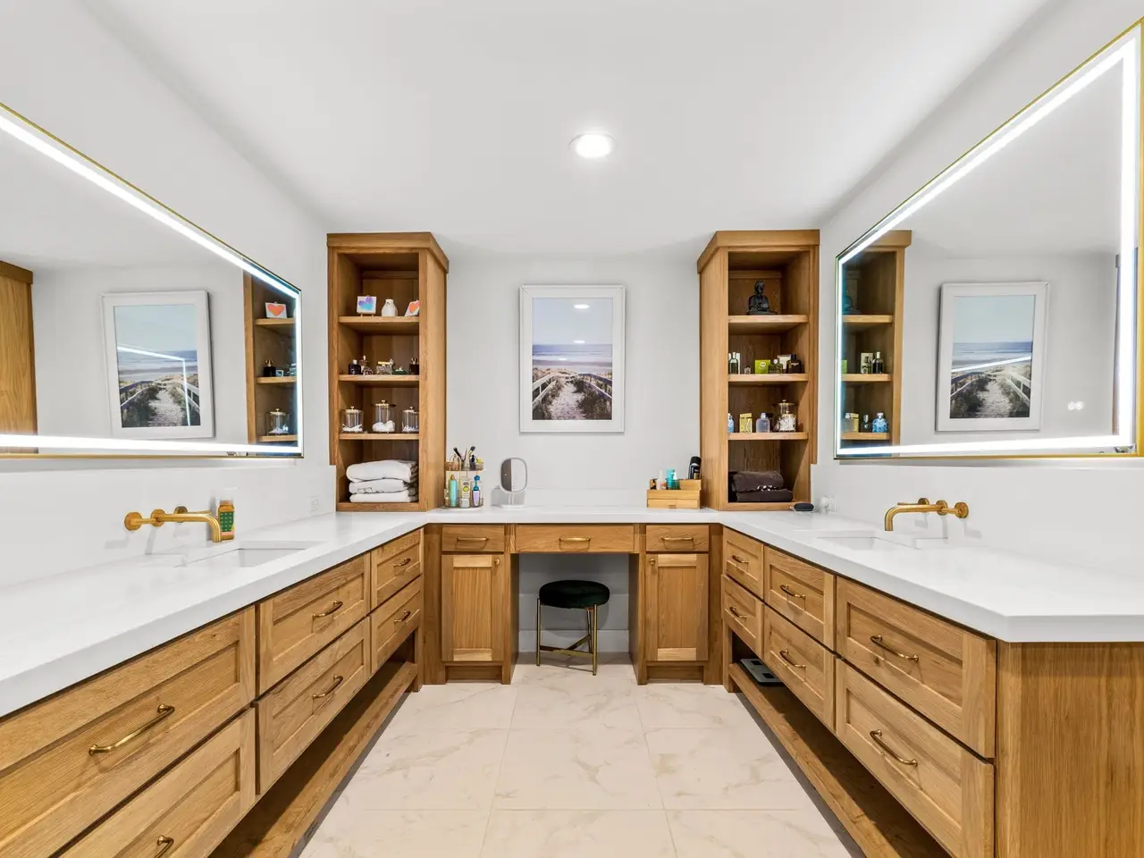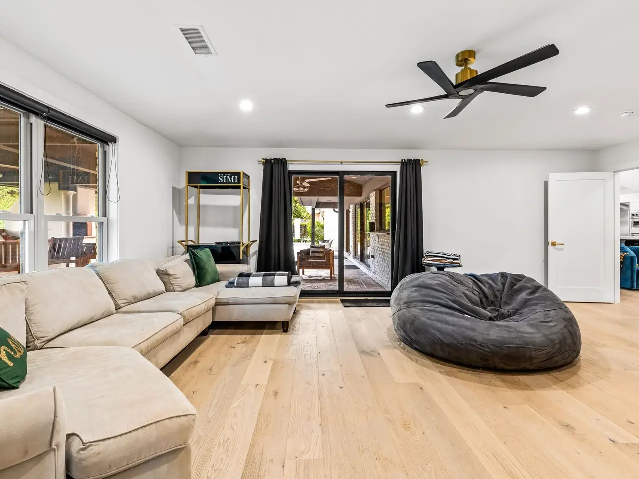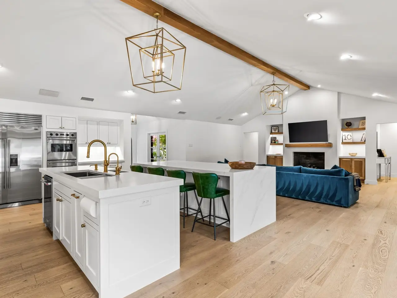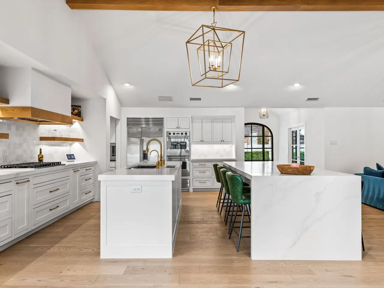 Stunning views on hole #3 of the prestigious Bent Tree Country Club course, this custom home was reimagined and gutted to the studs fusing modern luxury and functional design to offer unmatched elegance and flexibility in the heart of coveted Bent Tree. Designer finishes and a thoughtful floorplan cater to both everyday living and upscale entertaining. Soaring ceilings, large windows and slider doors flood the home with natural light. The oversized living room features a sleek entertainers bar with wine storage that overlooks the shimmering pool. The chef’s kitchen is a showstopper, featuring high-end appliances, an enormous walk-in pantry with appliance station, and double islands that offer extra seating and serving space. Retreat to the luxurious primary suite overlooking the pool and course, with its gorgeous stone fireplace and coffee station, or take the party outdoors to the expansive covered patio complete with a built-in pizza oven, full bar, and tranquil pool & spa that overlook the golf course fairway. A flexible third living area with a full bath and hidden murphy bed offers the potential for a second primary suite, while the oversized game room provides even more space to unwind or entertain. Additional large bedrooms with ensuite baths and sitting areas. Luxurious home office and additional exercise room can easily convert to additional bedrooms. Close proximity to the Tollway, high-end retail and restaurants, and top-tier private schools place this home in an ideal location for the best Dallas has to offer. This home blends timeless style with modern function - your private sanctuary on the greens awaits.