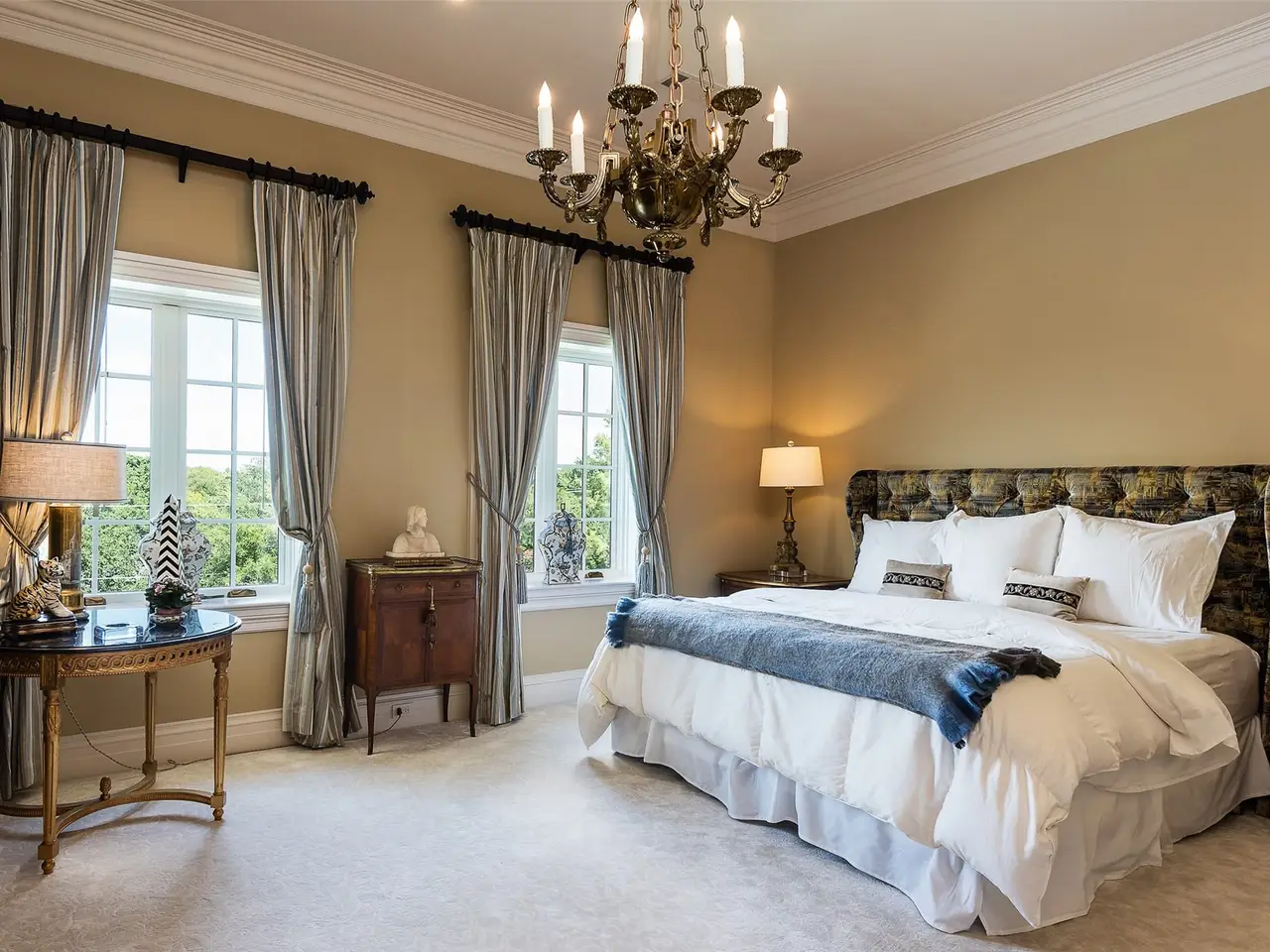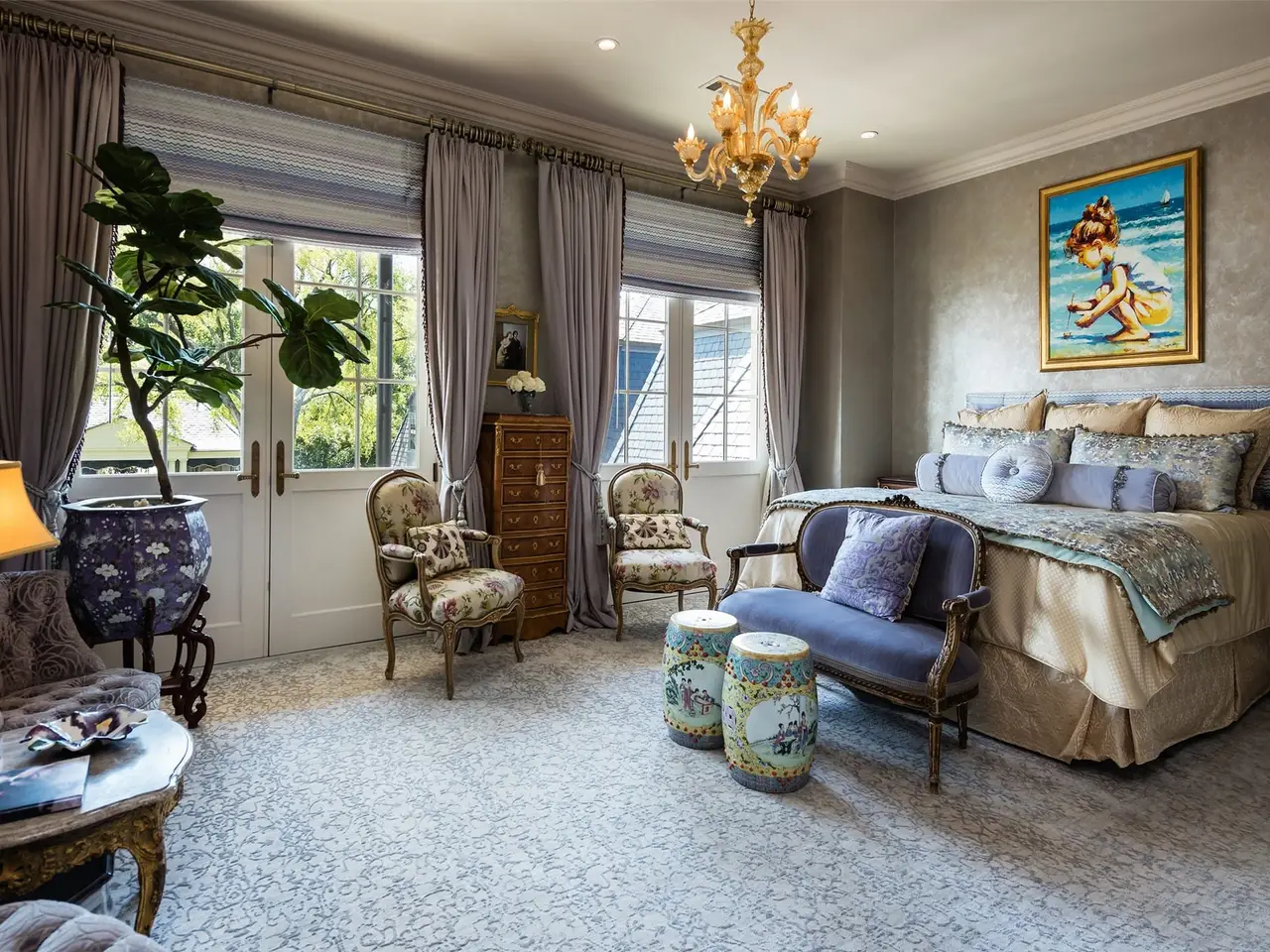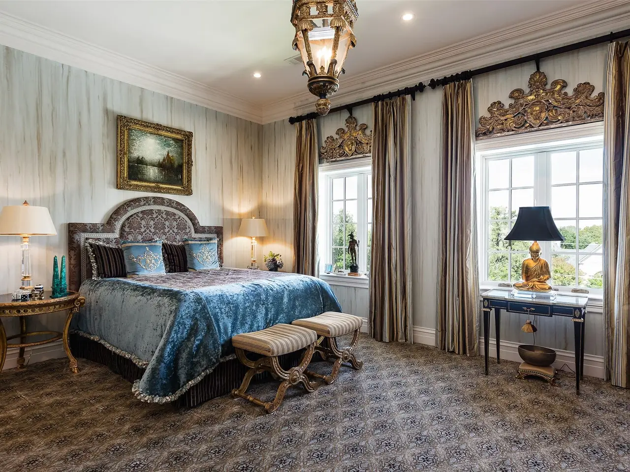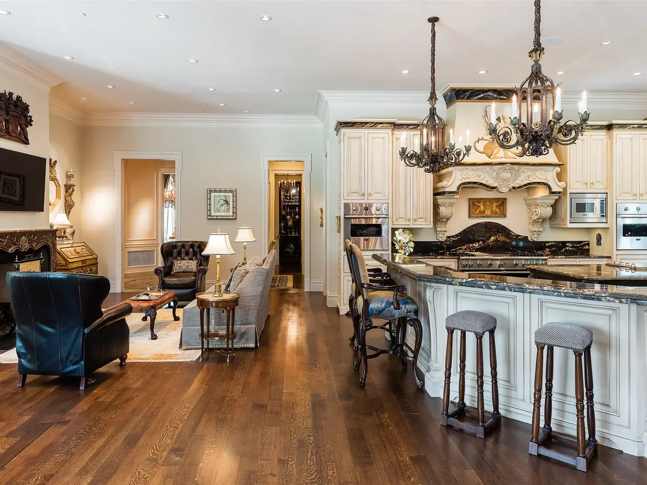 Tucked behind iron gates, this remarkable estate sits on over two acres in the heart of Old Preston Hollow. The custom 6-bedroom, 7.3-bath residence, completed in 2014, blends luxurious materials, textiles, and finishes. Spanning nearly 20,000 square feet, the French Renaissance-inspired home offers complete privacy and tranquility. A two-story domed entry features a stunning floating staircase, with marble floors in the Grand Foyer and rich mahogany moldings in the Library, Formal Study, and Media Room creating a dramatic atmosphere. The Grand Dining Room, adorned with de Gournay silk and embroidered wallpaper, offers unparalleled elegance. The gourmet kitchen includes an 8-burner Wolf range, 4 Wolf ovens, induction stovetop, and a center island, complemented by custom cabinetry. An open layout leads to a keeping room, junior dining room, and family room, which opens to a covered outdoor terrace. At the heart of the home, the Grand Hall boasts ornate plaster ceilings, two black marble fireplaces, and stunning marble medallions. The Media Room is a sports enthusiast's dream, with 5 televisions, a 120' drop-down screen, and a full wet bar. The main level Master Suite includes a private sitting room and opens to a terrace with a fireplace, pool, waterfall, and cabana. His-and-hers master baths feature marble floors, separate dressing areas, including a second story additional master showroom couture closet, and a large double shower. Upstairs, 5 additional bedrooms with luxurious baths include suites with private balconies overlooking the pool and gardens. Other highlights include a Billiards Room, Game Room, Physiotherapy Room with Steam Room, and Home Gym, all accessible by elevator. For car enthusiasts, the estate offers 3 garages with 4 car lifts, providing space for 10 luxury vehicles. The grounds feature a saltwater pool, cabana, walking paths and gardens, creating a serene resort-like atmosphere.
