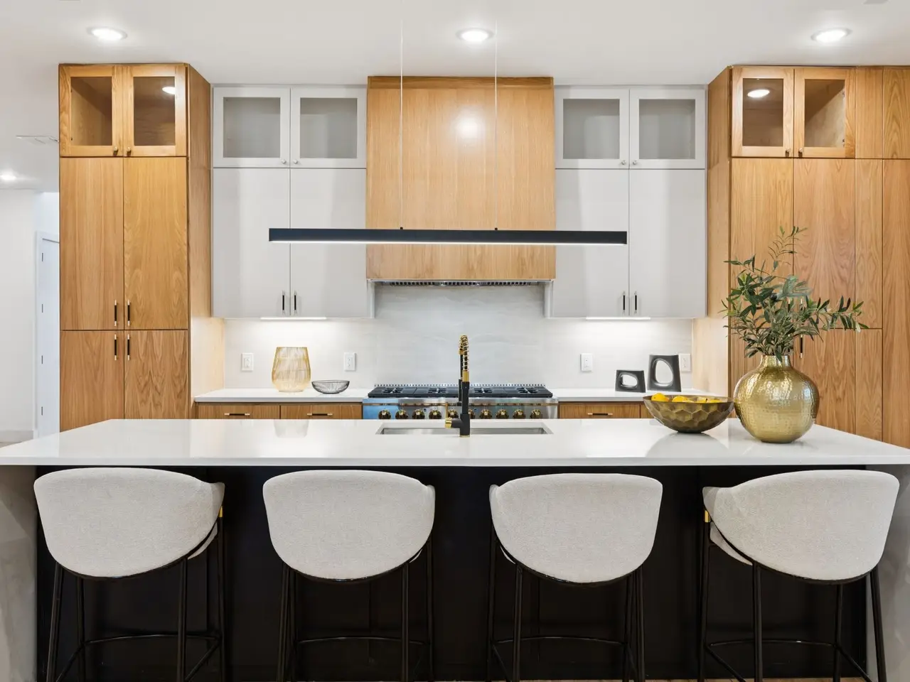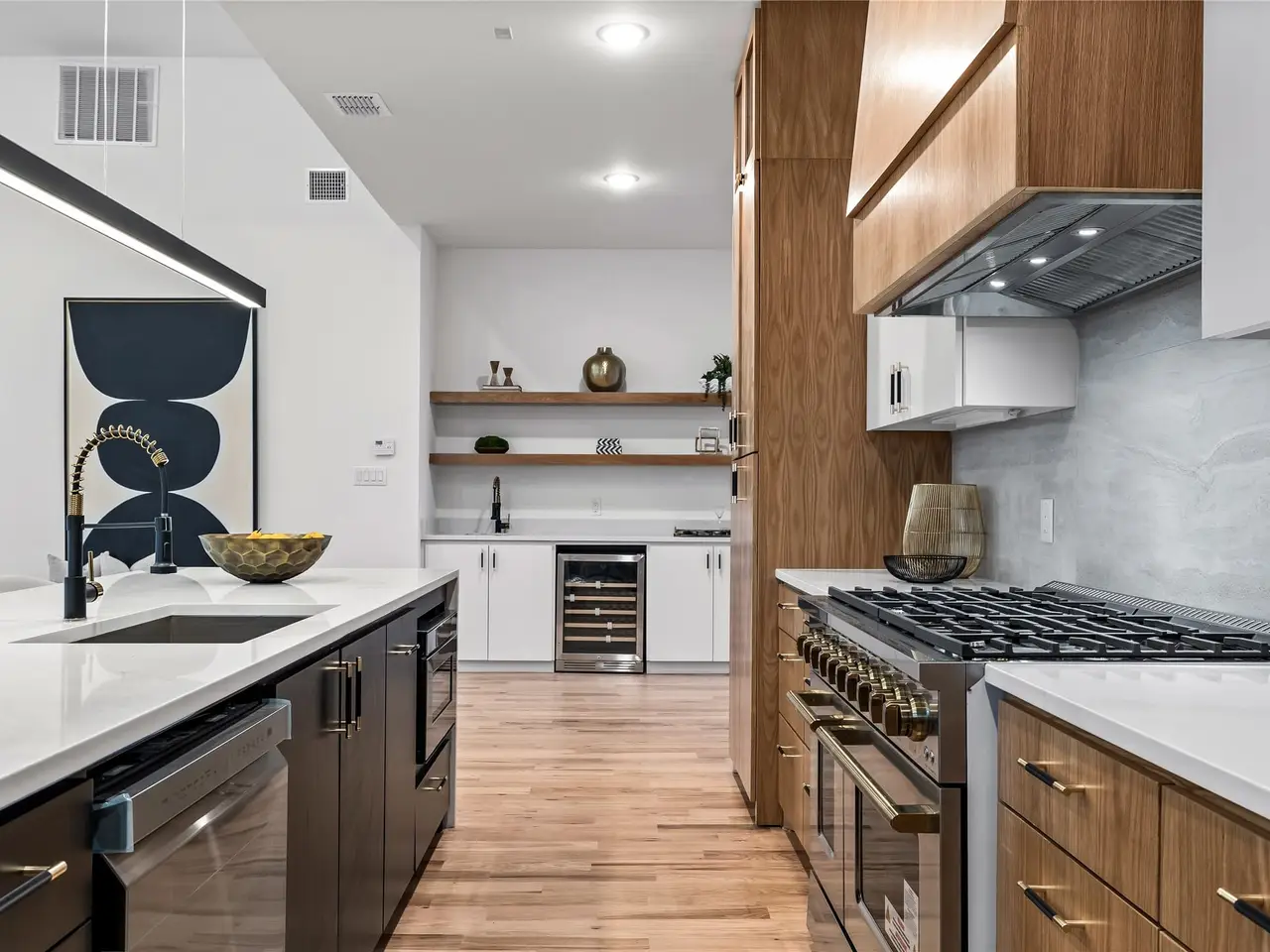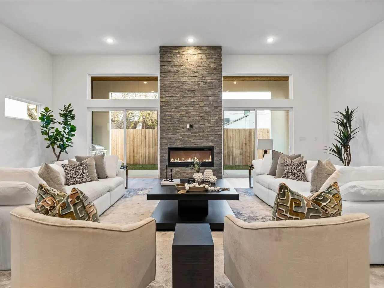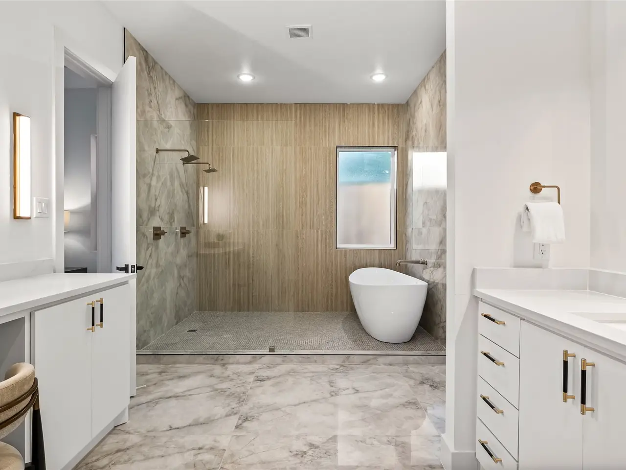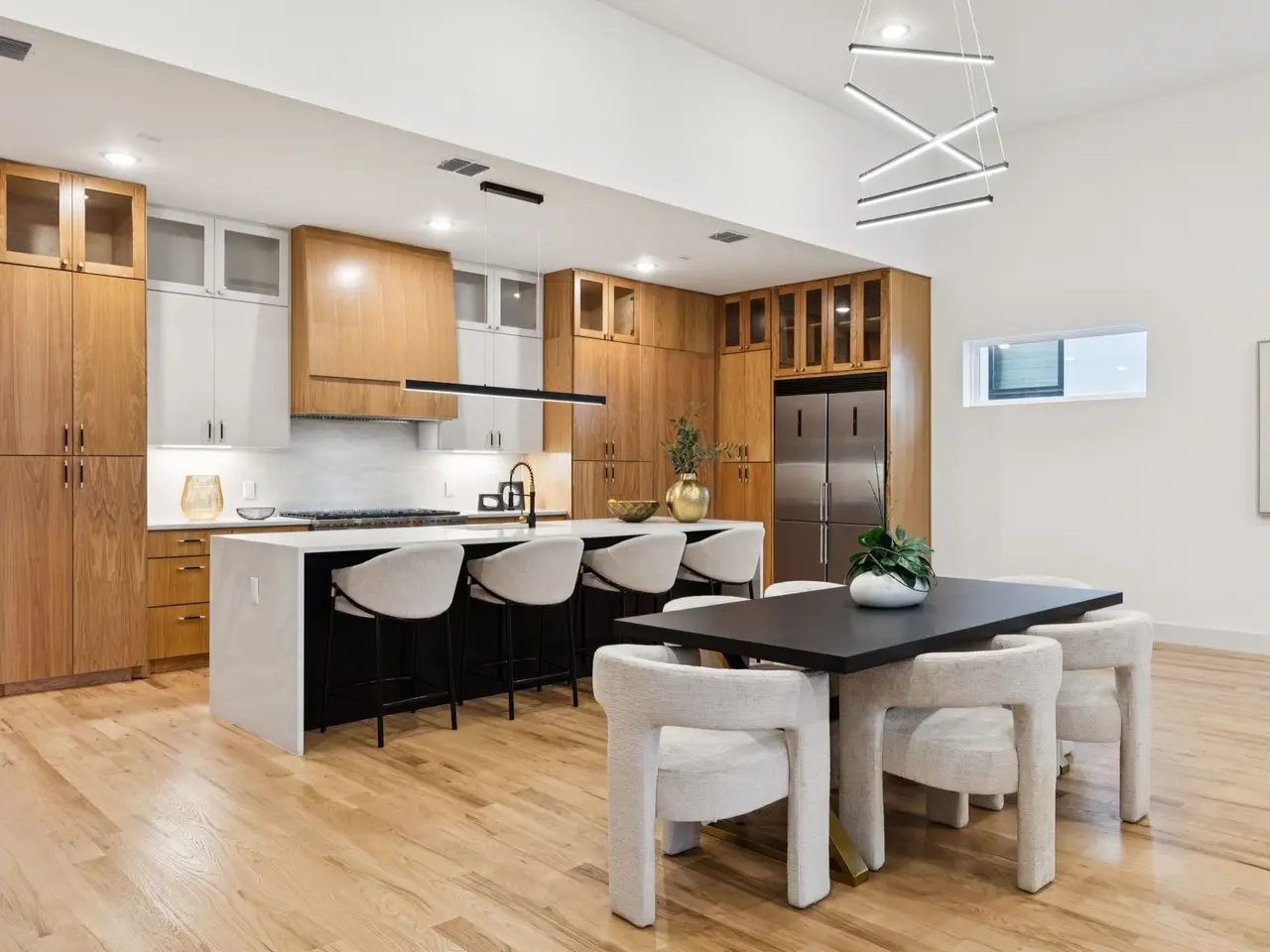 Step into your dream home in Bluffview a stunning new construction residence designed by renowned architect Adriana Meyer of JADE. This custom-built modern masterpiece seamlessly blends natural materials, earth tones, and light-filled spaces for a warm yet contemporary feel.With 5 bedrooms, 4,500+ sq ft, a dedicated home office, and expansive indoor-outdoor living, this home delivers both style and function for modern living. Architect-Designed Modern Home in the heart of Bluffview. Soaring vaulted ceilings, custom designer lighting, and hardwood floors throughout Walls of glass create a seamless catch-and-release flow between interior and outdoor living spaces. Open-concept living room with fireplace, vaulted ceilings & built-in coffee bar.Chefs dream gourmet kitchen: stone waterfall island, premium wood-grade cabinetry, built-in fridge, hidden pantry, gas range, and custom wine barSpacious game room upstairs connects to 4 bedrooms. Front bedroom opens to a private covered patio with panoramic Bluffview views.Luxurious downstairs primary suite with spa-like en suite: double vanities, freestanding tub, glass shower, private water closet, and massive walk-in closet. Outdoor living at its finest with built-in kitchen, custom tile patio, and generous wraparound backyardFunctional spaces include: large utility room, mudroom, and 2-car garage. Located just minutes from Inwood Village, Preston Hollow Village, Love Field, and the all-new Midway Manor Park with walking and bike trails. Experience the best of North Dallas living with upscale shopping, restaurants, and outdoor recreation right outside your door.