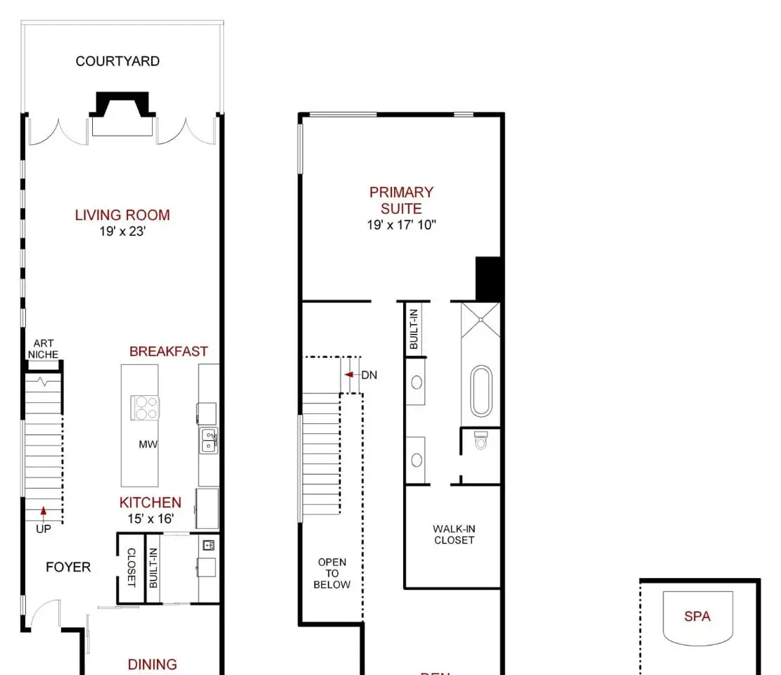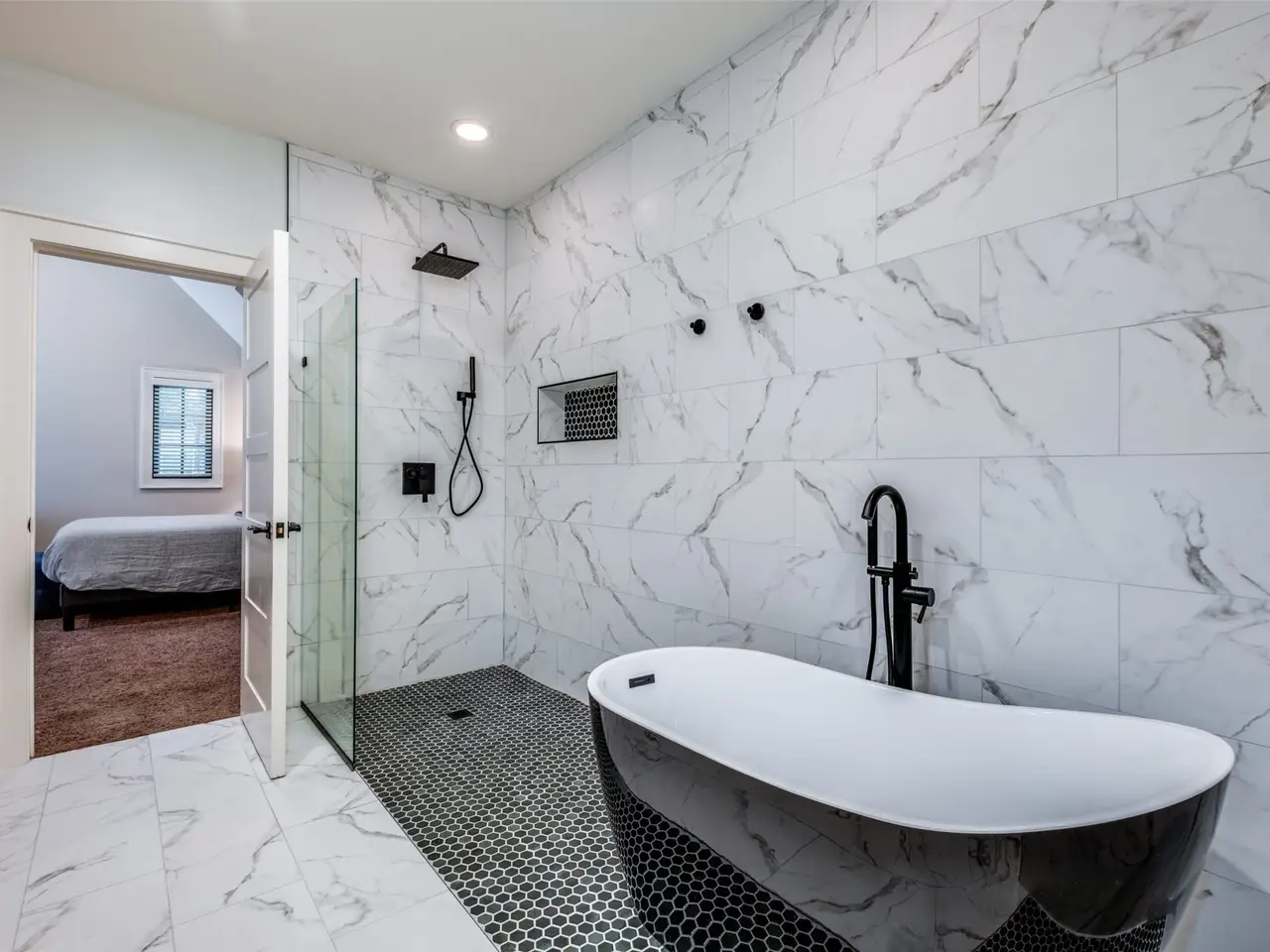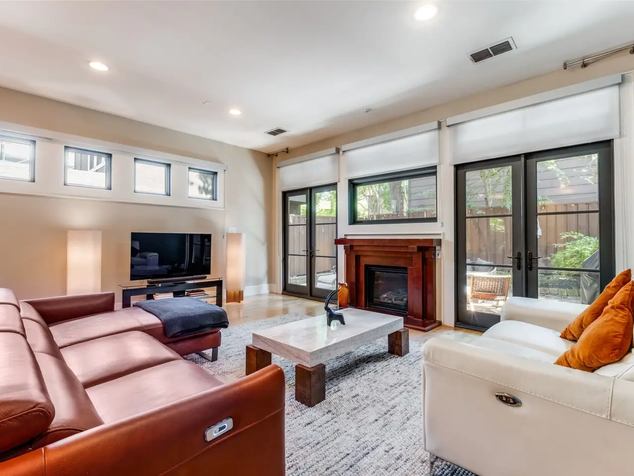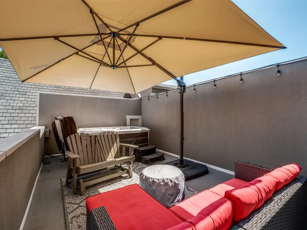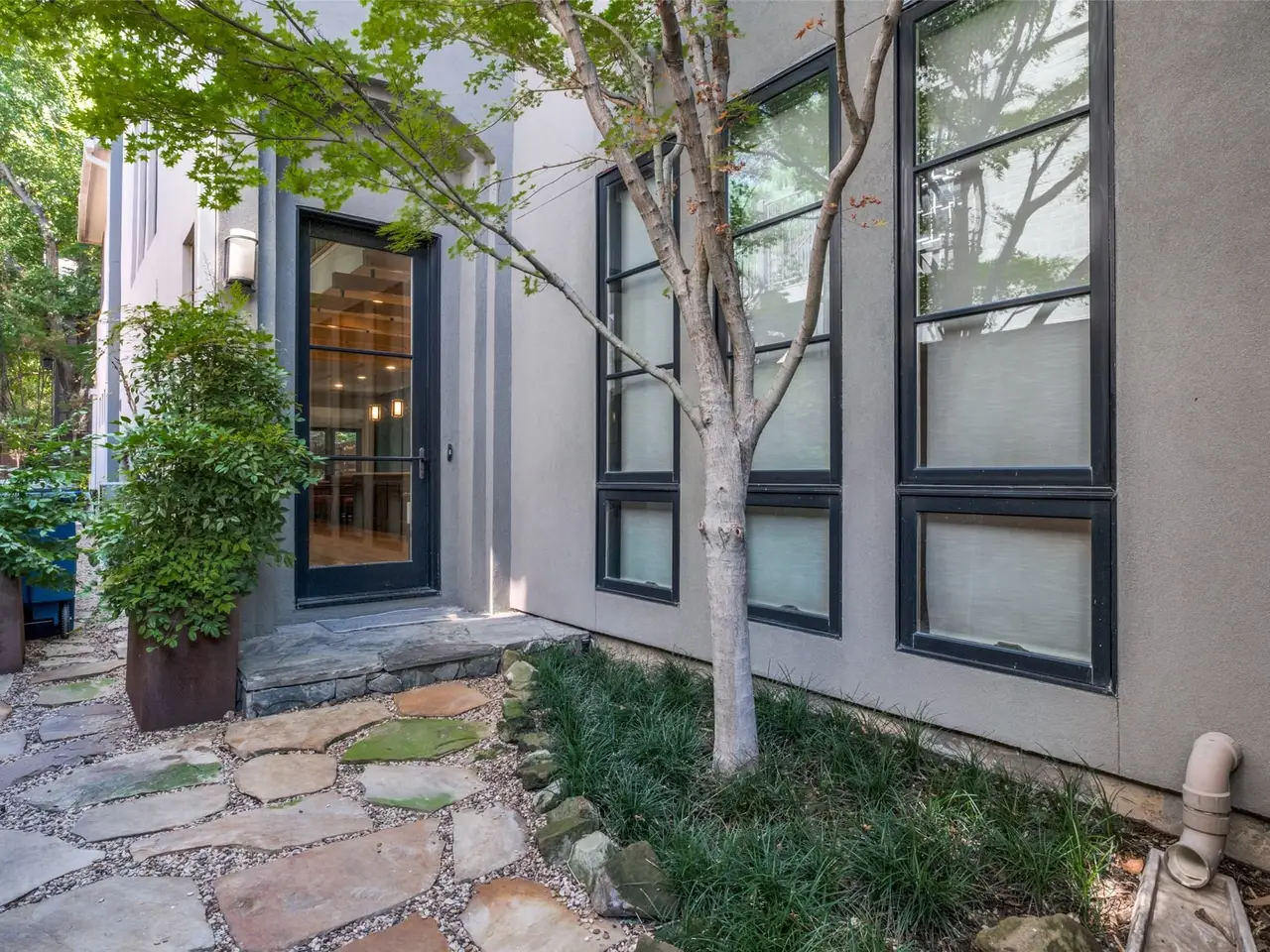 Incredible location meets modern luxury in Northern Hills! Just steps from Turtle Creek, Old Highland Park, Uptown, and The Katy Trail, this sleek custom half-duplex combines style, comfort, and convenience. A gated courtyard entry welcomes you into bright and open first-floor living and dining spaces with soaring 12-foot ceilings. The chef's kitchen boasts top-of-the-line appliances, a built-in 48-inch refrigerator, and a butler's pantry with a wine fridge - perfect for entertaining. Enjoy cozy evenings by the fireplace or relax on the spacious outdoor patio. Upstairs, the impressive primary suite features vaulted ceilings, a spa-worthy marble bath and a generous living area. A private guest suite with an en-suite bath completes the second floor. The third floor has a bedroom-office with a wet bar, full bath, and an expansive rooftop deck with a hot tub which showcases the best of Dallas living. Own a custom modern home in a premier location.