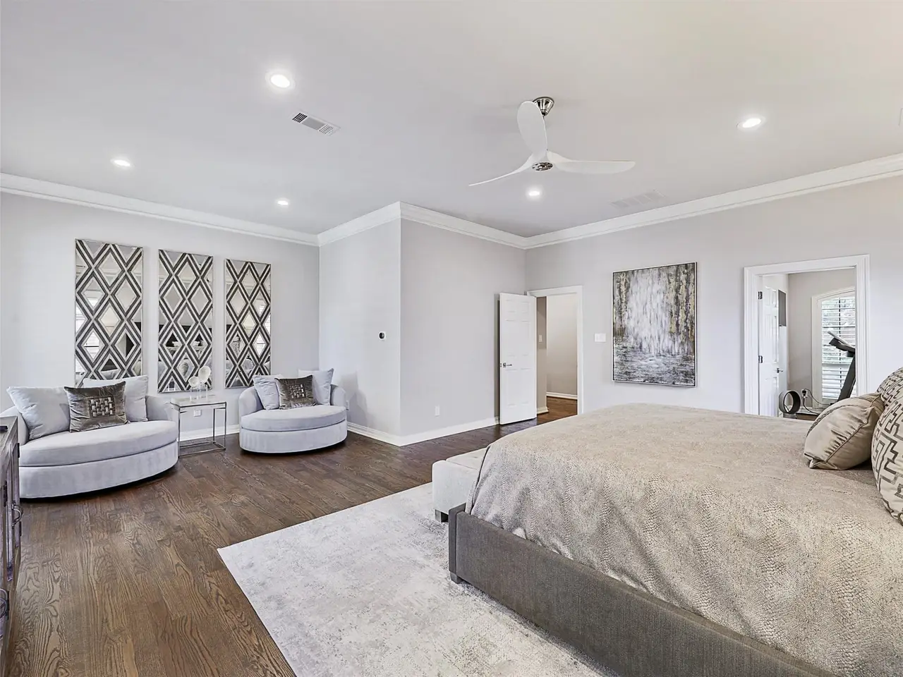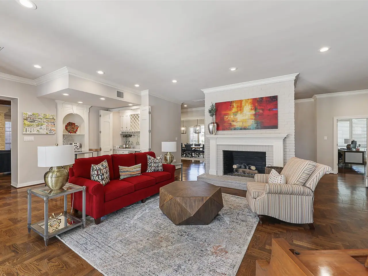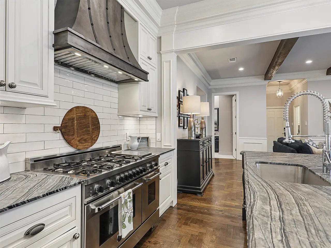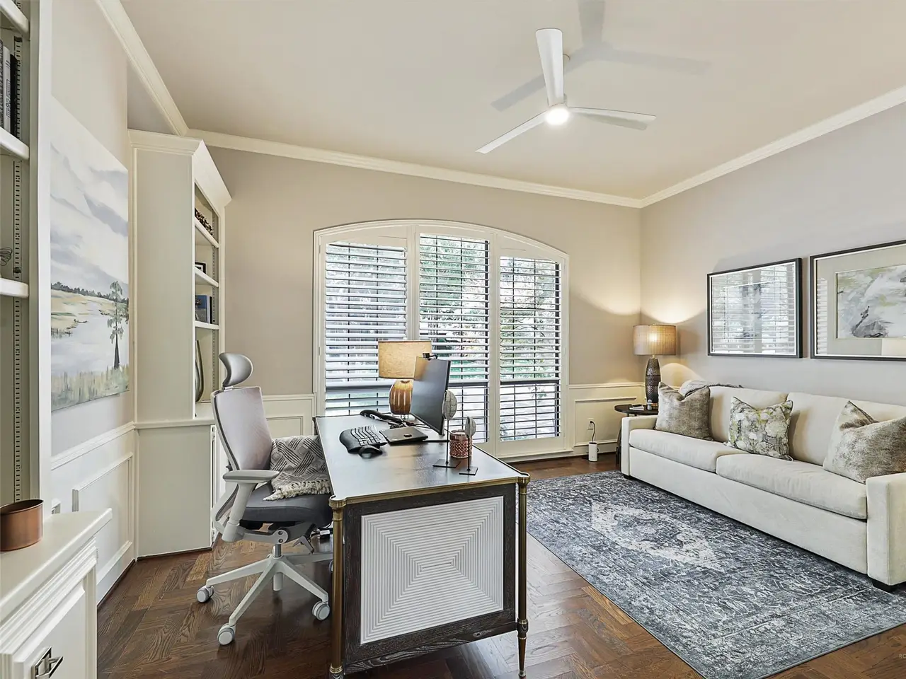 Step into timeless elegance in the heart of Bent Tree North 2. Nestled on a beautifully landscaped lot, this exquisite custom home seamlessly blends modern updates with classic charm. Rich hardwood floors and a soft, inviting color palette carry you through the first floor, where the formal dining room delights with updated lighting and sunlit plantation-shuttered windows perfect for intimate dinners or lively gatherings. The formal living room is the epitome of grace, anchored by a stately brick fireplace and framed by expansive windows. Entertain in style with a built-in wet bar, complete with wine fridge and ice maker.The family room offers rustic charm with a stone fireplace and wood-beamed ceiling, creating the perfect setting for cozy evenings. The gourmet kitchen is designed for culinary inspiration, features bespoke cabinetry, leathered quartzite countertops, a Bertazzoni gas range, Subzero refrigerator-freezer, stainless steel dw, and a walk-in pantry. Adjoining breakfast area boasts a well-appointed butlers pantry with a stylish coffee bar nook. Generous downstairs study offers built-ins for books, and can easily double as a welcoming guest suite with a full, updated bathroom just steps away.Oversized primary suite is a tranquil retreat, with a peaceful sitting area bathed in natural light and a private bonus room ideal for a home gym or quiet sanctuary. Luxurious en suite bathroom is a spa-like haven with dual vanities, sleek Carrera marble, a frameless glass shower, a deep soaking tub, and two separate water closets and custom walk-in closets. Upstairs, discover three spacious bedrooms, each thoughtfully designed with plush carpeting, soft tones, and plantation shutters. Two fully updated bathrooms with designer finishes ensure comfort and style for family or guests. Outside, your private backyard oasis awaits. A sparkling pool and bubbling spa are nestled in lush, tranquil landscapingan idyllic escape for morning coffee or sunset cocktails.