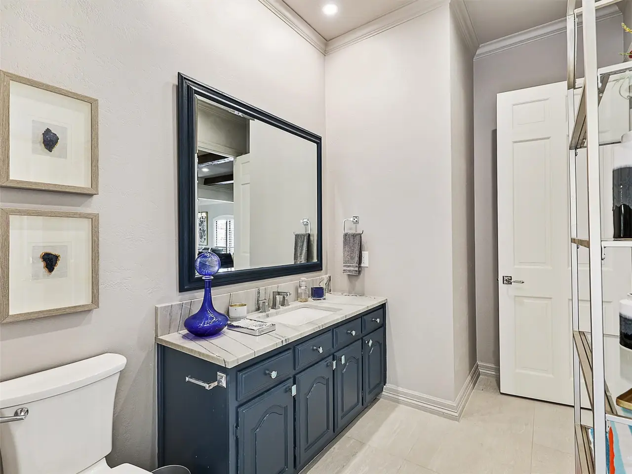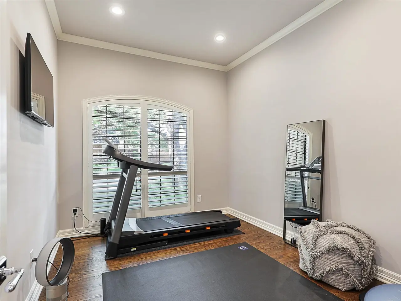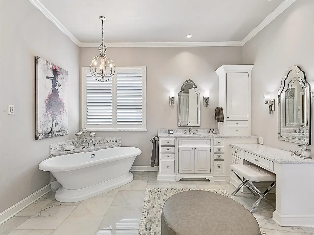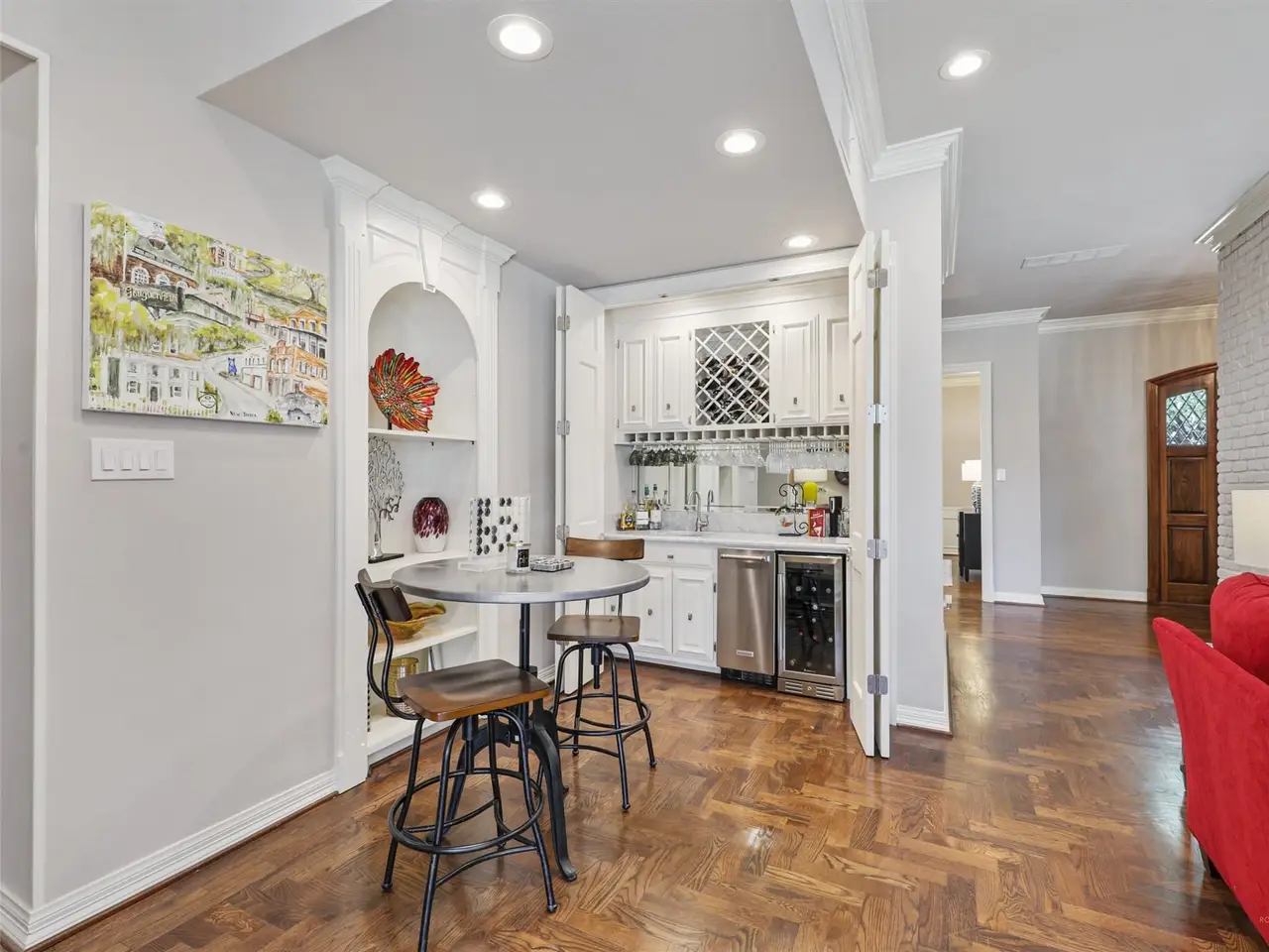 Step into timeless elegance in the heart of Bent Tree North 2. Nestled on a beautifully landscaped lot, this exquisite custom home seamlessly blends modern updates with classic charm. Rich hardwood floors and a soft, inviting color palette carry you through the first floor, where the formal dining room delights with updated lighting and sunlit plantation-shuttered windows perfect for intimate dinners or lively gatherings. The formal living room is the epitome of grace, anchored by a stately brick fireplace and framed by expansive windows. Entertain in style with a built-in wet bar, complete with wine fridge and ice maker.The family room offers rustic charm with a stone fireplace and wood-beamed ceiling, creating the perfect setting for cozy evenings. The gourmet kitchen is designed for culinary inspiration, features bespoke cabinetry, leathered quartzite countertops, a Bertazzoni gas range, Subzero refrigerator-freezer, stainless steel dw, and a walk-in pantry. Adjoining breakfast area boasts a well-appointed butlers pantry with a stylish coffee bar nook. Generous downstairs study offers built-ins for books, and can easily double as a welcoming guest suite with a full, updated bathroom just steps away.Oversized primary suite is a tranquil retreat, with a peaceful sitting area bathed in natural light and a private bonus room ideal for a home gym or quiet sanctuary. Luxurious en suite bathroom is a spa-like haven with dual vanities, sleek Carrera marble, a frameless glass shower, a deep soaking tub, and two separate water closets and custom walk-in closets. Upstairs, discover three spacious bedrooms, each thoughtfully designed with plush carpeting, soft tones, and plantation shutters. Two fully updated bathrooms with designer finishes ensure comfort and style for family or guests. Outside, your private backyard oasis awaits. A sparkling pool and bubbling spa are nestled in lush, tranquil landscapingan idyllic escape for morning coffee or sunset cocktails.