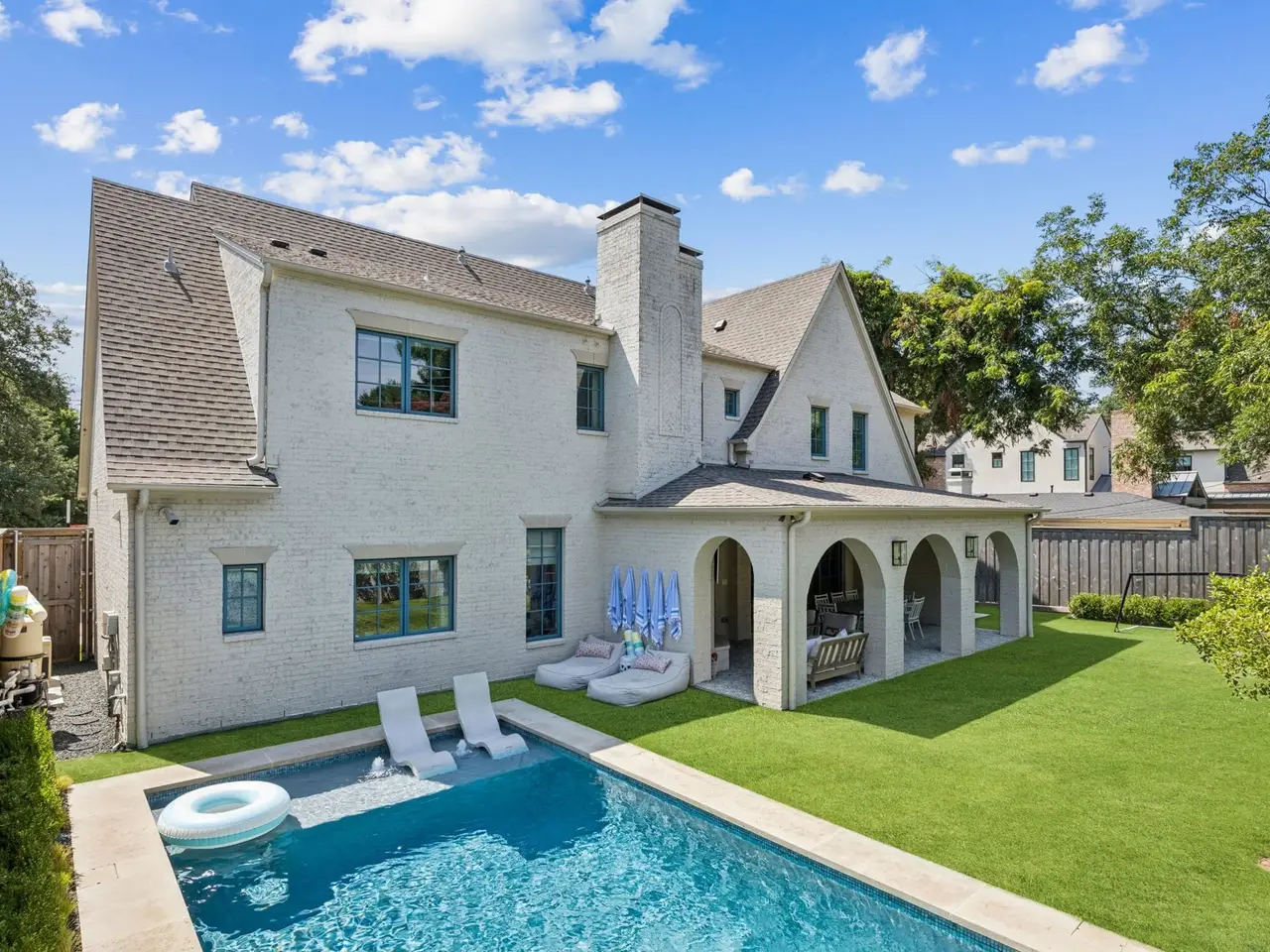 Perched on a gentle hill in the coveted White Rock Valley of Lake Highlands, this stately five bedroom, four full and two half-bath home built in 2020 is simply perfection. Designed with discerning taste and exceptional craftsmanship, every detail reflects luxury and thoughtful design. Inside, you'll find reclaimed pine floors that exude warmth and charm, complemented by designer finishes at every turn. The butler’s pantry and library are elevated with exquisite Armac Martin hardware, while Thibaut and York wallpapers add layers of texture and sophistication throughout the home. The playful charm of Katie Kime’s Dallas Toile wallpaper creates a whimsical statement in the spacious playroom. The gourmet kitchen and laundry room are both outfitted with stunning Cle Zellige tile, adding handmade character and artisanal elegance. Step outside to a true entertainers dream: imported Spanish tile sets the stage for an inviting outdoor dining area, a sparkling pool, and a lush backyard complete with a batting cage, ideal for sports enthusiasts of all ages. This is more than a home; it’s a lifestyle, where high design meets everyday comfort, right in the heart of Lake Highlands.