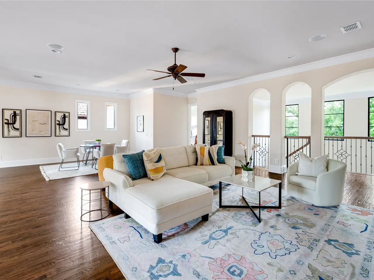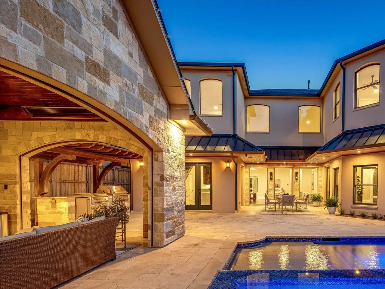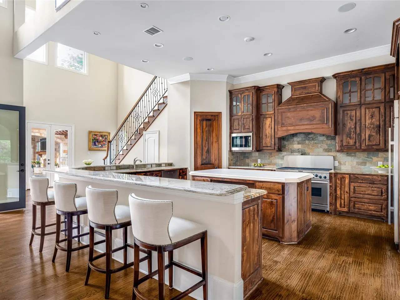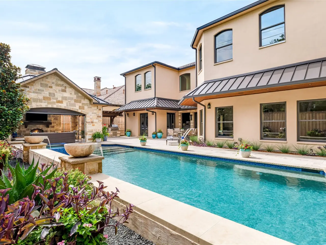 Wow, describes this stunningly re-imagined transitional modern facade by esteemed builder, Rosewood Custom Builders in the heart of Preston Hollow. Experience luxury living at its finest in the meticulously maintained 6980 sf residence featuring 4 spacious en-suite bedrooms, including a primary suite on the main floor, and 2 half baths. The open floor plan seamlessly incorporates the stately dining room, butler's area, kitchen and living areas making the ultimate expression of modern living and entertaining. Step into grandeur through the double steel glass doors, where you are greeted by a sweeping staircase that descends to a dramatic foyer bathed in natural light and 28' ft soaring ceilings. A dedicated home office, adjacent to the primary suite, provides a tranquil space for work, while multiple rooms and flex spaces can be customized to meet your unique needs. Abundant maple cabinets and exquisite countertops set the stage for culinary creativity featuring luxury stainless steel appliances, a remarkable center island with a marble surface, pot filler and two walk-in pantries. The gourmet kitchen seamlessly flows into an open living area and breakfast room, graced by a wall of windows, scraped hardwood floors and soaring ceilings, connecting the indoors to the luxurious outdoor living space. Experience luxury in the stone facade pool house, featuring a gas fireplace, vaulted ceilings with wood paneling, built-in heaters and motorized shades. A pergola summer kitchen with expansive terraces invites al fresco dining and entertaining overlooking lush landscaped gardens and a sparkling 40' pool with tanning ledge and gas heated spa. Retreat to the spacious primary suite with en suite bath, expansive walk in shower, soaking tub, dual vanities, large walk in close with built-ins, and a serene view overlooking the pool. Quick access to the Dallas North Tollway, Love Field, Dallas' private school top notch healthcare facilities, fine dinging and shopping. Welcome home.