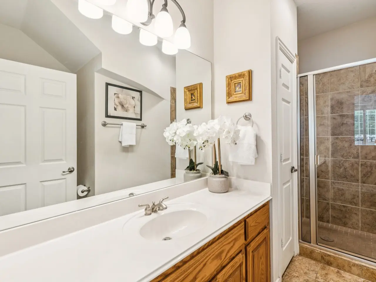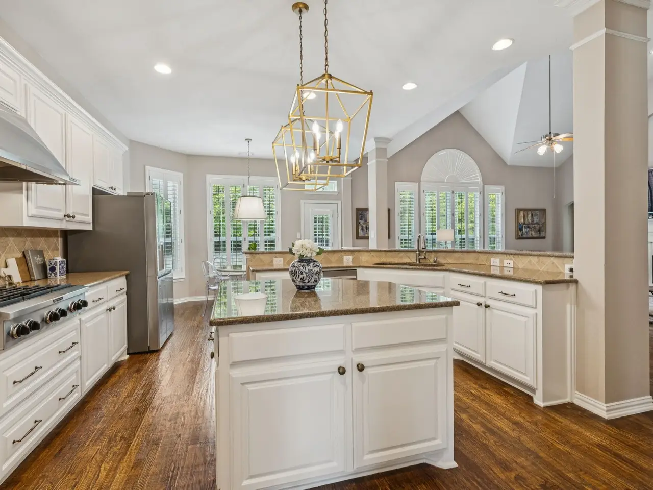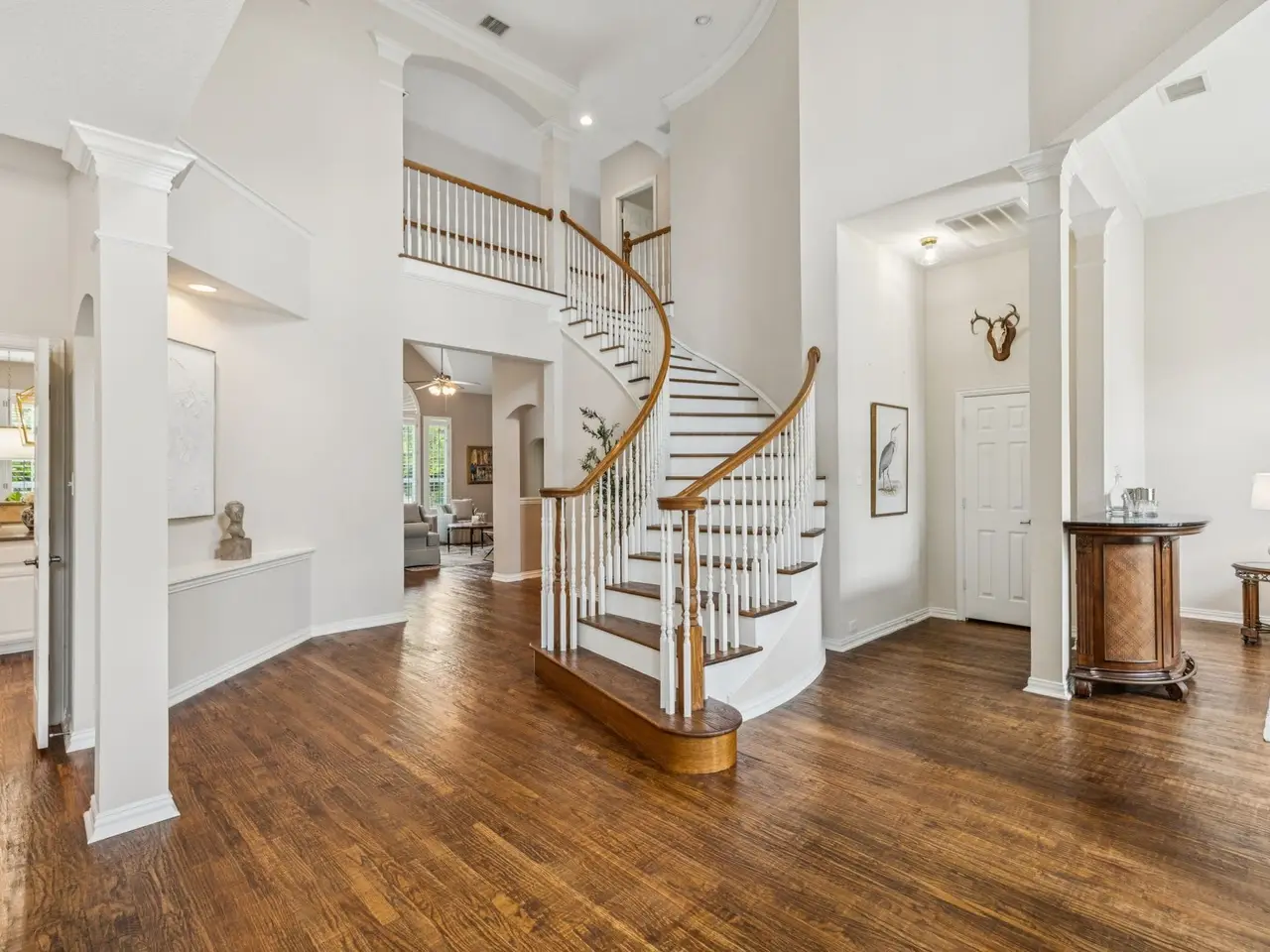 Set on a spacious corner lot in Lake Highlands coveted Town Creek, this five-bedroom home offers 4,458 sq. ft. of light-filled living with tall ceilings and expansive windows. Inside, you'll find a gracious formal living room, a downstairs family room that flows off the kitchen, and an upstairs game room perfect for play or movie nights. The chef's kitchen features professional-grade appliances, double ovens, and a generous pantry, all open to the main living spaces for easy entertaining. The downstairs primary suite has been completely updated with a spa-like bathroom featuring a separate tub and shower and a large walk-in closet. Additional bedrooms offer flexibility for family, guests, and a sixth room makes the perfect tucked away office. With six bathrooms, a sparkling pool, large yard and a three-car garage, this home blends scale, style, and function in one of Lake Highlands most desirable neighborhoods.