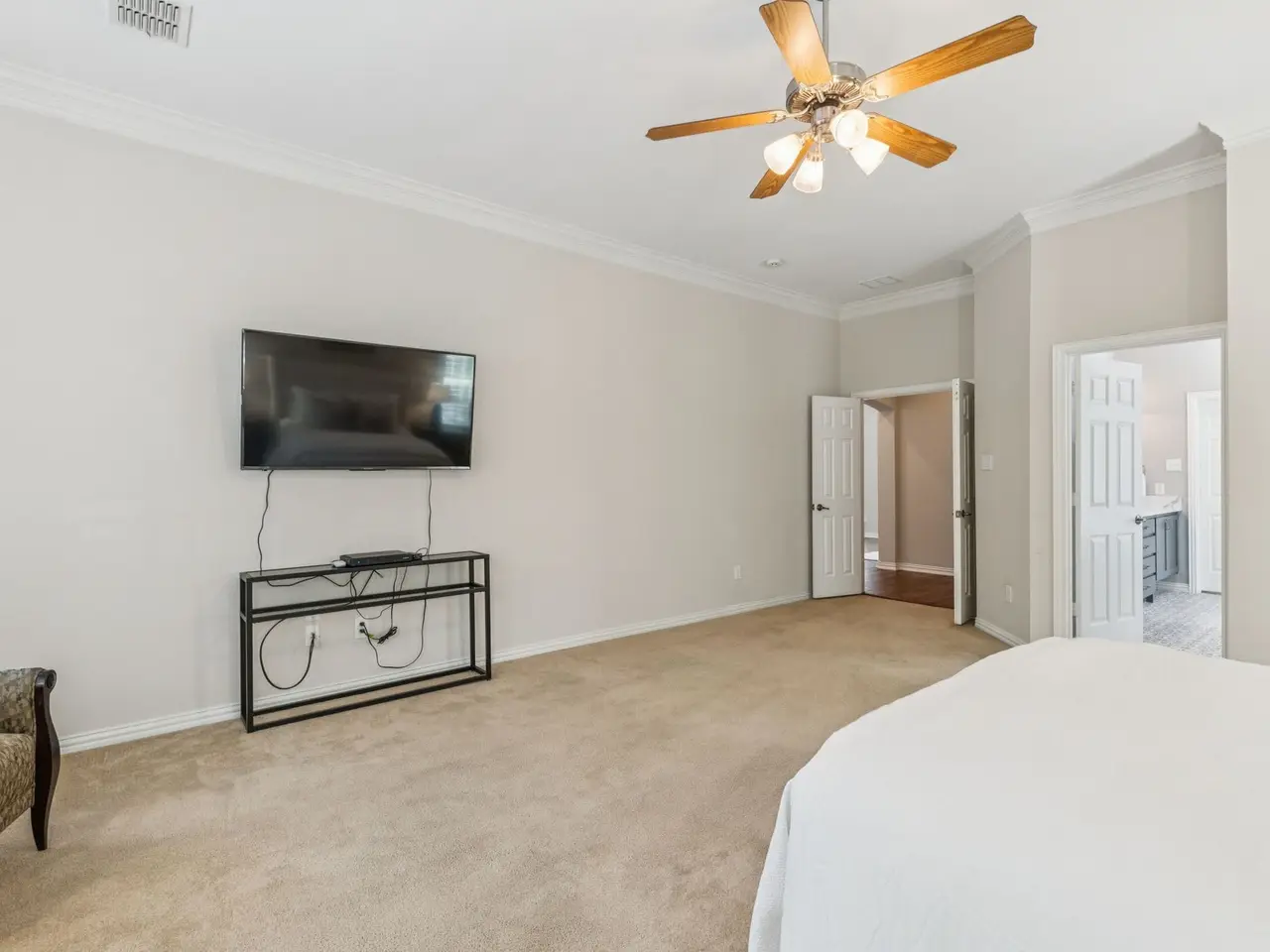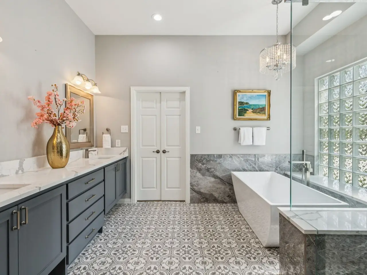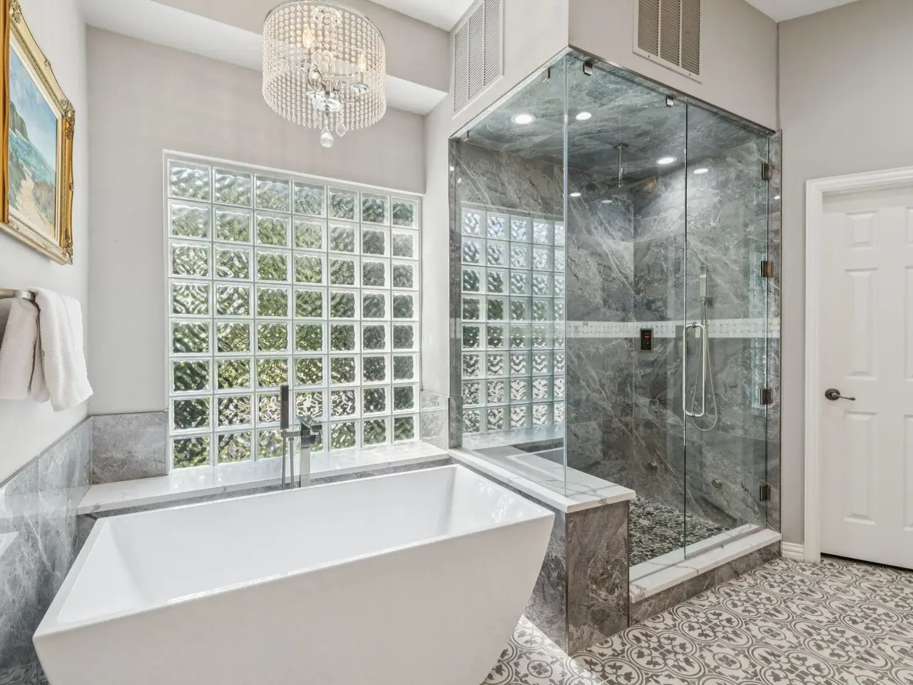 Set on a spacious corner lot in Lake Highlands coveted Town Creek, this five-bedroom home offers 4,458 sq. ft. of light-filled living with tall ceilings and expansive windows. Inside, you'll find a gracious formal living room, a downstairs family room that flows off the kitchen, and an upstairs game room perfect for play or movie nights. The chef's kitchen features professional-grade appliances, double ovens, and a generous pantry, all open to the main living spaces for easy entertaining. The downstairs primary suite has been completely updated with a spa-like bathroom featuring a separate tub and shower and a large walk-in closet. Additional bedrooms offer flexibility for family, guests, and a sixth room makes the perfect tucked away office. With six bathrooms, a sparkling pool, large yard and a three-car garage, this home blends scale, style, and function in one of Lake Highlands most desirable neighborhoods.
