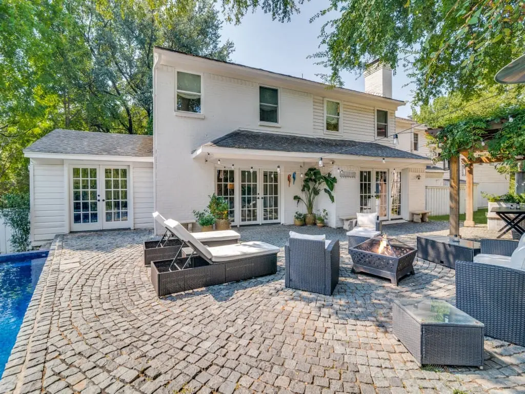 Situated in coveted Lakewood proper and just a short walk to Lakewood Elementary, this five bedroom, four full and one half bath home blends timeless charm with modern updates. The white brick facade, front balcony, and inviting porch set the stage for 4,016 sq ft of thoughtfully designed living. Inside, herringbone hardwoods, abundant natural light, and designer finishes flow through multiple living spaces with fireplaces and French doors to the exterior. The chef’s kitchen features quartz countertops, farmhouse sink, stainless steel appliances, and a coffee bar station that are perfect for entertaining. A dedicated home office overlooks the pool and opens to one of the two main living areas. The upstairs primary suite is a serene retreat with a sitting area, spa-like bath featuring a soaking tub, frameless glass shower, and dual vanities. The secondary bedrooms offer ensuite closets and updated baths. An additional private loft suite with its own staircase and full bath provides an ideal guest retreat, playroom, or flex space. The backyard delivers resort-style living with a sparkling pool, water features, pergola with built-in seating, and expansive stone patio surrounded by mature trees. With character, space, and a prime Lakewood location, this property is a rare opportunity just steps from White Rock Lake, shopping, dining, and one of Dallas most sought-after schools.