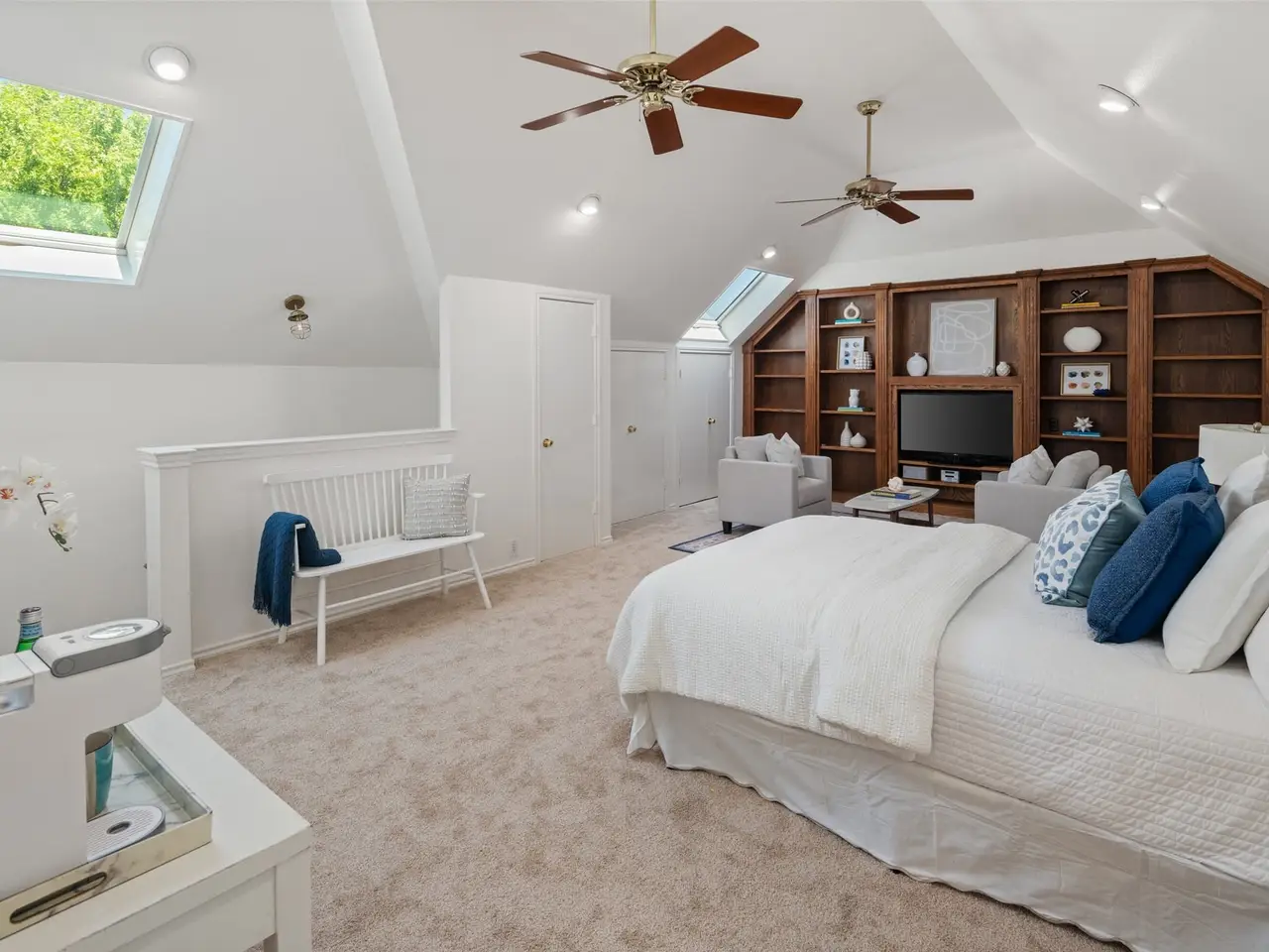 Welcome to 7215 Abrams Place Court, a stunning Lake Highlands home where timeless elegance meets everyday comfort. Nestled on a quiet cul-de-sac backing to a lush greenbelt, this beautifully maintained residence offers backyard privacy and views unlike any other setting in Lake Highlands - and all within the highly acclaimed Merriman Park Elementary zone. A two-story entry welcomes you with soaring ceilings and natural light, leading to formal living and dining areas, plus two additional living spaces and a wet bar, perfect for entertaining. The eat-in kitchen features a large island, abundant cabinetry, walk-in pantry, and built-in desk, with doors to a private grassy area gated from the pool and spa. A utility room with fridge, sink, and built-ins connects to the kitchen, alongside a two-car garage for convenience. Upstairs, the primary suite includes dual vanities, a soaking tub beneath a skylight, separate shower, and two walk-in closets. Two secondary bedrooms share a Jack-and-Jill bath, while a fourth room near the primary suite serves as a study or optional nursery. The third floor offers a very large bonus suite (254 x 158) with fresh paint, closets, and full bath an ideal, private guest suite with added flexibility as a play or game room. Two half baths, including one connected to the pool area, add convenience for family and guests. French doors from the main living room open to a covered patio overlooking the pool, spa, and greenbelt, creating seamless indoor-outdoor entertaining flow. High ceilings, abundant light, and thoughtful updates throughout make this home a perfect balance of comfort, style, and functionality, just minutes from White Rock Lake, parks, and trails.