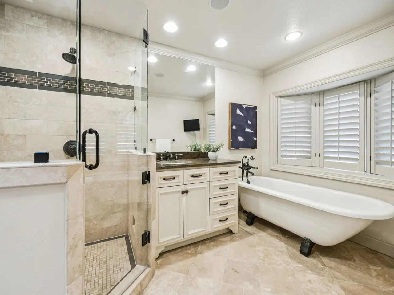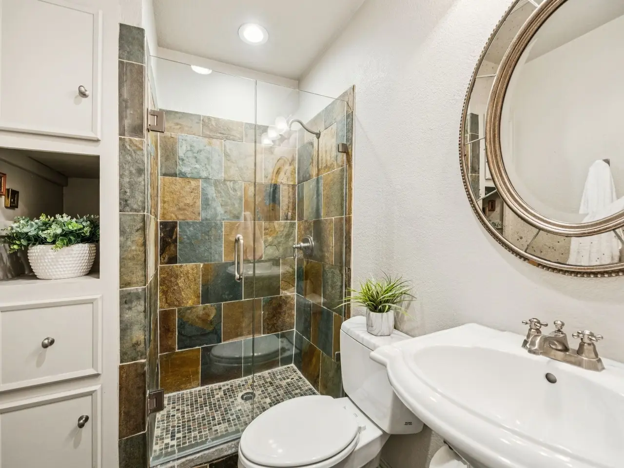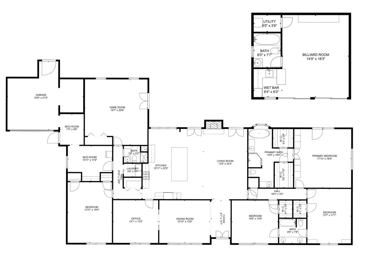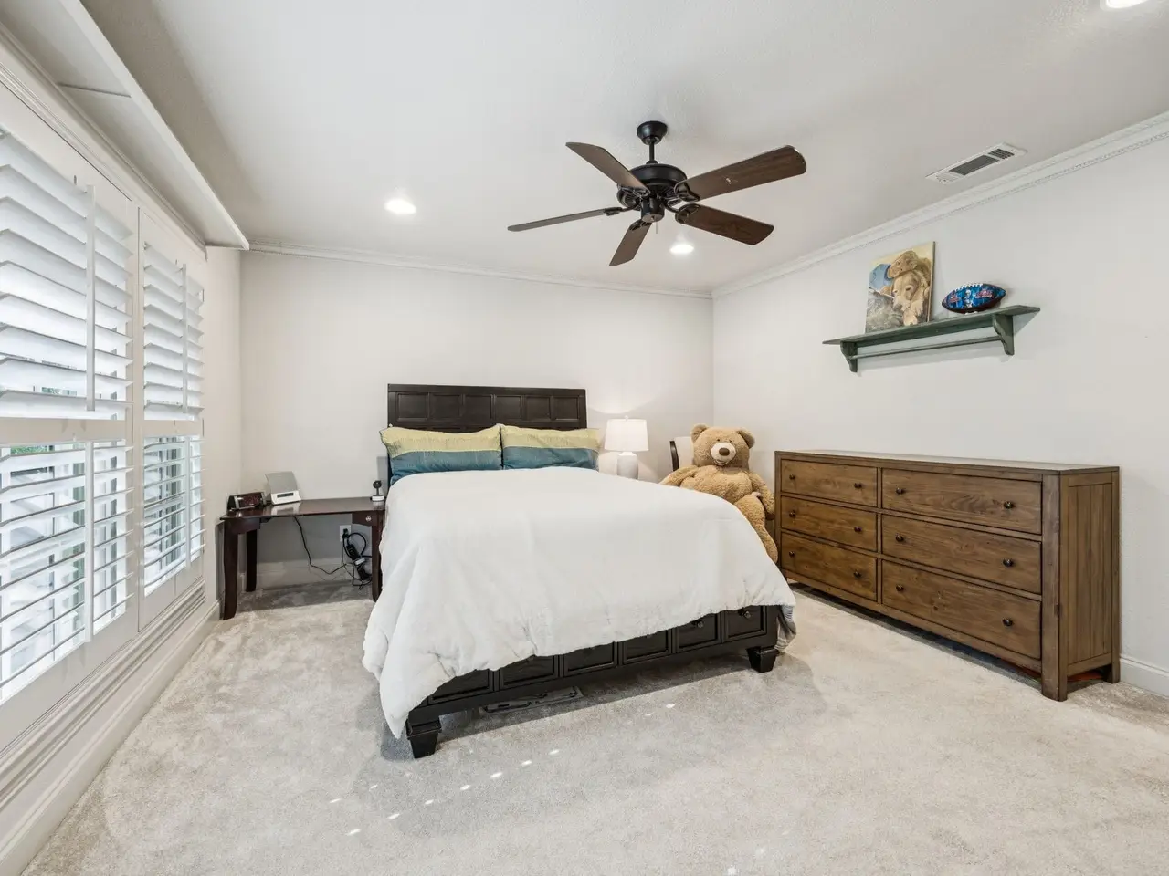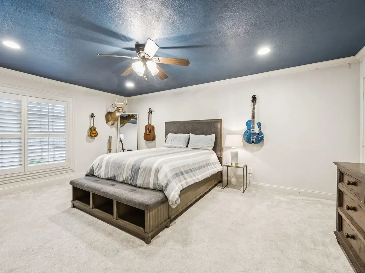 Discover timeless elegance and everyday comfort in this beautifully updated single-story ranch home, ideally situated on nearly half an acre in a quiet cul-de-sac in the heart of Preston Hollow's Windsor Park neighborhood. The open-concept layout features a spacious island kitchen and breakfast nook that flow seamlessly into a vaulted living room with wood beam accents and a gas log fireplace. A private office and formal dining room offer flexible spaces for work or entertaining, while a thoughtful split floor plan provides exceptional privacy. The expansive primary suite includes dual walk-in closets and additional wardrobe storage, with two guest bedrooms nearby. A separate guest suite and a private game room, easily used as a fifth bedroom, adds versatility. Practical highlights include an oversized mudroom, abundant storage, and a oversized two-car garage. The lush backyard retreat is perfect for relaxing or entertaining, with a sparkling pool, covered patio with fireplace, and a full guest house complete with kitchen, bathroom, and Murphy bed.