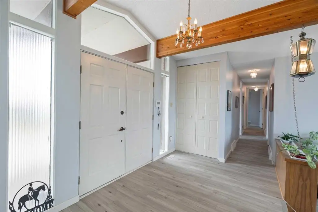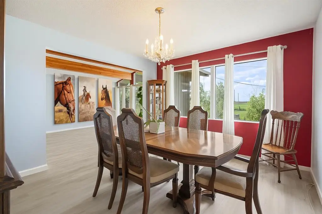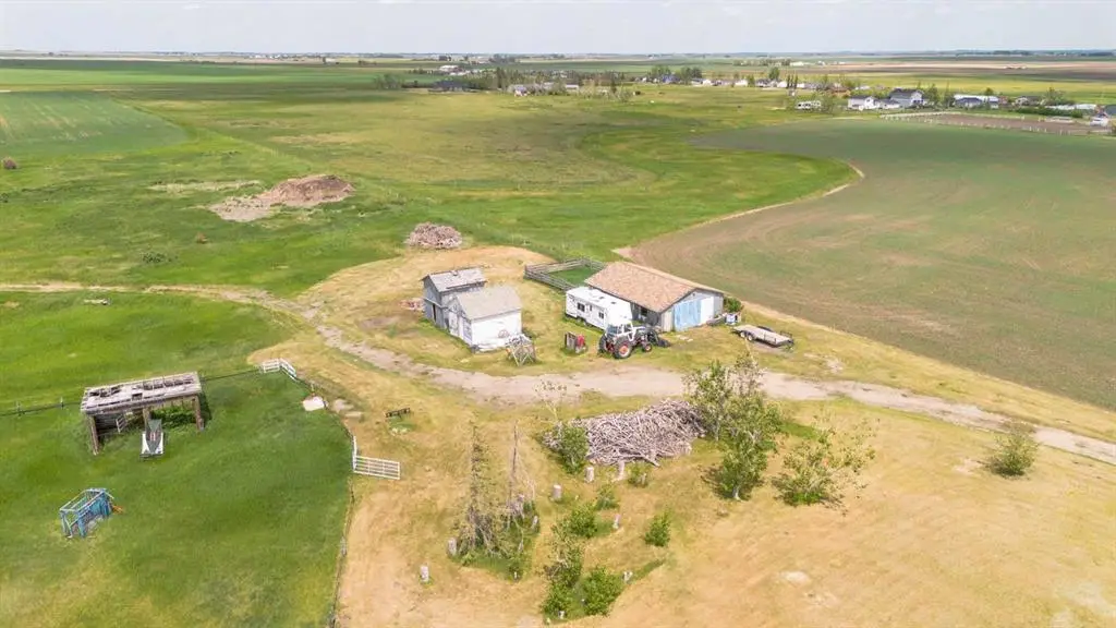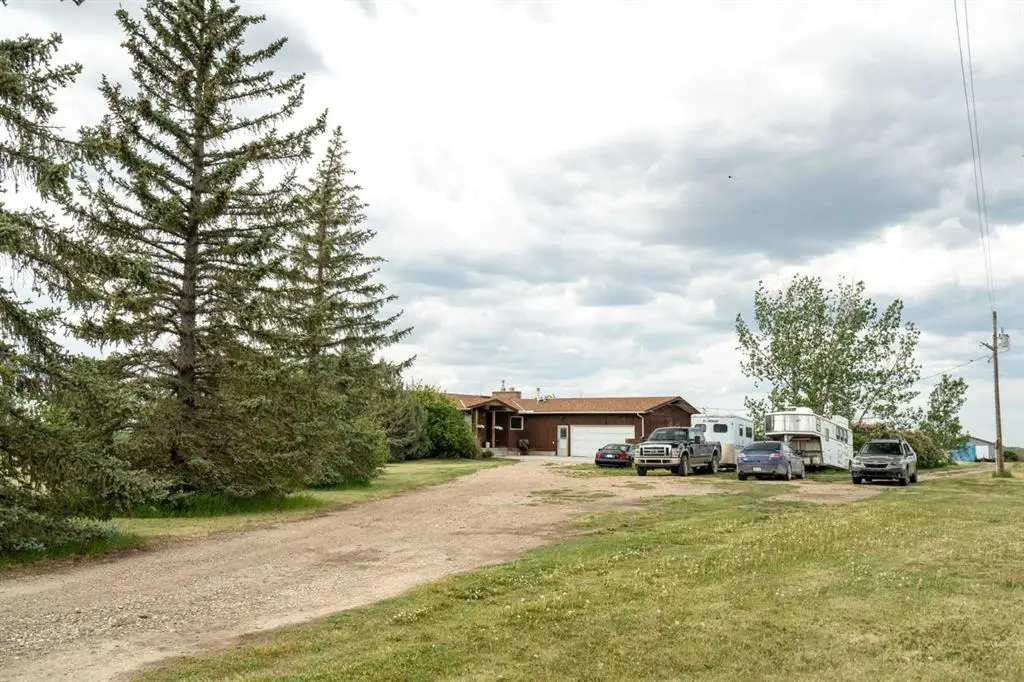 Set on over 66 acres with two convenient entrances and frontage along three roads—Highway 9, Township Road 252, and 252A—this exceptional property is just 10 minutes from Calgary city limits and 15 minutes from the future De Havilland Field. The land features a well-maintained 2,200 sq ft bungalow that has been lovingly cared for by the same family for the past 46 years. With a total of five generously sized bedrooms—four on the main floor including the primary suite with walk-in closet and private ensuite—the home offers a spacious and functional layout. The remaining main-floor bedrooms share a 4-piece bathroom, and the newer luxury vinyl plank flooring throughout the level adds a fresh, modern feel. Outdoors, the property is ideally equipped for equestrian or hobby farm use, with a 3-stall barn and run-in shelter—both with electricity and water—as well as a fenced paddock and riding area. Two additional outbuildings offer flexible use for storage or housing small livestock or poultry. The land is supported by three wells with flow rates between 2.5 and 3 GPM. Township Road 252 is on a school bus route, so snow removal to Highway 9 is prioritized—making year-round access convenient, even in winter. Currently, approximately 55 acres are leased to a local farmer, and a surface lease for a gas well provides additional, steady income. With development booming east of Calgary, the area offers incredible future potential—surrounded by multiple golf courses, future De Havilland Field, and quick routes to city amenities. Zoned A-GEN in Rocky View County, this is an ideal opportunity for those seeking rural living, investment potential, or long-term development possibilities. The insurance claim for siding and roofing has been processed, and seller has contracted someone to make the repairs in August, 2025. There is steel siding for the horse shelter that has been cut to size being stored in the barn, just needs to be installed. An insurance claim is currently in process for roof and siding repairs from hail damage, ensuring peace of mind for the next owner.