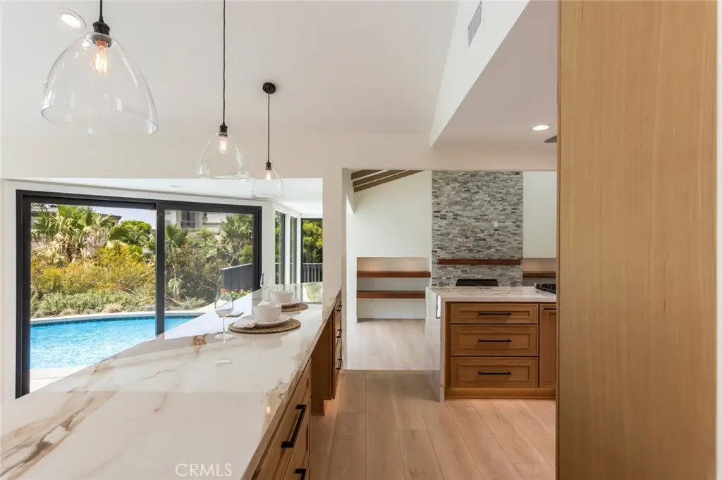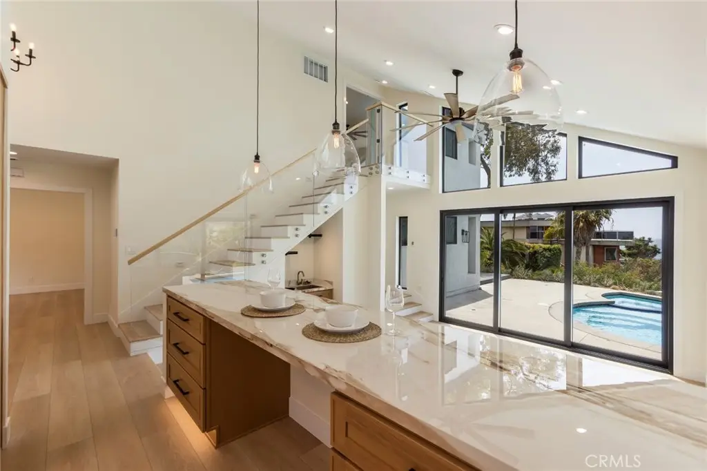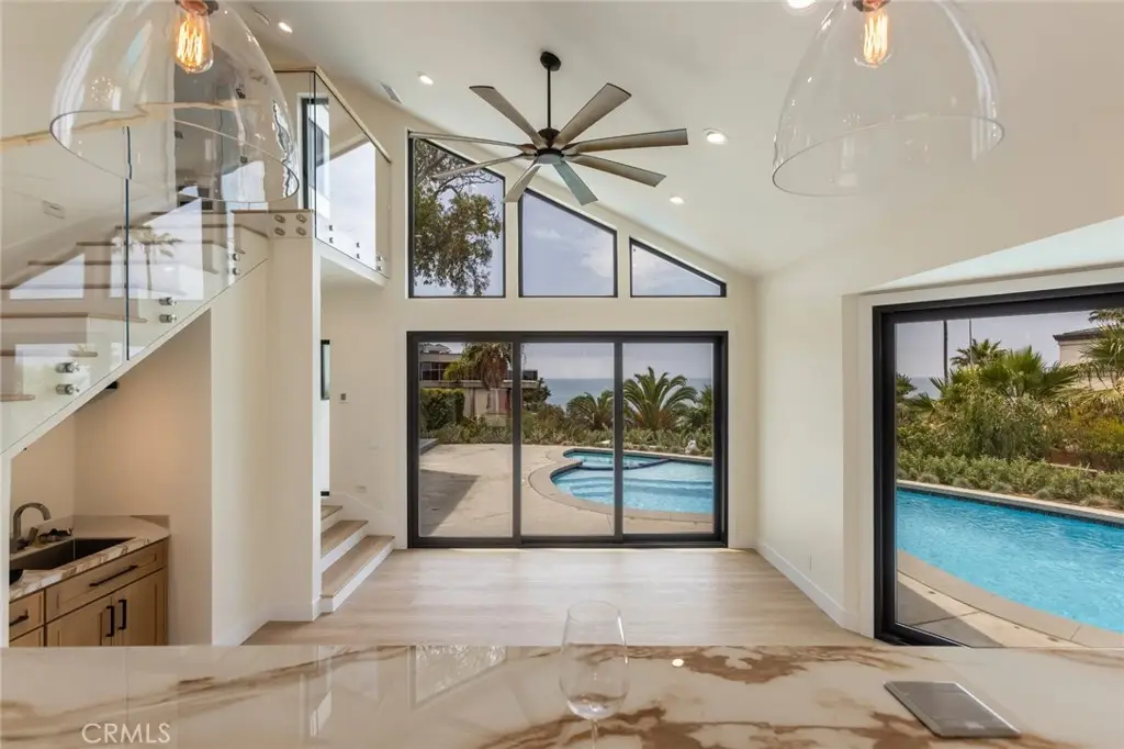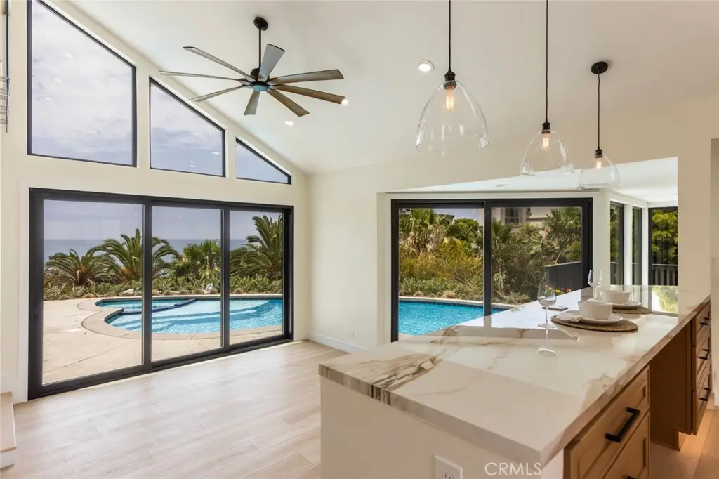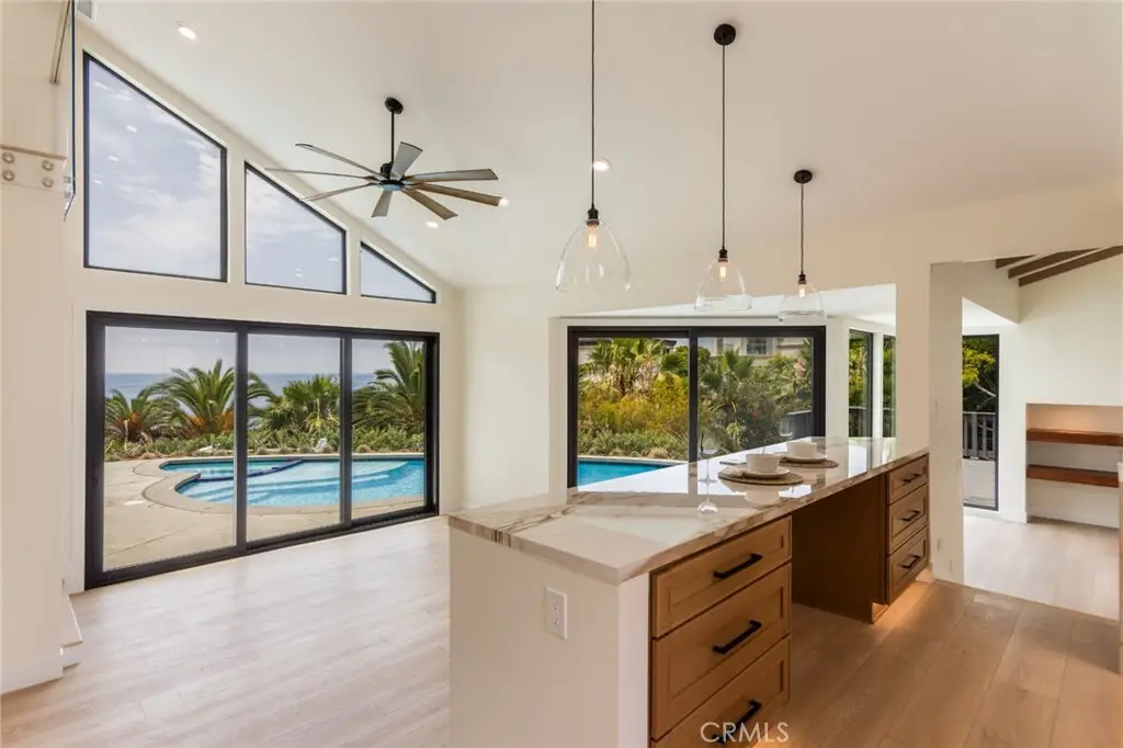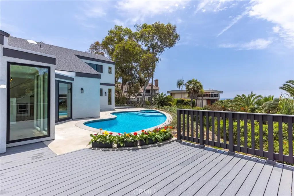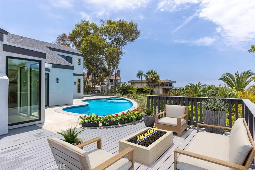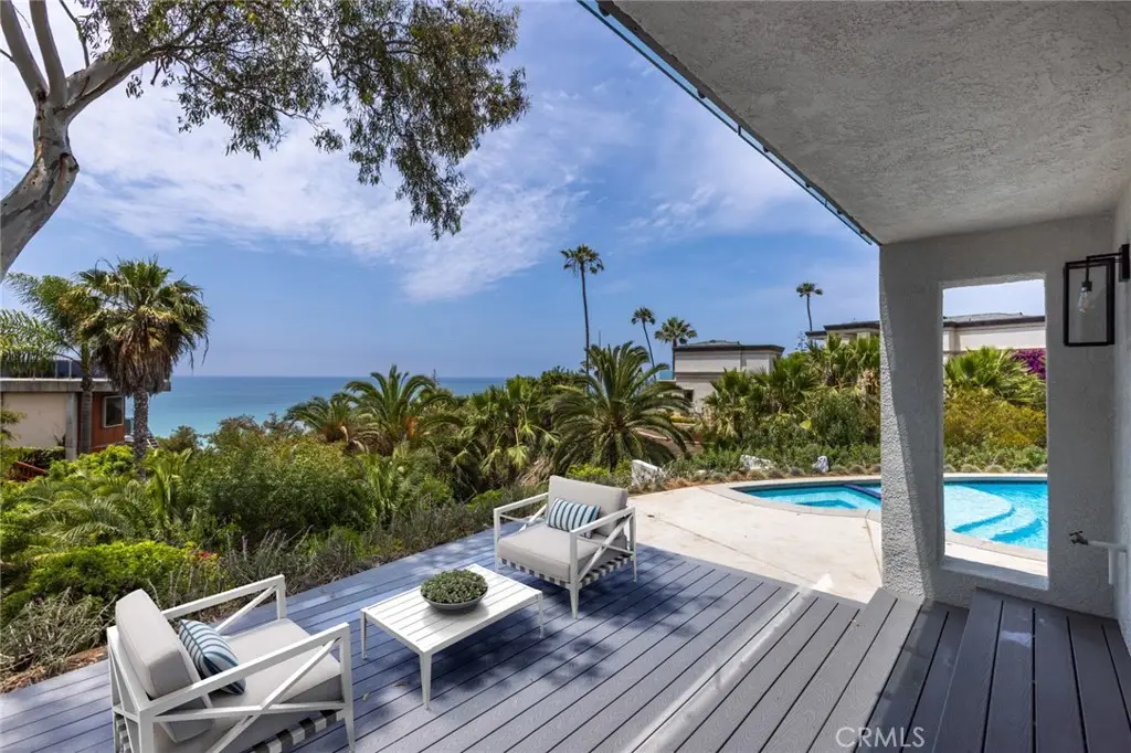 Beautifully Remodeled Capistrano Beach Home! Experience coastal living at its finest in this stylishly remodeled home located in the heart of Capistrano Beach. Enjoy breathtaking ocean views and a relaxed, beach-like ambiance throughout this stunning three-bedroom, two-and-a-half-bath sanctuary. Filled with natural light and designer touches, the open-concept floor plan features ocean views from nearly every room. The state-of-the-art kitchen boasts modern finishes with warm cabinetry, porcelain countertops, full backsplash, under counter lighting, stainless steel appliance, 6 burner gas range, breakfast bar and flows seamlessly into a spacious family room with a large stacked-stone fireplace and enormous picture windows that look out to a refreshing pool perfect for indoor-outdoor living. A charming morning room off the kitchen offers the ideal spot for coffee, reading a book or enjoy the ocean views. A separate formal dining room is perfect size for family dinners or entertaining guests. The luxurious primary suite includes a private balcony overlooking the Pacific, a spa-inspired bathroom with a freestanding soaking tub, dual shower heads including a rain shower, double vanities, a private water closet with an additional vanity, and a spacious walk-in closet. Two large guest bedrooms share a well-appointed hallway bath, good size closets, and one of the guest rooms features its own private deck with ocean views. Enjoy the private sparkling pool and spa and two wood decks with ocean views. Set back from the main road with a shared drive to the paver-lined driveway which gives this home wonderful curb appeal and can park several cars. Direct access to the two-car garage with mezzanine storage and additional RV parking. More amenities include the convenience of an indoor laundry room, tankless hot water heater, fully fenced, new electrical, new plumbing, Cat 5, new a/c with salt air protection, low maintenance landscape, storage closet, recessed lighting, under counter lighting, light oak laminate flooring throughout, picture windows, 6 inch baseboards, linen cabinets, ceiling fans, and three panel sliding door. Completely remodeled from top to bottom and is move in ready. This is true Southern California living relaxed, refined, and just moments from the beach.