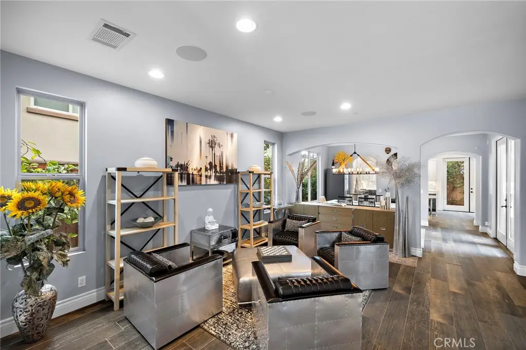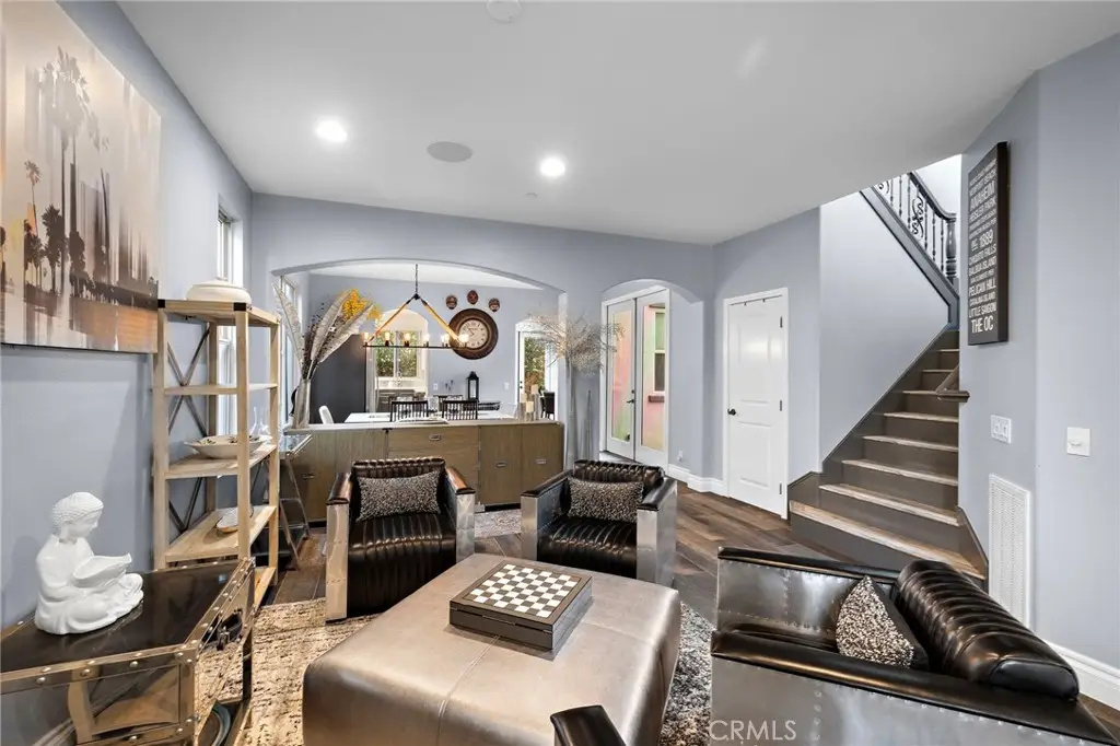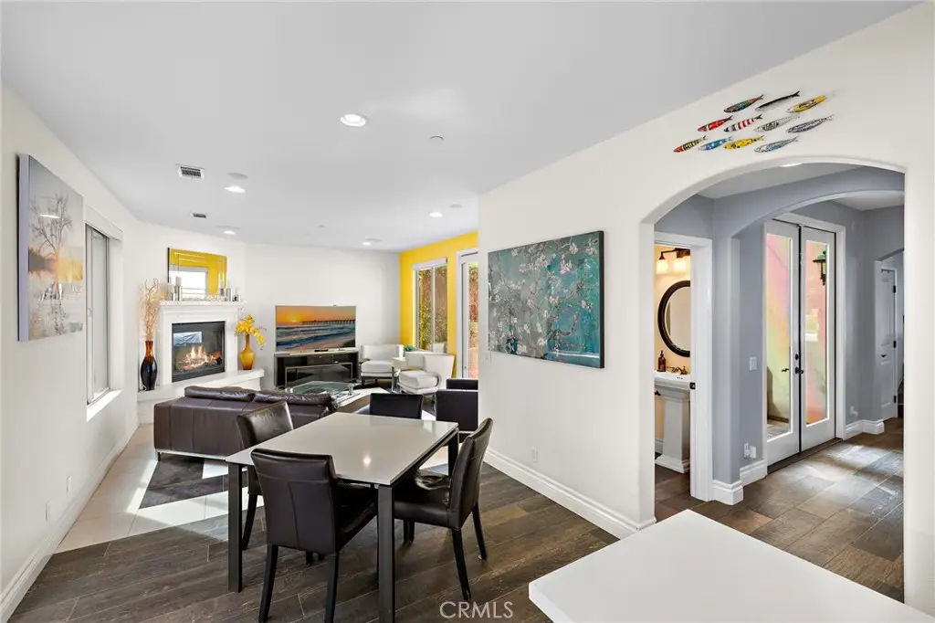Stunning California-Mediterranean semi-custom home nestled in an exclusive enclave of just seven homes in Seabright Cove and completed in 2011 with mountain & park views. Thoughtfully designed with both elegance and comfort in mind, this spacious residence offers 4 bedrooms, 3.5 baths, and a versatile bonus room upstairs that is currently used as a gym and has doors out to the front balcony with city lights, mountain & park views. Soaring ceilings and abundant natural light enhance the open layout, which includes formal living and dining rooms, and a beautifully appointed eat-in kitchen featuring rich wood cabinetry, with a pantry, quartz countertops, custom stainless steel backsplash, and a seamless flow into the inviting family room with custom fireplace. Large pantry under the stairs for added storage capabilities. The heart of the home is a large central courtyard--perfect for indoor-outdoor entertaining and relaxed California living with beautiful fire feature and bistro lighting for added ambiance. Side yard has four mature fruit trees- Meyer lemon, guava, tangerine, & loquat. Additionally, the home has AC, is wired with CAT 6, has surround sound speakers, and comes prepped for cameras and a whole home security system. Upstairs, the luxurious primary suite boasts a spa-inspired bath & is a serene retreat also with fireplace, walk in closet and dual sinks with new faucets and separate shower and tub. Ideally located just minutes from the Dana Point Harbor currently undergoing a major renovation, the Lantern District, and some of California's most iconic beaches & 5 star resorts, this home offers coastal charm, modern comfort, and timeless style.