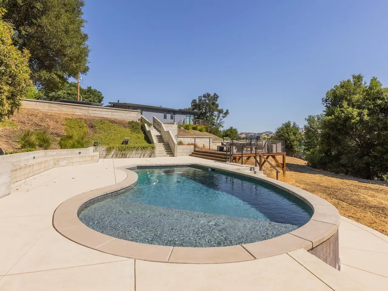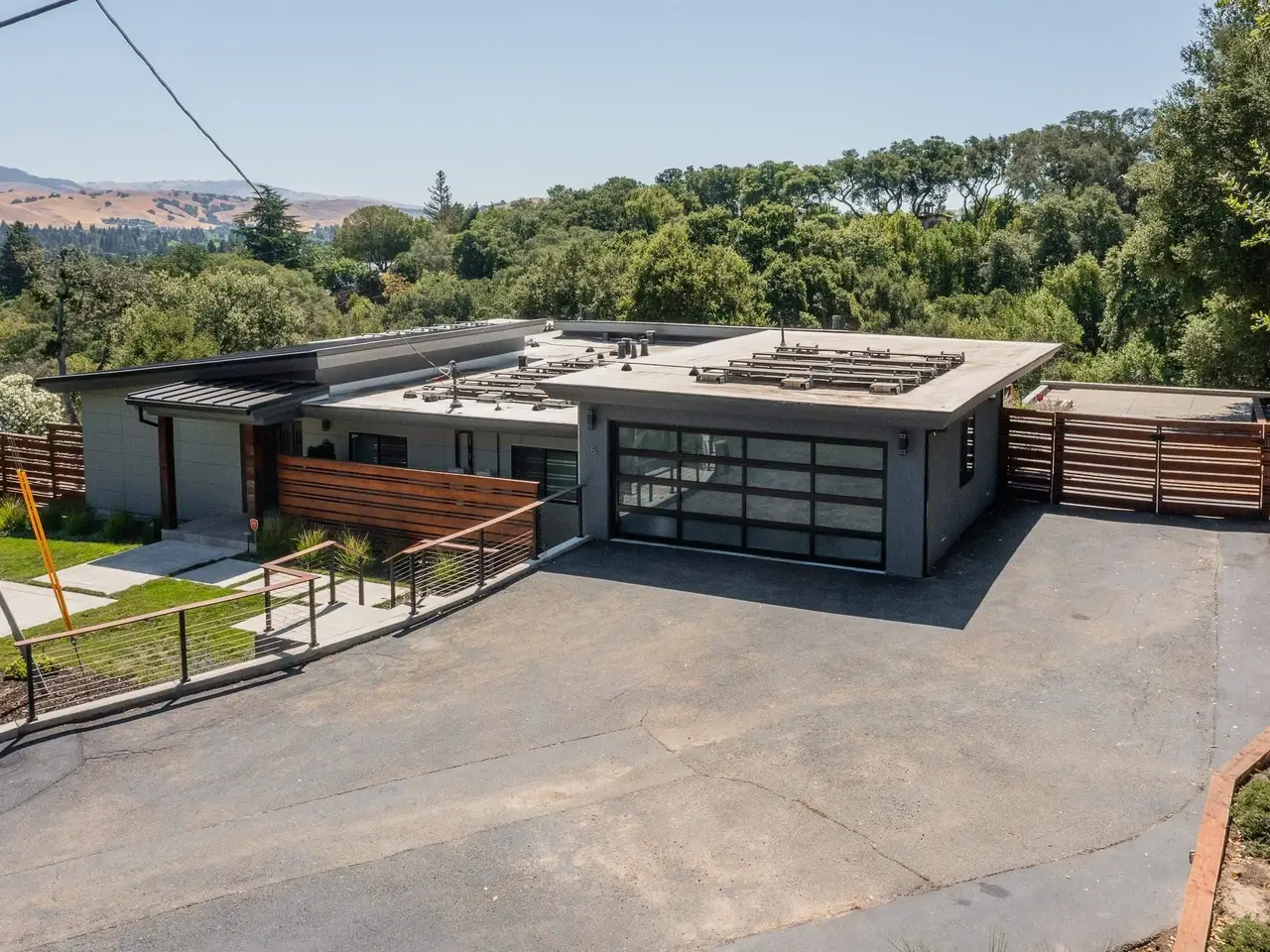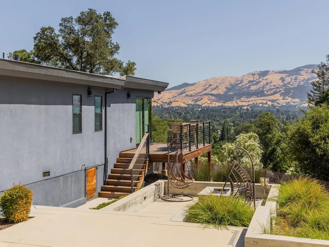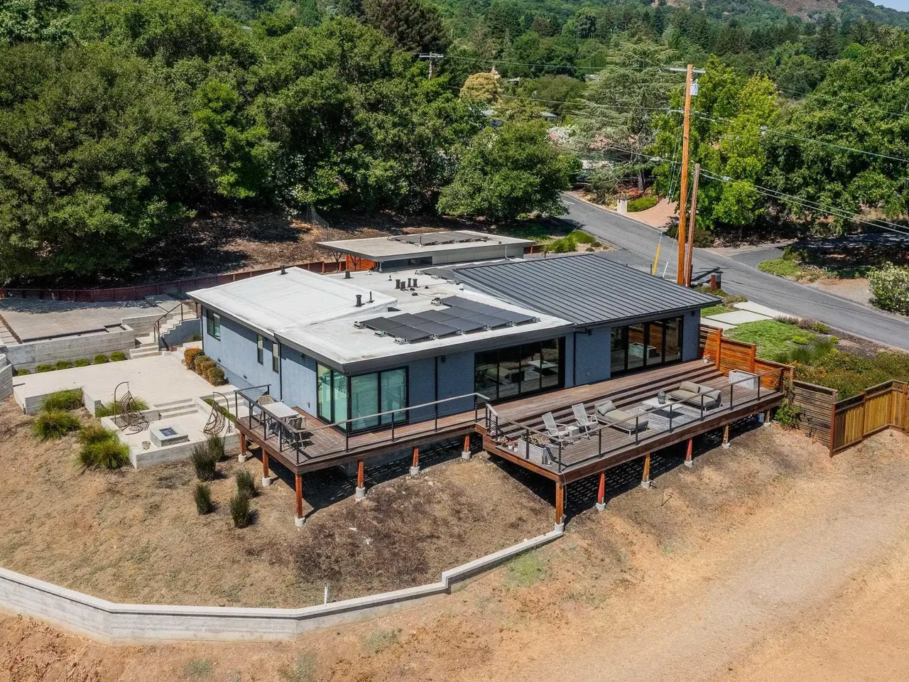 Experience elevated living in this stunning, fully rebuilt modern home on Danville’s coveted Westside. Located in the exclusive Sky Terrace community, this rare 1.4+ acre property offers panoramic views of Mount Diablo and seamless indoor-outdoor living through La Cantina doors that open to a spacious deck. The open-concept floor plan features high-end modern finishes throughout, including wide-plank hardwood flooring, marble tile bathrooms, sleek Euro-style cabinetry, and natural Quartzite countertops with a waterfall island and glass-beveled backsplash. A chef’s kitchen showcases top-tier appliances, including a premium Sub-Zero refrigerator, 48" professional cooktop with griddle, smart double ovens, and a built-in drawer microwave. The primary suite offers breathtaking views and direct access to the deck. One of the four bedrooms has been transformed into a custom walk-in closet by Valet Cabinets, perfect for a fashion-forward lifestyle. All bedrooms, including the luxurious primary suite, are conveniently located off a single hallway for ideal flow and functionality. Step outside to a fully hardscaped backyard oasis complete with an infinity-edge pool, custom outdoor furnishings from Terra (most included in sale), and multiple gathering spaces designed for both !