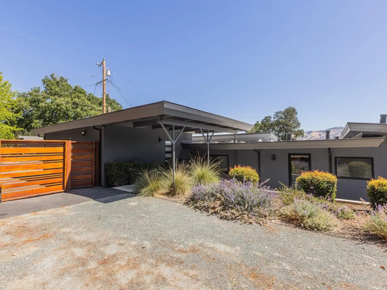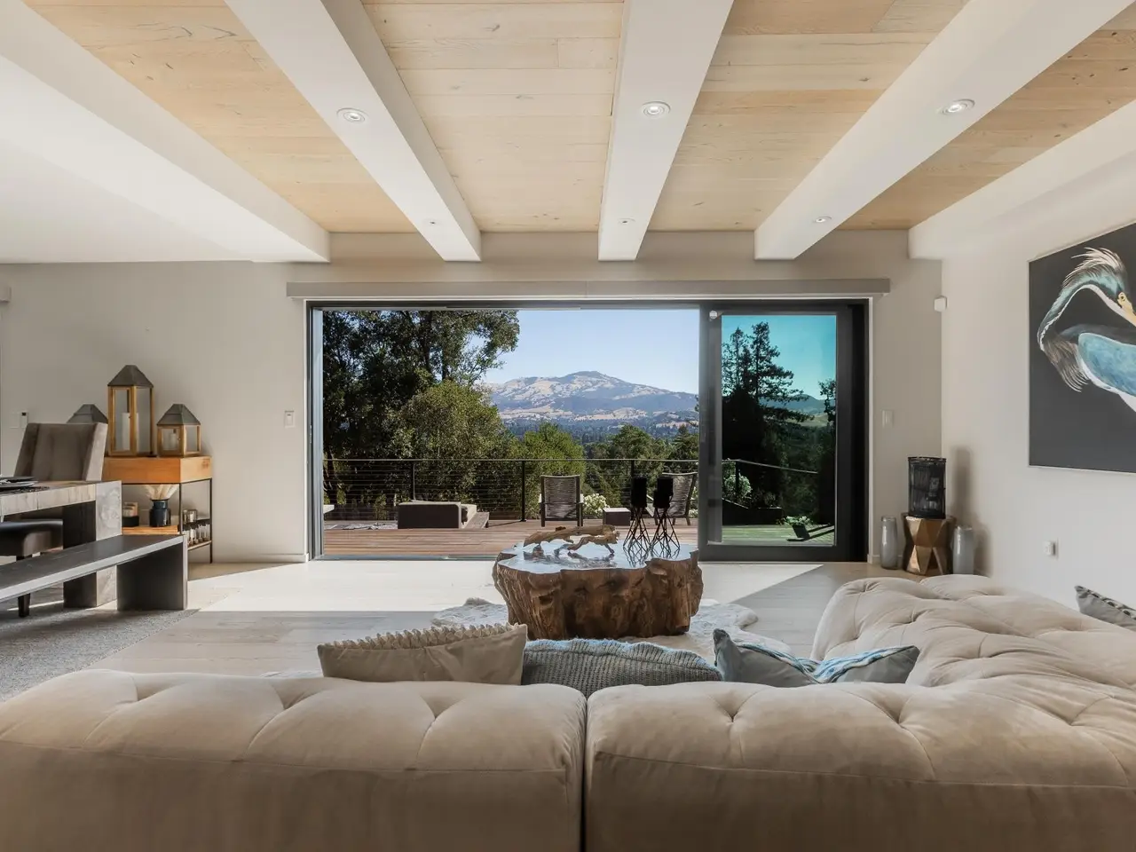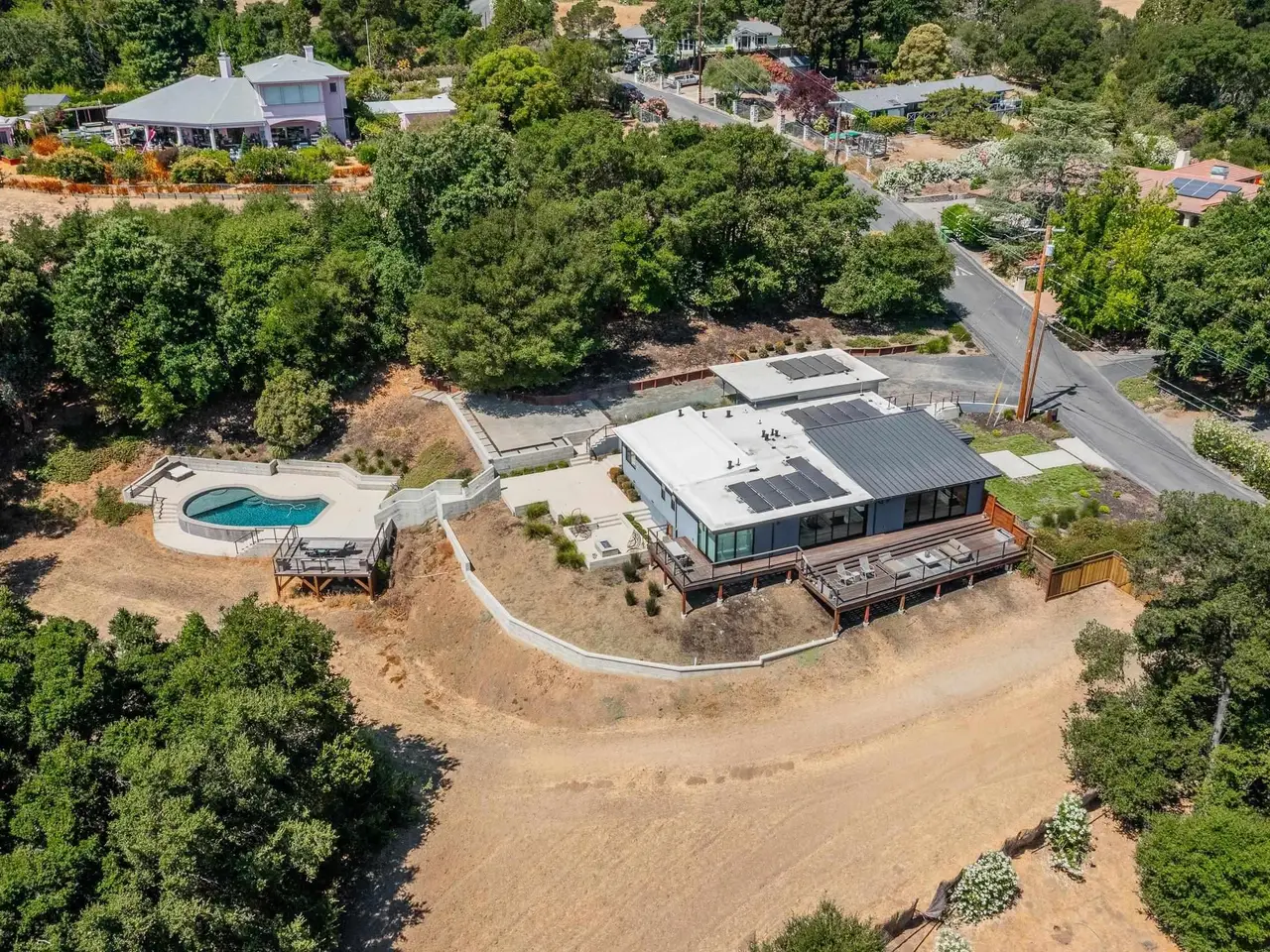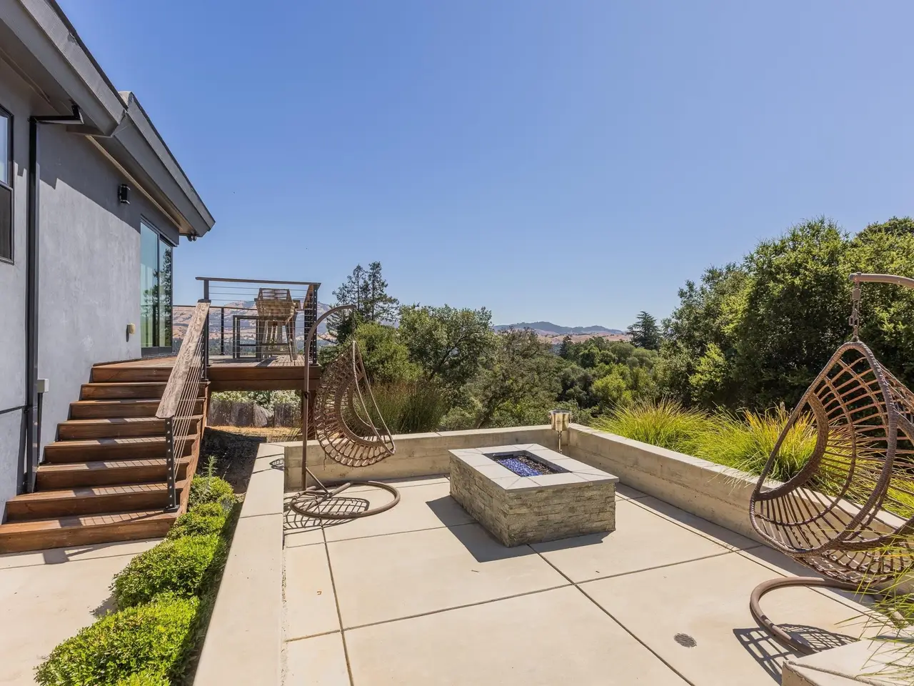 Experience elevated living in this stunning, fully rebuilt modern home on Danville’s coveted Westside. Located in the exclusive Sky Terrace community, this rare 1.4+ acre property offers panoramic views of Mount Diablo and seamless indoor-outdoor living through La Cantina doors that open to a spacious deck. The open-concept floor plan features high-end modern finishes throughout, including wide-plank hardwood flooring, marble tile bathrooms, sleek Euro-style cabinetry, and natural Quartzite countertops with a waterfall island and glass-beveled backsplash. A chef’s kitchen showcases top-tier appliances, including a premium Sub-Zero refrigerator, 48" professional cooktop with griddle, smart double ovens, and a built-in drawer microwave. The primary suite offers breathtaking views and direct access to the deck. One of the four bedrooms has been transformed into a custom walk-in closet by Valet Cabinets, perfect for a fashion-forward lifestyle. All bedrooms, including the luxurious primary suite, are conveniently located off a single hallway for ideal flow and functionality. Step outside to a fully hardscaped backyard oasis complete with an infinity-edge pool, custom outdoor furnishings from Terra (most included in sale), and multiple gathering spaces designed for both !