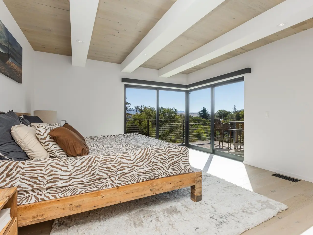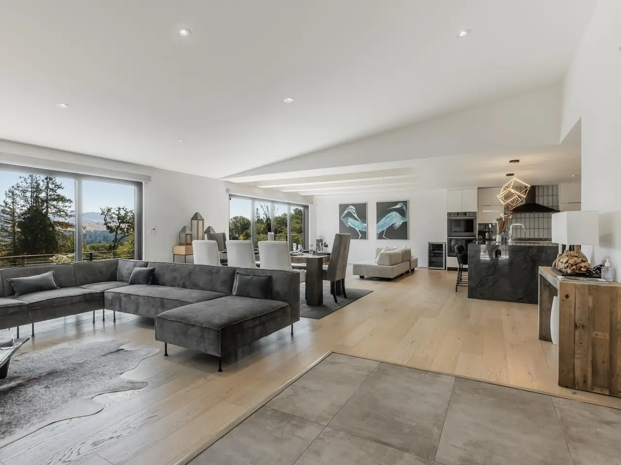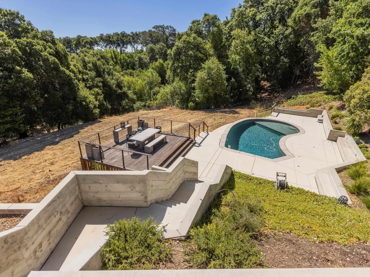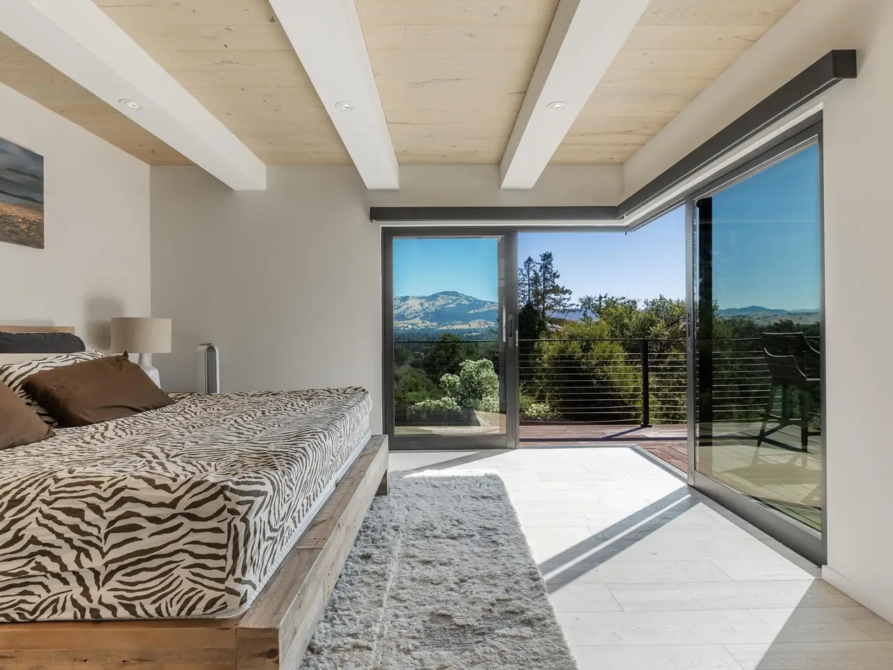 Experience elevated living in this stunning, fully rebuilt modern home on Danville’s coveted Westside. Located in the exclusive Sky Terrace community, this rare 1.4+ acre property offers panoramic views of Mount Diablo and seamless indoor-outdoor living through La Cantina doors that open to a spacious deck. The open-concept floor plan features high-end modern finishes throughout, including wide-plank hardwood flooring, marble tile bathrooms, sleek Euro-style cabinetry, and natural Quartzite countertops with a waterfall island and glass-beveled backsplash. A chef’s kitchen showcases top-tier appliances, including a premium Sub-Zero refrigerator, 48" professional cooktop with griddle, smart double ovens, and a built-in drawer microwave. The primary suite offers breathtaking views and direct access to the deck. One of the four bedrooms has been transformed into a custom walk-in closet by Valet Cabinets, perfect for a fashion-forward lifestyle. All bedrooms, including the luxurious primary suite, are conveniently located off a single hallway for ideal flow and functionality. Step outside to a fully hardscaped backyard oasis complete with an infinity-edge pool, custom outdoor furnishings from Terra (most included in sale), and multiple gathering spaces designed for both !