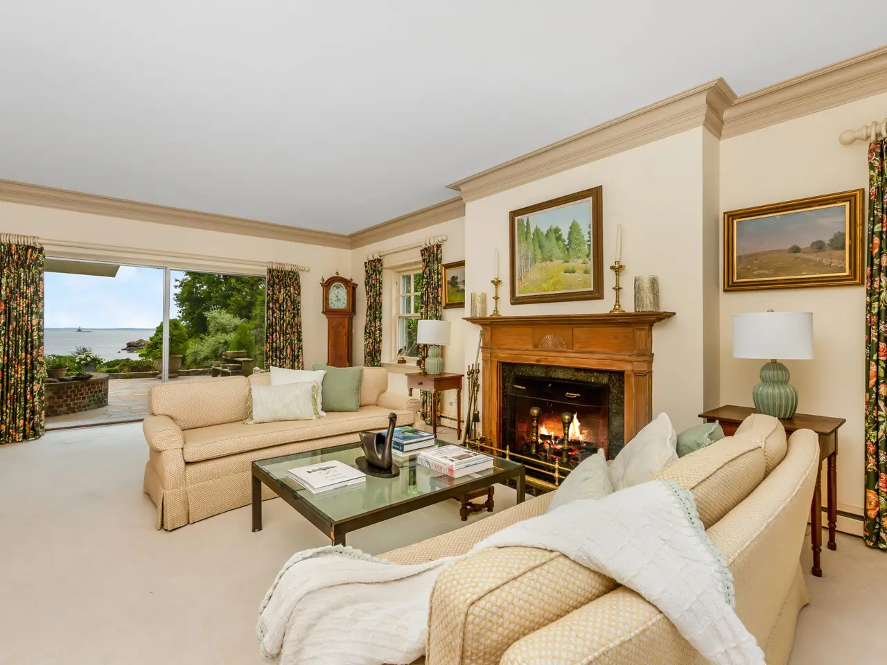 Introducing one of Tokeneke's most iconic waterfront estates-available for the first time in 50 years. This rare and storied compound is set on 2.4 acres of exquisitely landscaped grounds with 180 feet of private shoreline along Long Island Sound. It offers an unrivaled blend of historic charm, timeless elegance, and breathtaking coastal beauty. A sweeping two-story paneled foyer leads to a gracious formal living and dining rooms with soaring ceilings, fireplaces, and uninterrupted views of the water. Sunlight pours into the sophisticated sunroom-an ideal setting for quiet mornings or refined entertaining. The expansive kitchen and breakfast area open seamlessly to a family room with a granite fireplace, while a discreet back stairway leads to a stunning double-height billiards room with vaulted, beamed ceilings. The second floor is anchored by a grand primary suite with an oversized waterfront balcony, offering a private vantage point for sunsets over the Sound. Two additional bedrooms complete this level, with three more on the top floor to accommodate family or guests in style. A separate three-car garage includes a fully finished upper level with a full bath - ideal for a guest suite, gym, or private office. This exceptional estate embodies the quiet prestige of a bygone era, offering privacy, beauty, and unparalleled access to the water-all in the heart of Darien's most coveted private enclave. A once-in-a-generation opportunity to own a true coastal masterpiece.