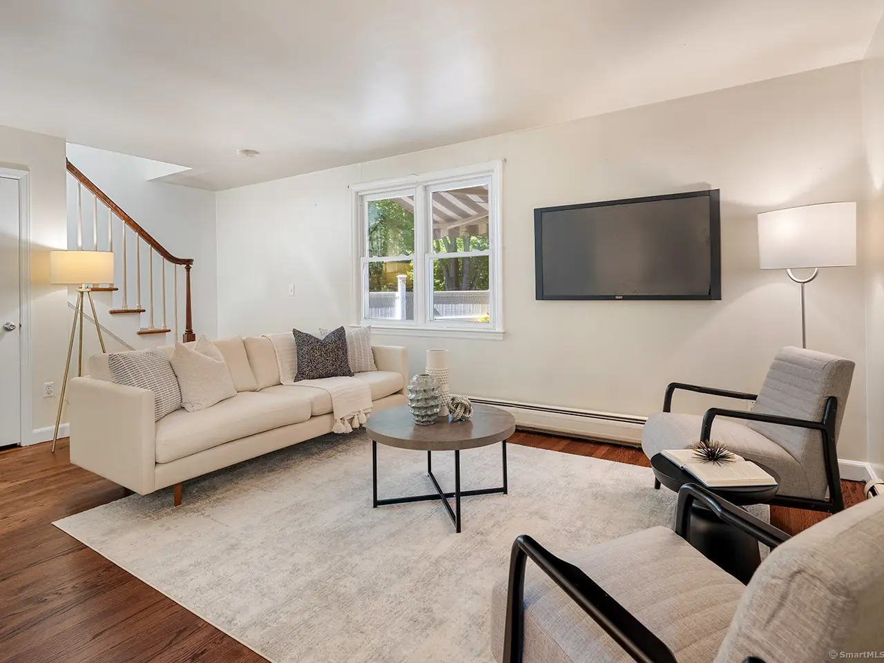 In one of Darien's most convenient locations, this move-in-ready home is just a short distance to Noroton Train Station, Corbin District, Darien Commons, and nationally recognized Darien Library. The renovated kitchen features new cabinetry, quartz countertops and high-end vinyl floors. A new full bath with step-in shower, quartz counters, and a new washer/dryer sits off the hallway. The first floor formal dining room and living room has a wood burning fireplace, an office/flex room, and a spacious family room with newly refinished hardwood floors. Upstairs offers four bedrooms-two with hardwood floors and two with new carpeting-all with skylights for natural light. The renovated bath includes a Jacuzzi tub, skylight, walk-in shower, and dual quartz vanities. Beautifully maintained and thoughtfully updated with $100K+ in updates-including central air, lifetime roof shingles, generator-ready wiring. This home will not last!
