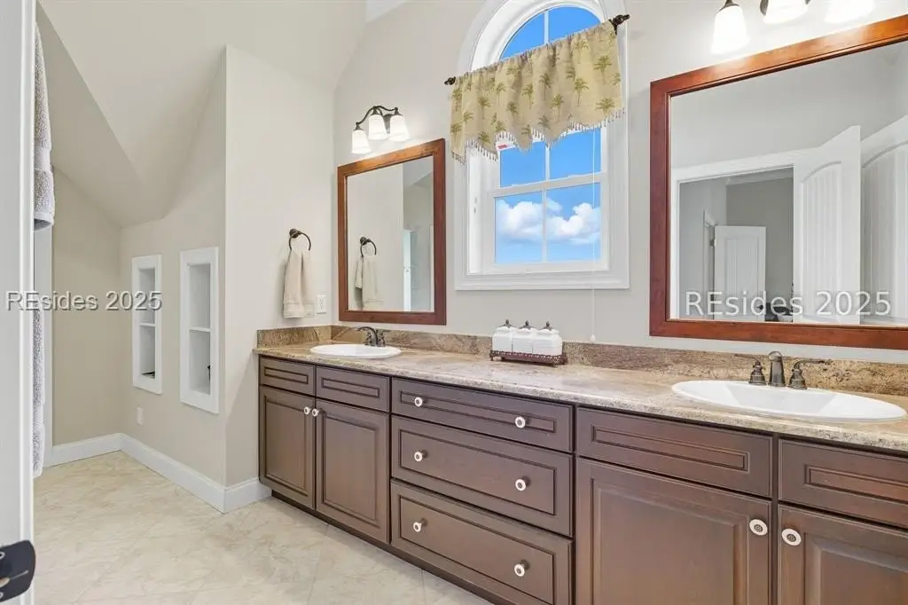 Spa-like primary suite with uniquely tiled shower and private balcony