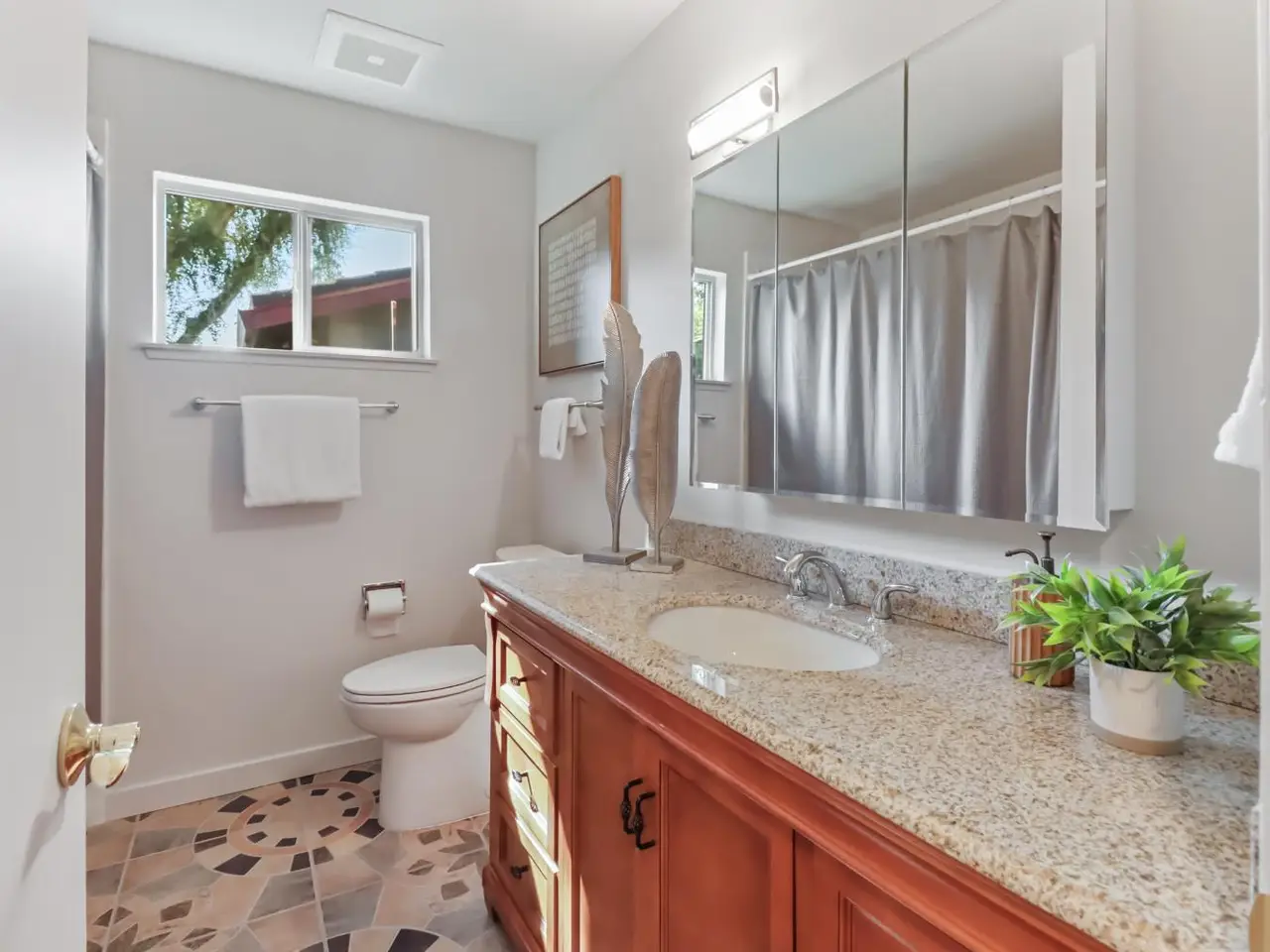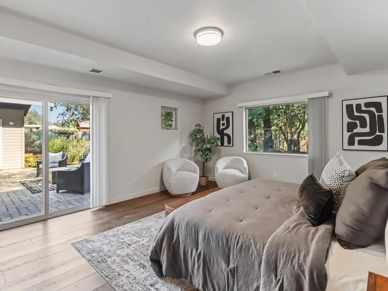 Experience refined living in this updated South Davis estate, with 5 bedrooms, 3.5 baths, and nearly 3,300 sq ft of living space split between the main and guest quarters. A 2019 renovation reimagined the home, adding a guest residence above the garage, complete with a full kitchen, living spaces, private entry, elevator access, and Juliet balcony. In the main house, vaulted ceilings and updated flooring pair with Solatubes and oversized picture windows to frame the backyard and fill the interiors with natural light. Thoughtful upgrades, including three HVAC systems, whole-house fans, owned solar, and tankless water heaters, ensure comfort and sustainability at the highest level. Outdoors, refreshed landscaping and paver courtyards set the stage for gatherings, while nearby greenbelt trails invite you for daily walks and rides. Located near Putah Creek, top-rated schools, parks, shopping, and UC Davis, this property harmonizes elegance, functionality, and a coveted lifestyle.