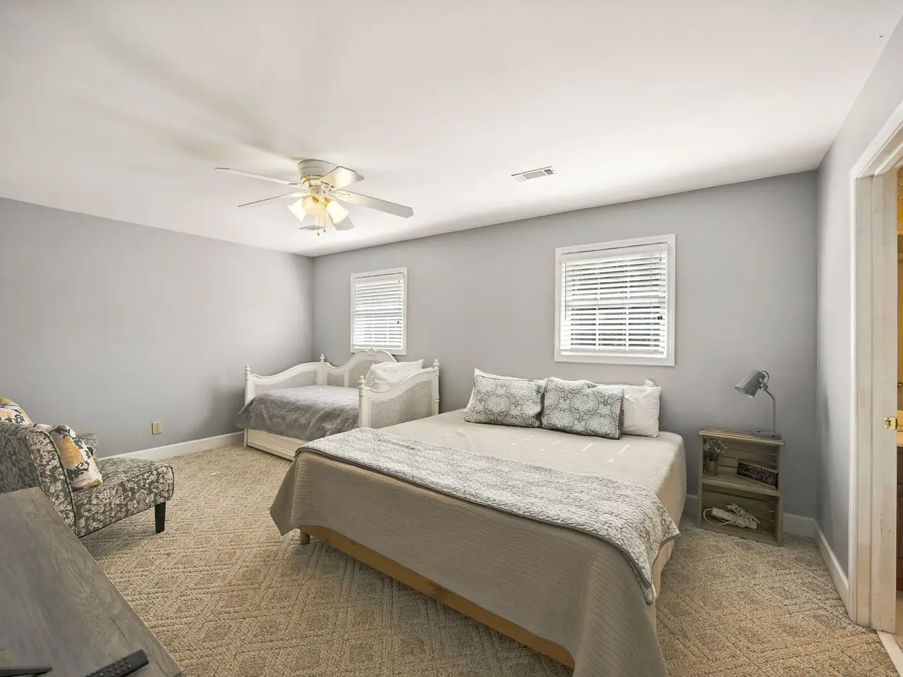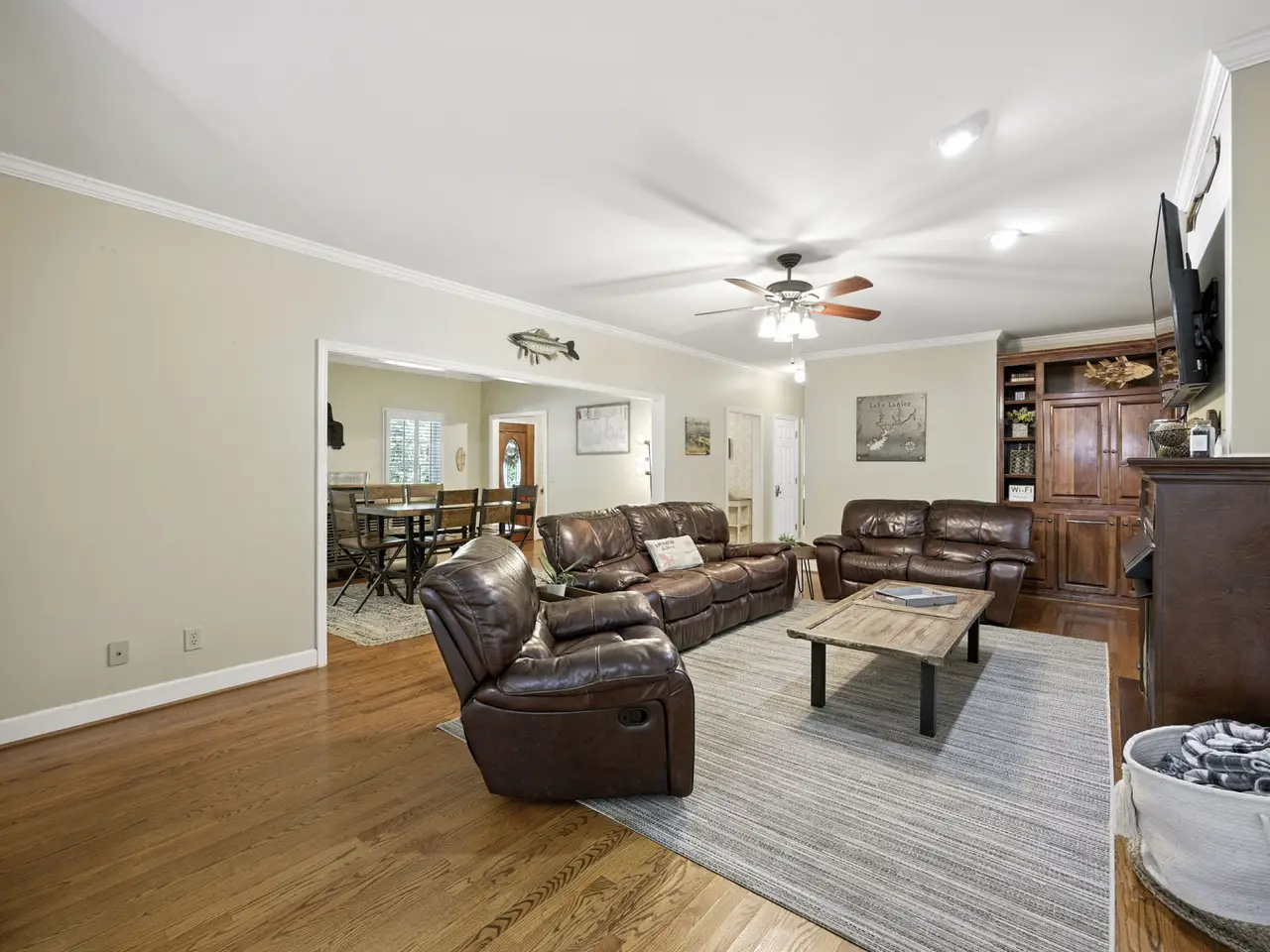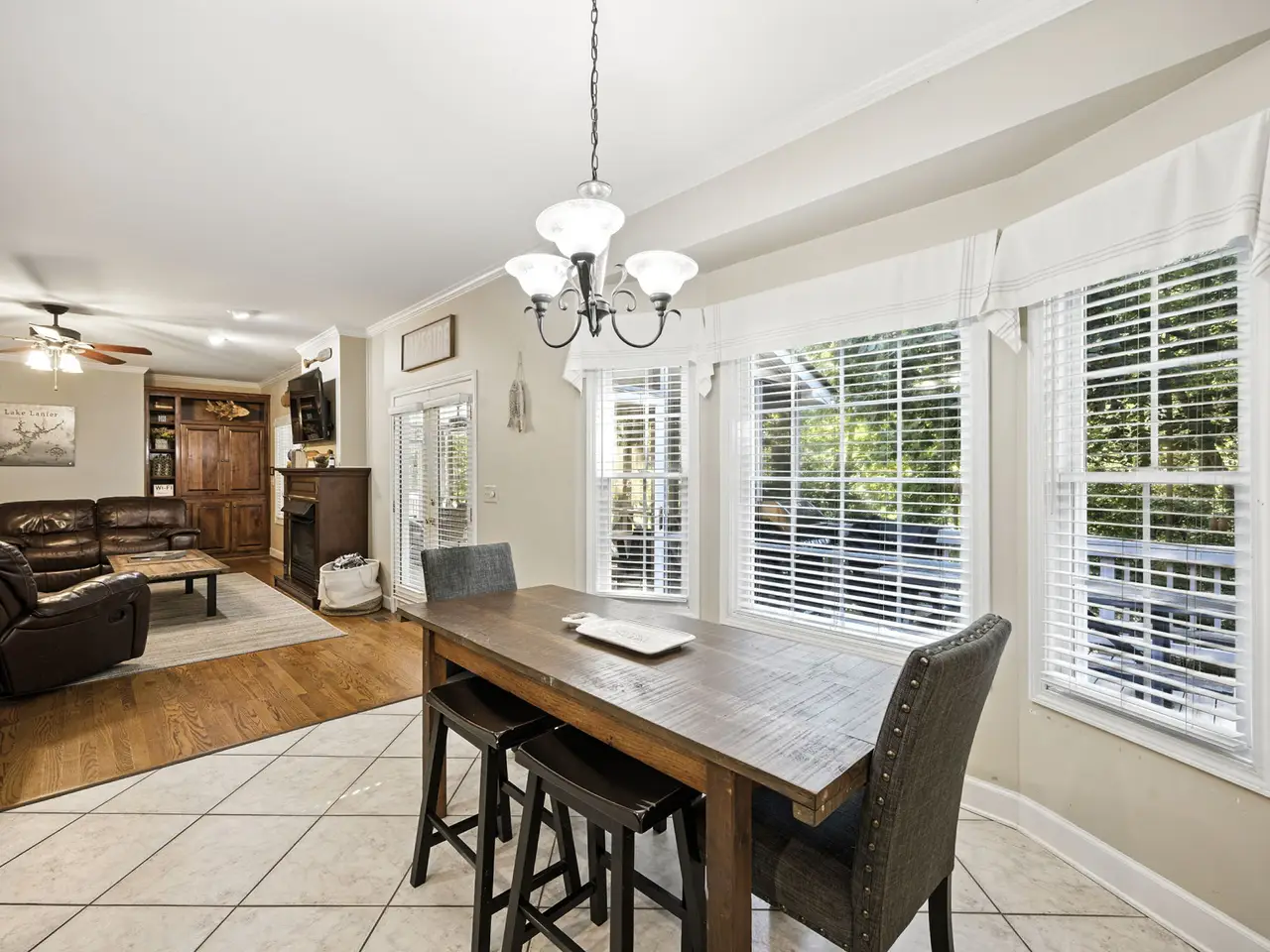 This rare Lake Lanier find offers 4 bedrooms, 4 full baths and 2 oversized bonus rooms making it the perfect retreat for entertaining, relaxing, and enjoying the lake lifestyle. To top it off, the owners are happy to include all the furnishings in the sale price! From the level driveway and inviting front porch, you'll step into a thoughtfully designed home with a graceful flow from the foyer and staircase into the family room, currently enjoyed as a recreation space, and then on to the great room with a cozy fireplace. A wall of windows frames sparkling lake views and draws you into the large, open kitchen with stainless steel appliances, granite countertops, and a bright breakfast area, while the separate dining room provides plenty of space for gathering with family and friends. The main level also includes a spacious suite with an oversized full, along with a convenient half bath and another full bath just off the kitchen for easy access after a day on the water. A large laundry room with sinks makes it simple to handle wet towels and lake gear. Upstairs, five generously sized bedrooms and a full bath provide comfortable accommodations for all your guests. The outdoor living is just as inviting, with an expansive screened-in porch overlooking the water, a side deck with connections for a hot tub in place and a separate grilling deck with ample space for outdoor seating. From there, it's just an easy walk to your private single slip dock with party deck and electricity, where you'll enjoy year-round deep water and wide, open views of the lake. Practical touches add even more appeal, including plenty parking space, two fenced-in yard areas, and a storage shed for all of your lake toys. Nestled on a quiet street, the property is just minutes from War Hill Park boat ramp, Athens Boat Club for gas and fireworks, quick access to Ga 400, Dawsonville shopping, restaurants, hiking, Dahlonega, and North Georgia's favorite wineries. With its blend of comfort, convenience, and its proven success as a short-term rental, this is a rare opportunity on Lake Lanier that you won't want to miss!