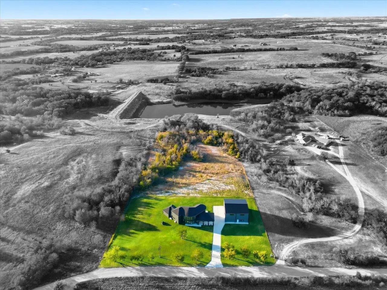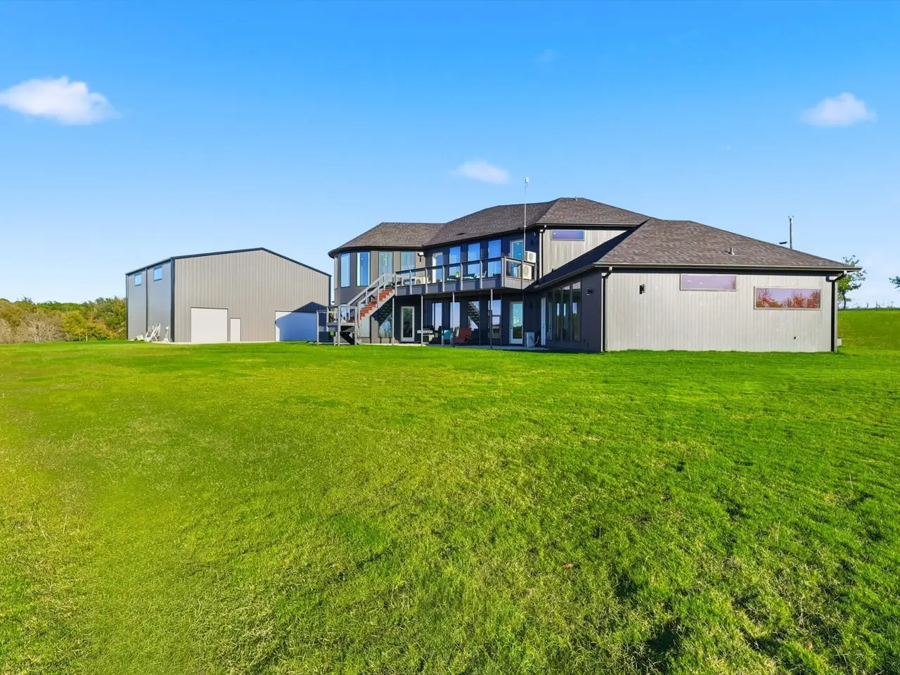 Experience the ultimate in country living in this stunning home completed in August 2024, situated on 5 sprawling acres with breathtaking views of the surrounding countryside. 2 fully fenced and gated acres of lush lawn offer the ideal setting for pets, family, and outdoor entertaining, fully irrigated with high-efficiency Hunter rotors and illuminated with LED landscape lighting for magical evenings under the stars. Step inside to a bright, open floor plan capturing natural light through full-height picture windows, highlighting a seamless blend of modern style and thoughtful craftsmanship. Every detail has been considered, from premium appliances, to dimmable LED lighting and whisper-quiet 22 SEER mini-split heat pumps in every room. The home includes a full mother-in-law suite with its own kitchen, living room, workspace, and separate bedroom, providing private accommodations for guests or extended family. Two tankless water heaters provide unlimited hot water and strong pressure throughout. The open interior flows effortlessly, with neutral tones creating a serene atmosphere, while the covered patio and expansive upper deck allow you to enjoy stunning sunsets and peaceful surroundings. The 5,000 sq. ft., two-story insulated shop offers endless possibilities, including a 30x30 garage, hobby room, mechanical shop, full bath, freight elevator, RV hookups, and a completely open second floor ideal for hobbies, entertainment, or workspace. Remote-controlled solar-powered entry gates, chain-link and wire fencing, flood lighting, and thoughtfully designed outdoor spaces enhance the property. Every elementfrom ZIP-sealed exterior sheathing, R24 foam insulation, and 2x6 construction to high-efficiency windows and energy-saving systemsensures comfort, durability, and low utility costs. This home blends modern luxury and peaceful country charm, where every day feels like a retreat surrounded by nature, wildlife, and endless opportunities for work, play, and relaxation.
