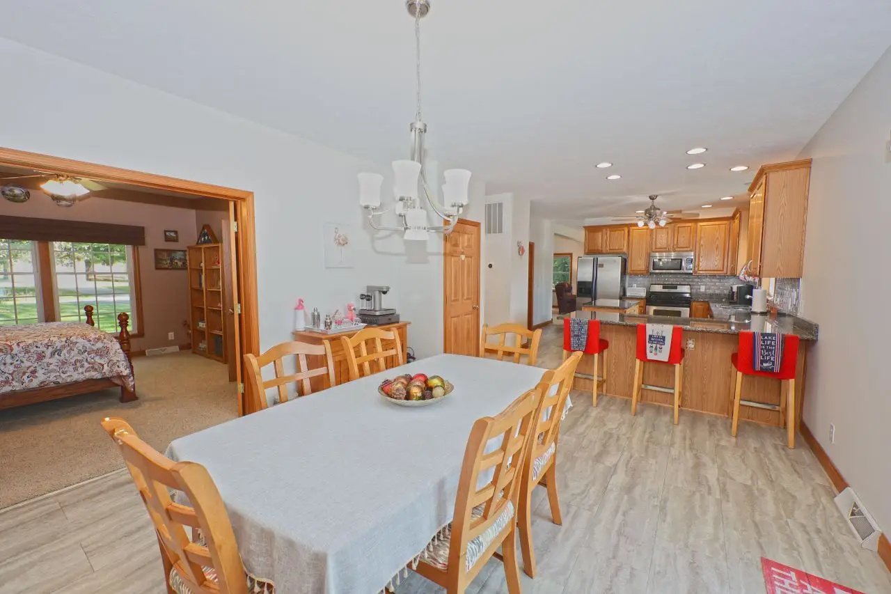 Enjoy breathtaking views of Keeler Lake from this spacious two-story home, which boasts 100 feet of pristine lake frontage. Three levels of fabulous living space. Five bedrooms, two primary suites, and four baths. The kitchen features a functional island and a breakfast bar, complemented by two pantries for ample storage. Throughout this home, youll find terrific storage solutions. Wonderful walkout access for seamless indoor-outdoor living. Entertain guests in the screened-in porch complete with a hot tub. Relax or host cookouts on the upper deck, perfect for gatherings with friends and family. The lower level is finished and includes a bar and pool table for recreation. Enjoy the beautiful lawn, sandy swimming area, and abundant space for all your water toys. The property also includes a two-car-attached garage and a lakeside toy shed. This home truly represents the very best of the lake living lifestyle. Minutes from the Sister Lakes area with restaurants, breweries, summer shop.
