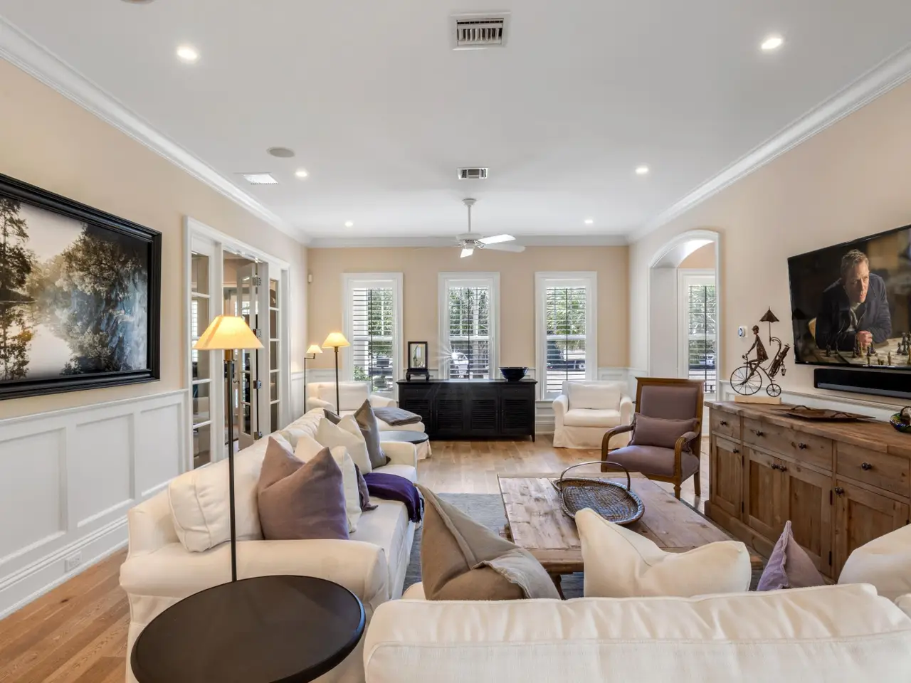 Brand-New island-inspired gem in an exclusive 4-estate enclave offering a wonderful lifestyle, only a block from both the ocean and Atlantic Avenue. Casual elegance pairs with master craftsmanship in the collaboration of GE Architecture and Seaside Builders. The atmosphere is fresh, light and inviting with crisp white millwork set off by the natural beauty of American oak floors. Spacious open great room. Romantic peaked-ceiling master suite. Separate guest apartment. Lushly landscaped pool patio